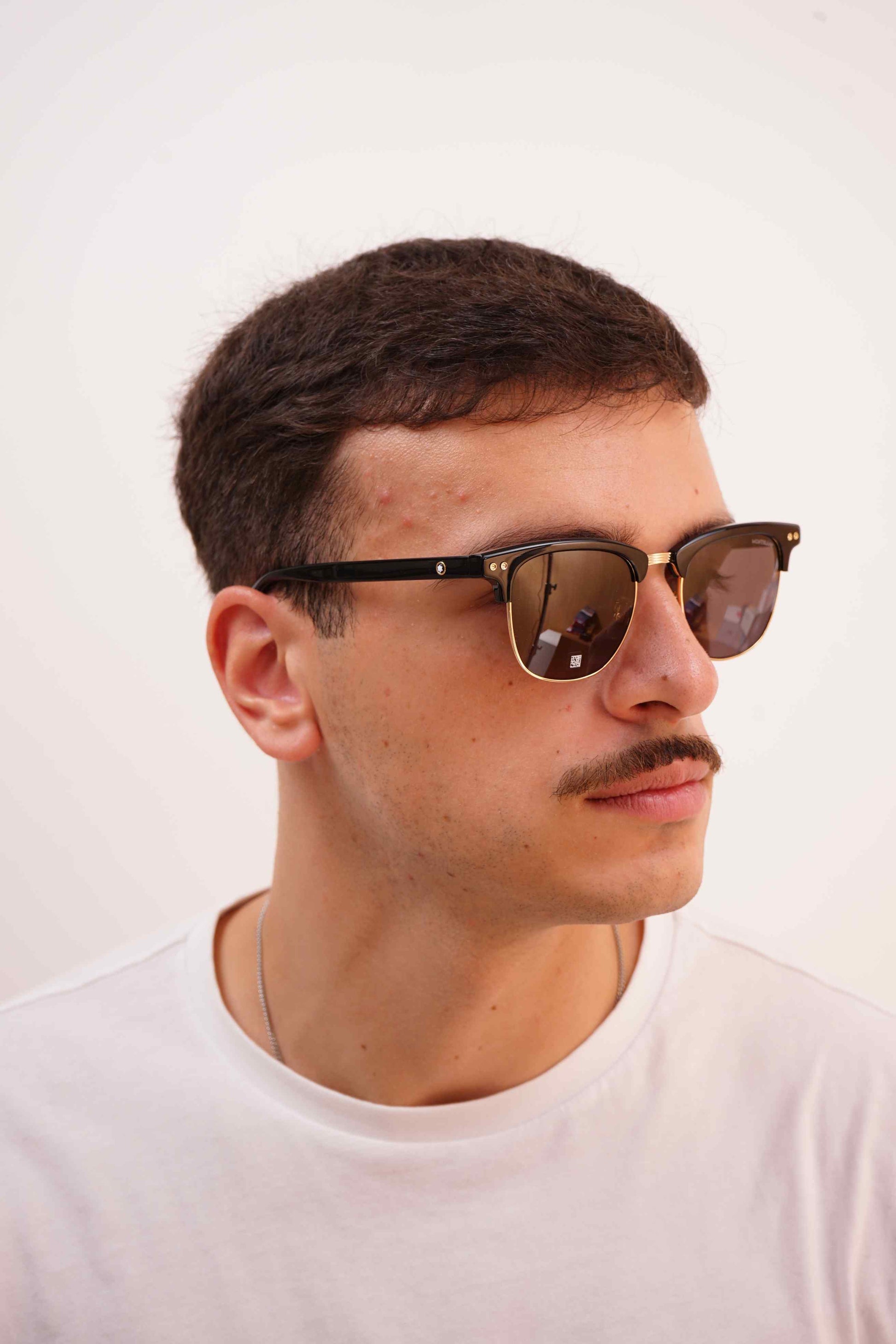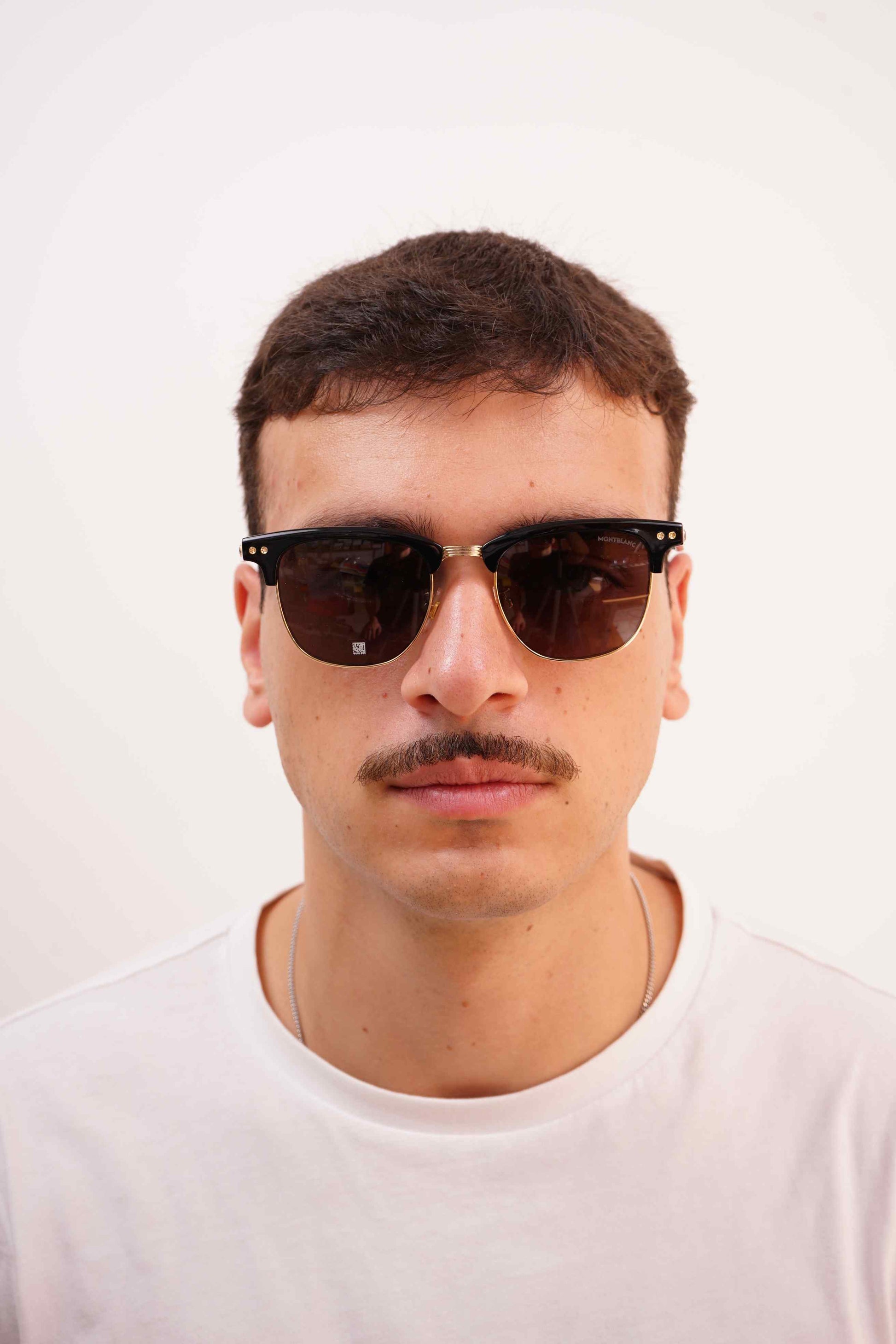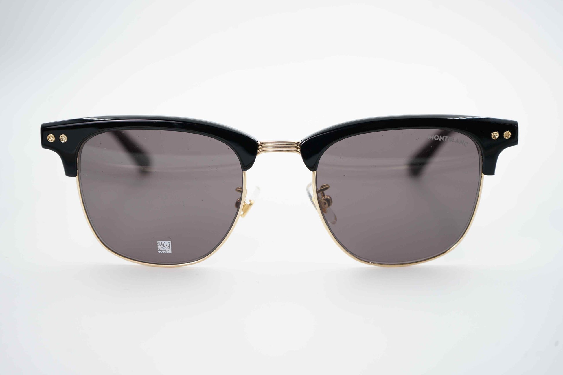 The Montblanc 0382S 001 sunglasses reinterpret the classic Clubmaster style with a contemporary and luxurious touch. The frame combines black acetate with a gold metal structure, balancing robustness and elegance. The gray lenses guarantee total UV protection and visual comfort in any environment. Gold details and the iconic Montblanc emblem on the temples reinforce the premium character of the brand.