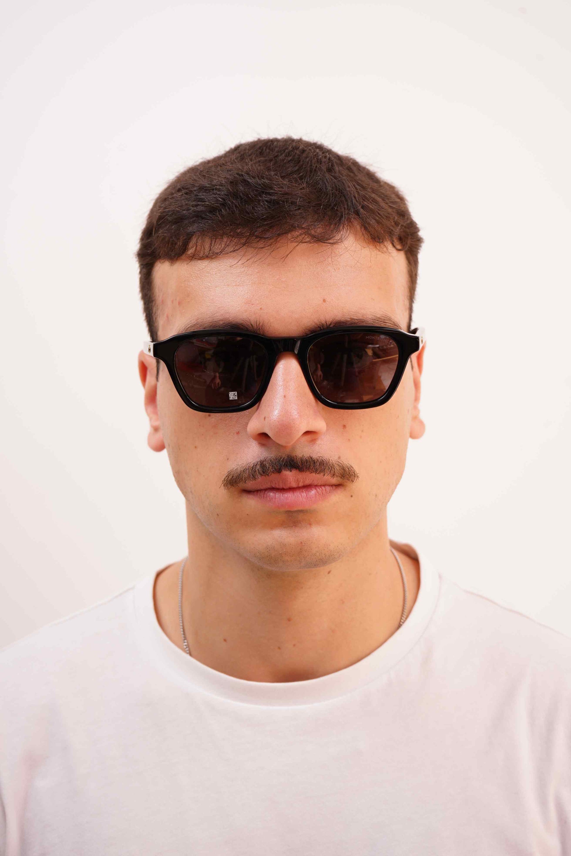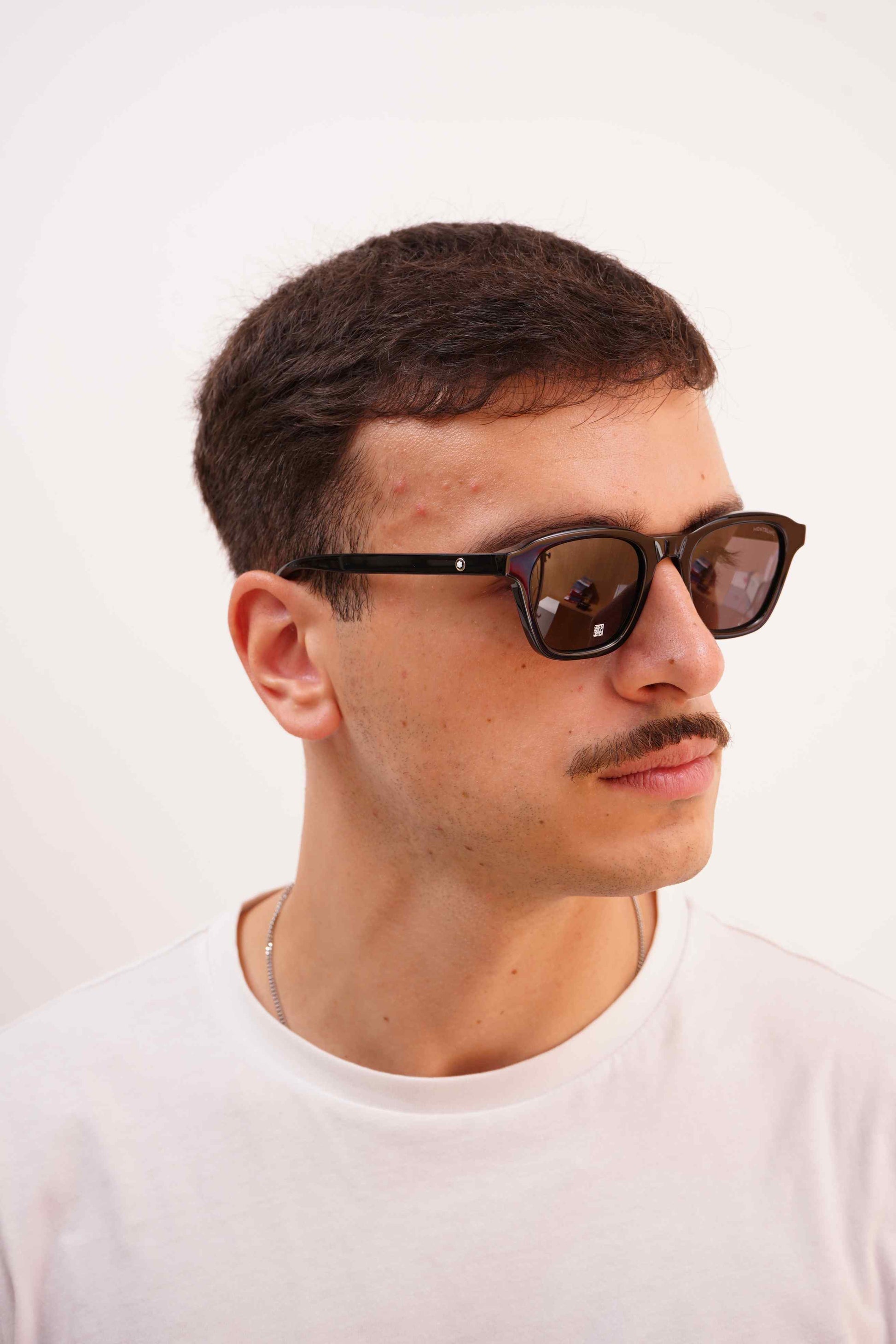 The Montblanc 0384S 001 sunglasses feature a polished black acetate frame with classic, timeless lines. The gray lenses offer full UV protection and comfortable vision in any environment. The Montblanc symbol on the temples reflects the brand's prestige and elegance, making this model a perfect choice for those who value understated sophistication and superior quality.