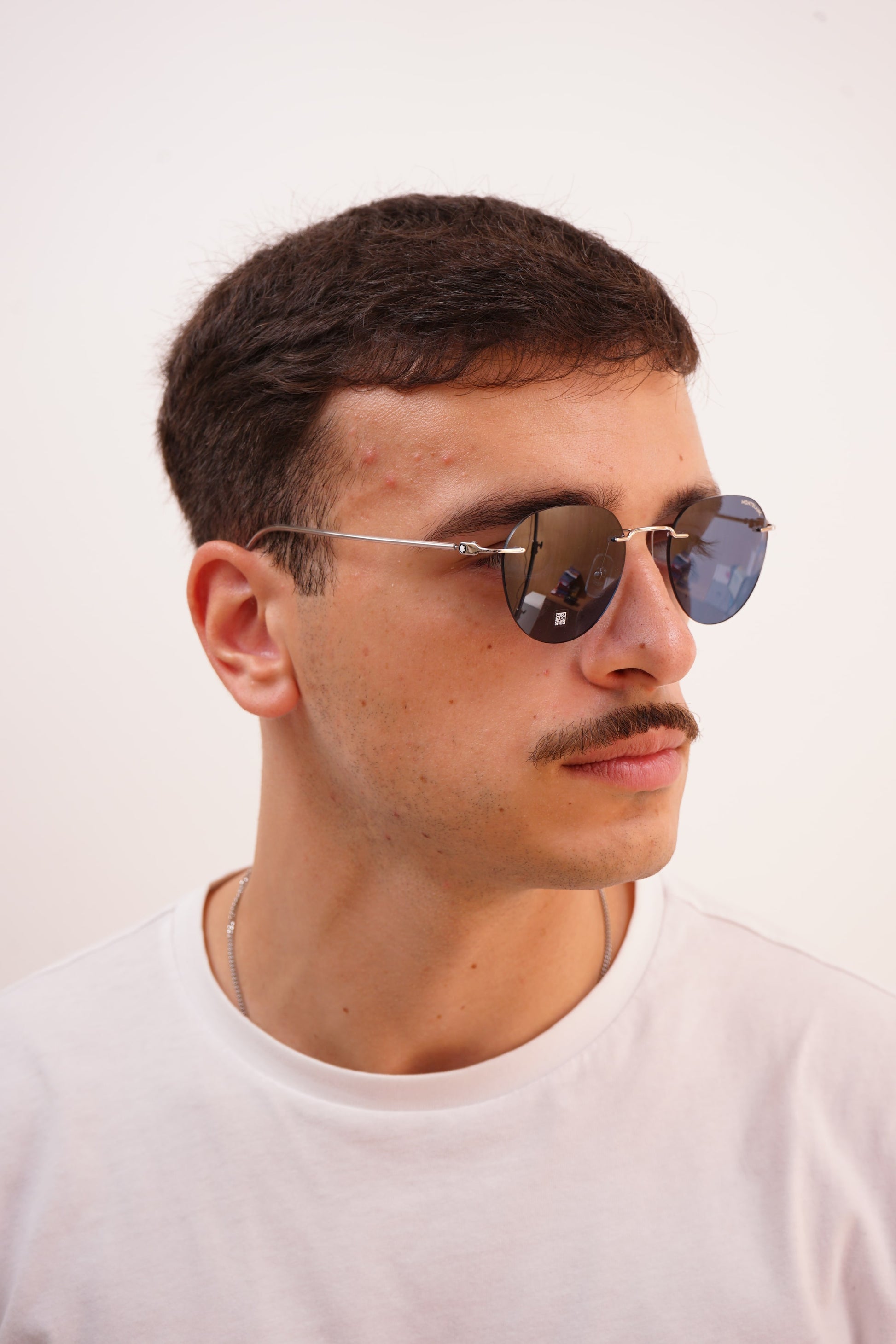 The Montblanc 0428S 004 sunglasses combine a rimless design with a lightweight, polished metal frame. The blue lenses offer complete UV protection and a modern touch that enhances the look without compromising comfort. They naturally fit medium and wide faces, ensuring stability and elegance for any occasion. A model that embodies the timeless sophistication and technical refinement characteristic of Montblanc.