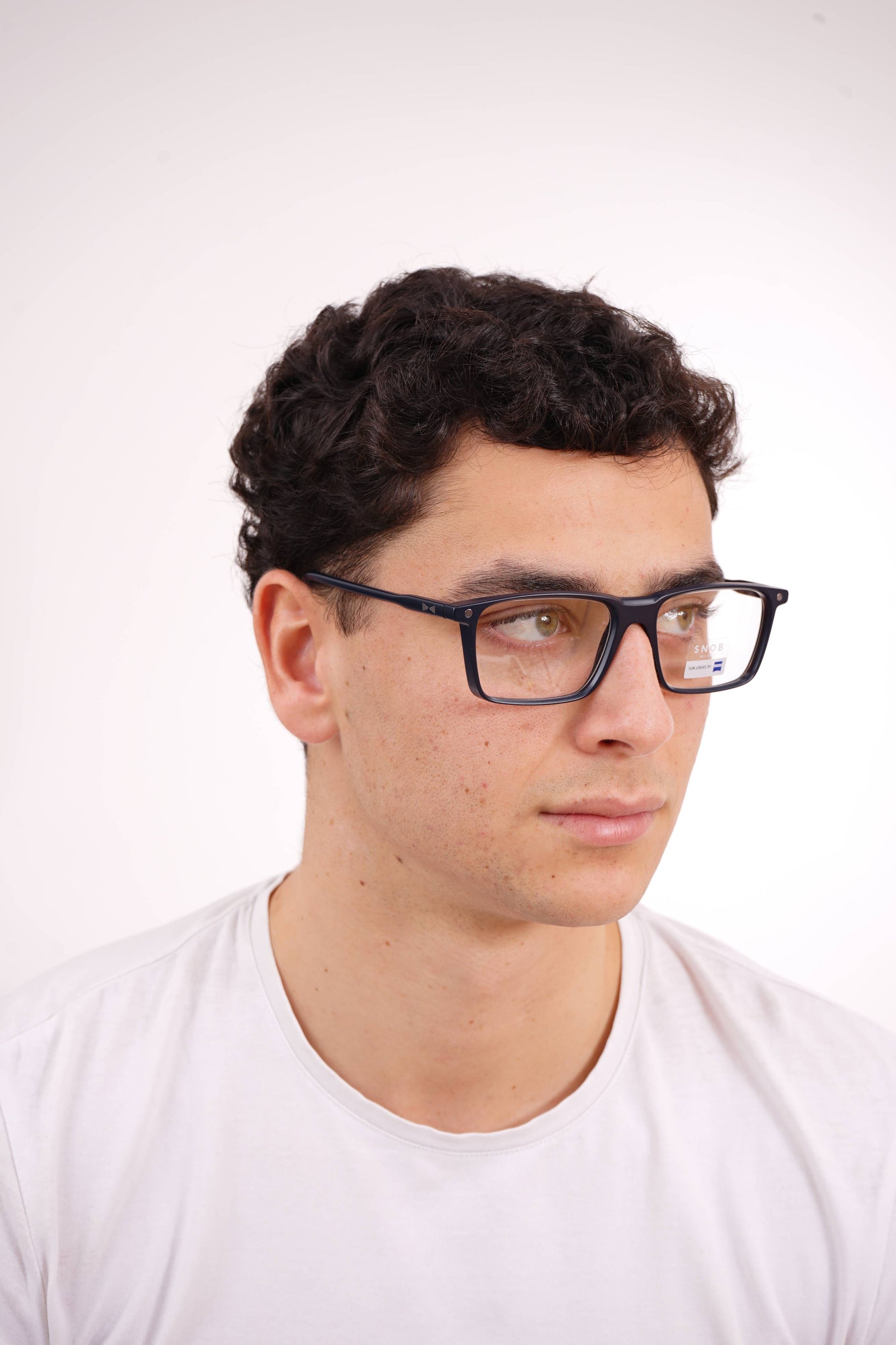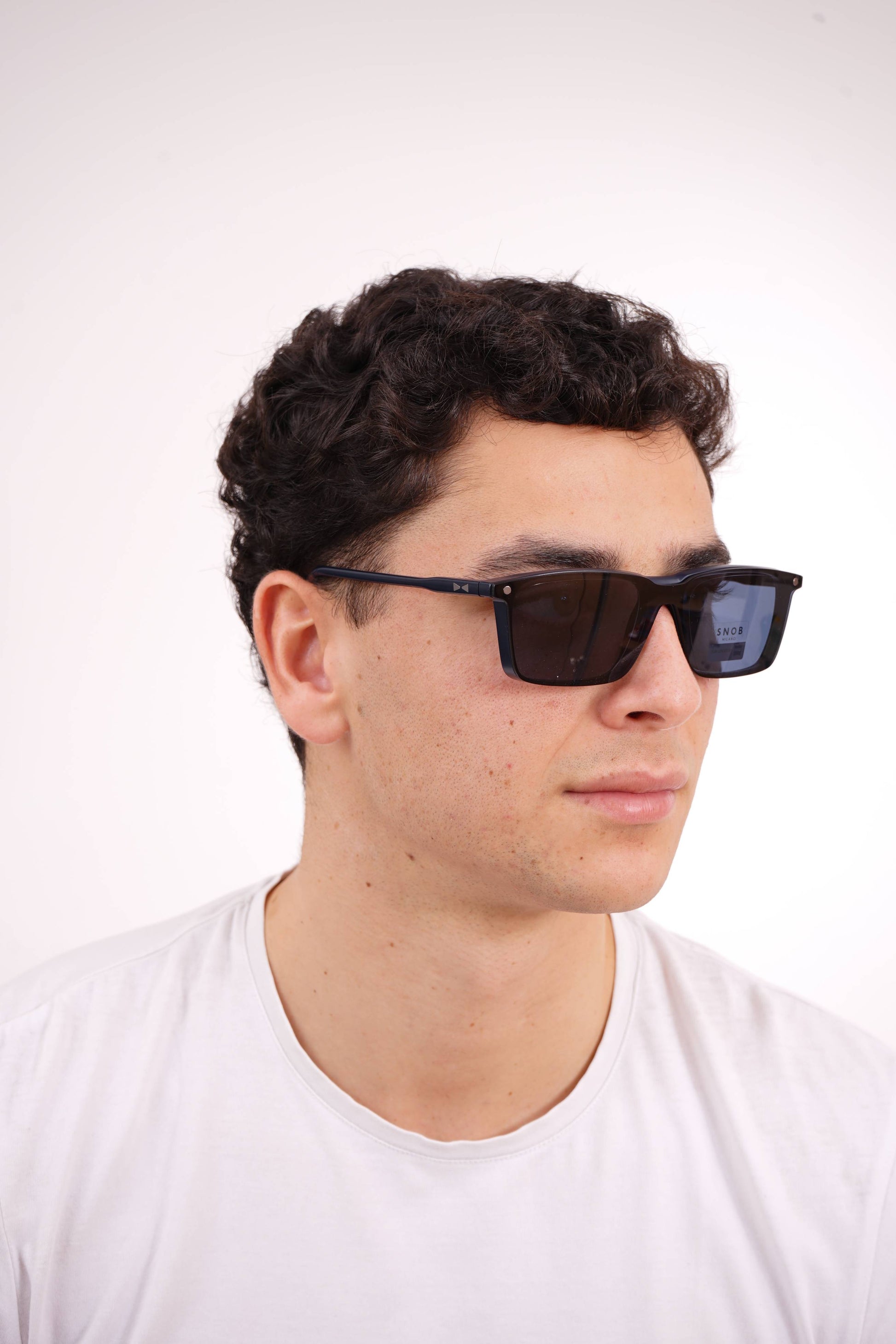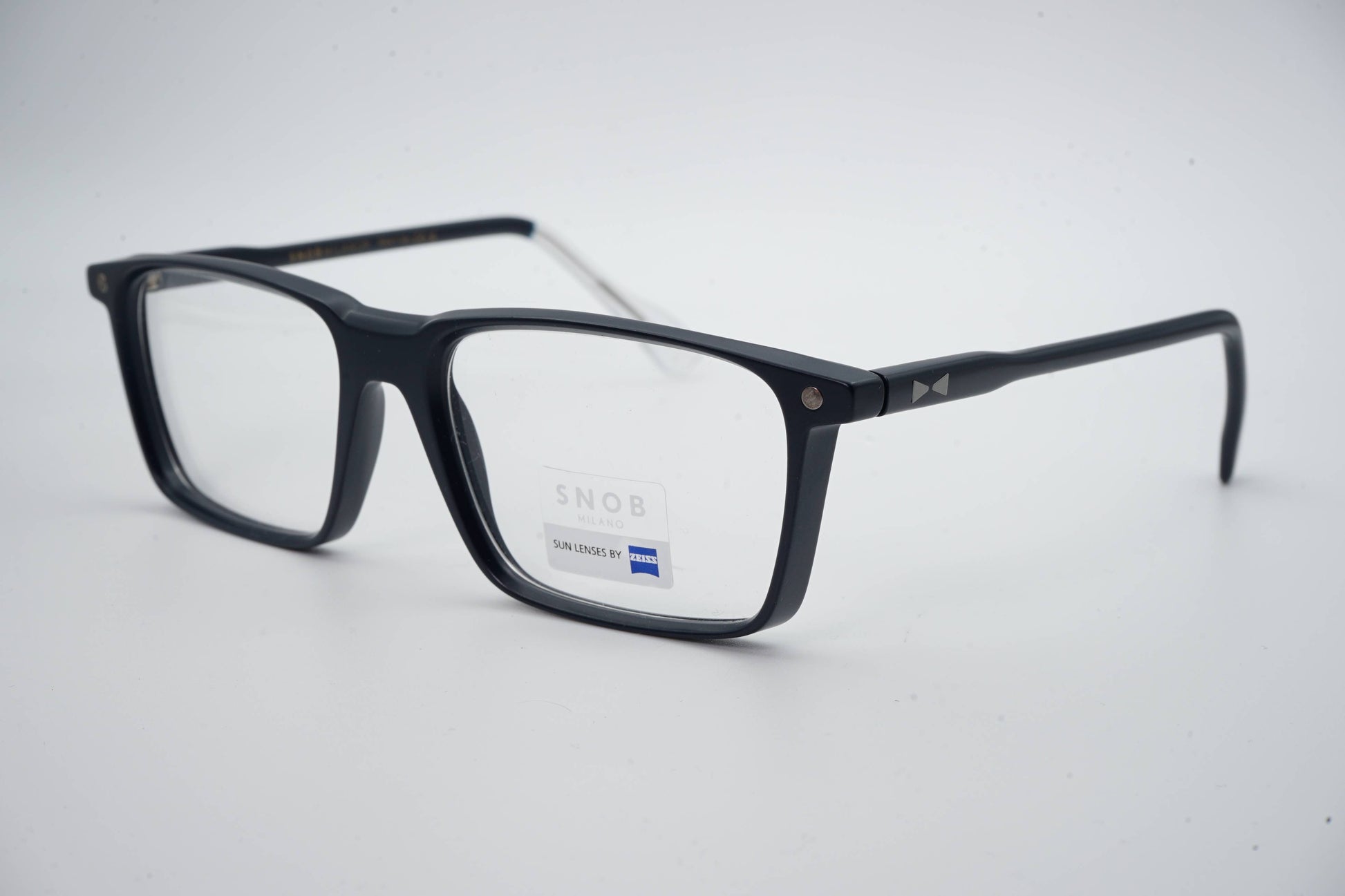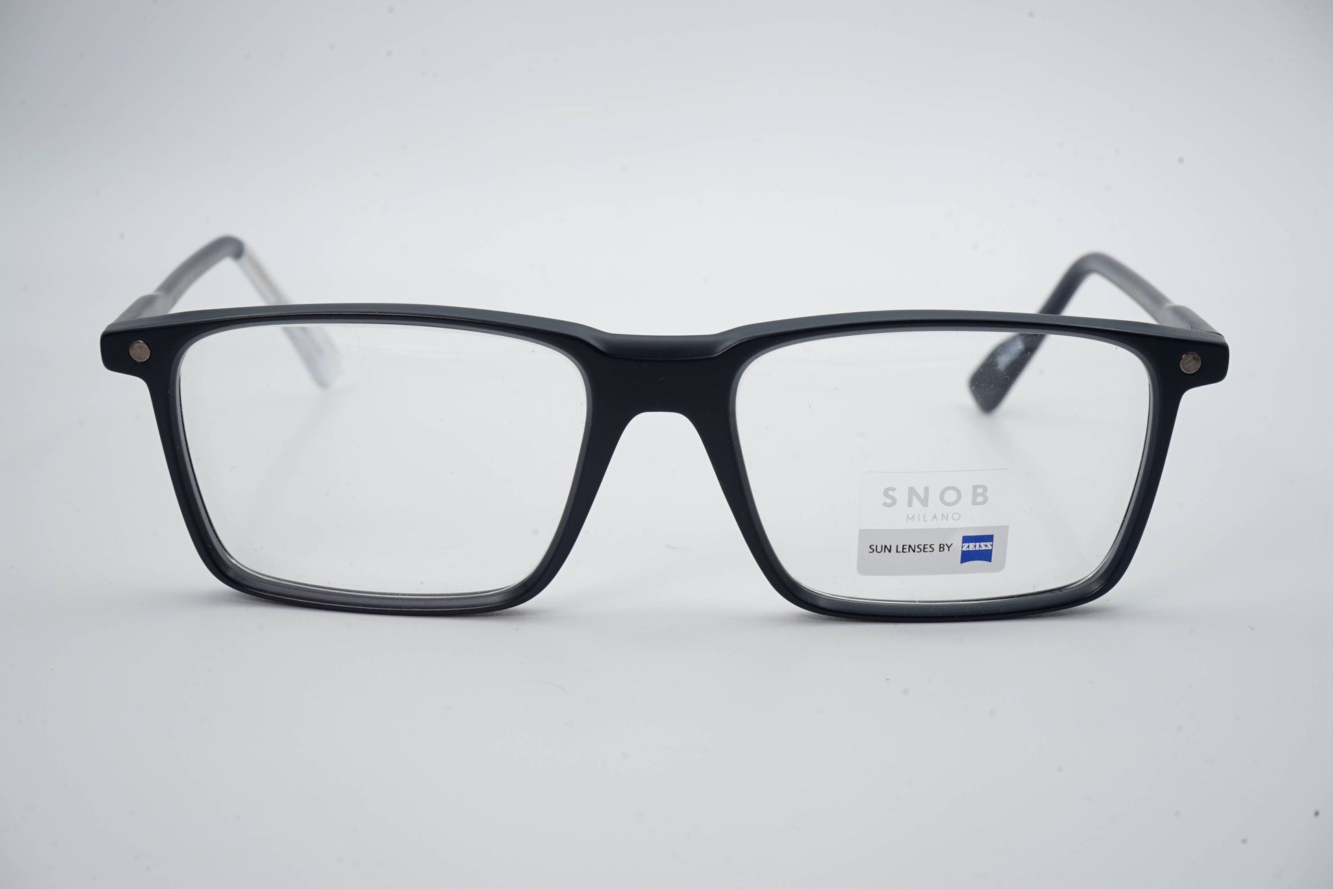 The Snob Milano Bellalì SNV213 C03 features a black acetate construction with straight lines and a contemporary profile. The wide front reinforces presence and stability, while the temples maintain ergonomics and lightness. The magnetic clip-on sun system instantly converts the optical model into sunglasses, maintaining a firm and discreet fit. Zeiss lenses ensure high-precision sun protection, guaranteeing visual comfort and daily performance.