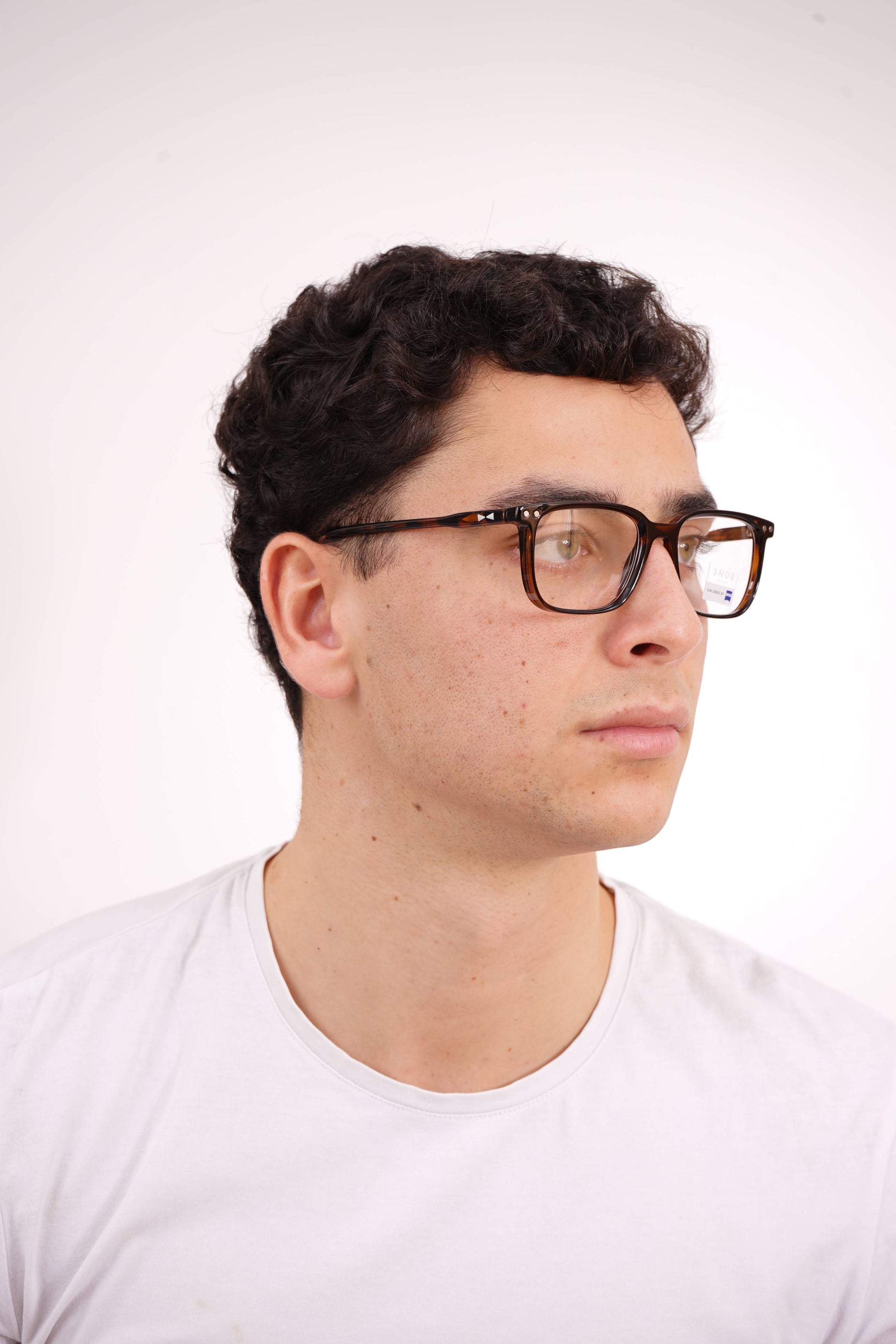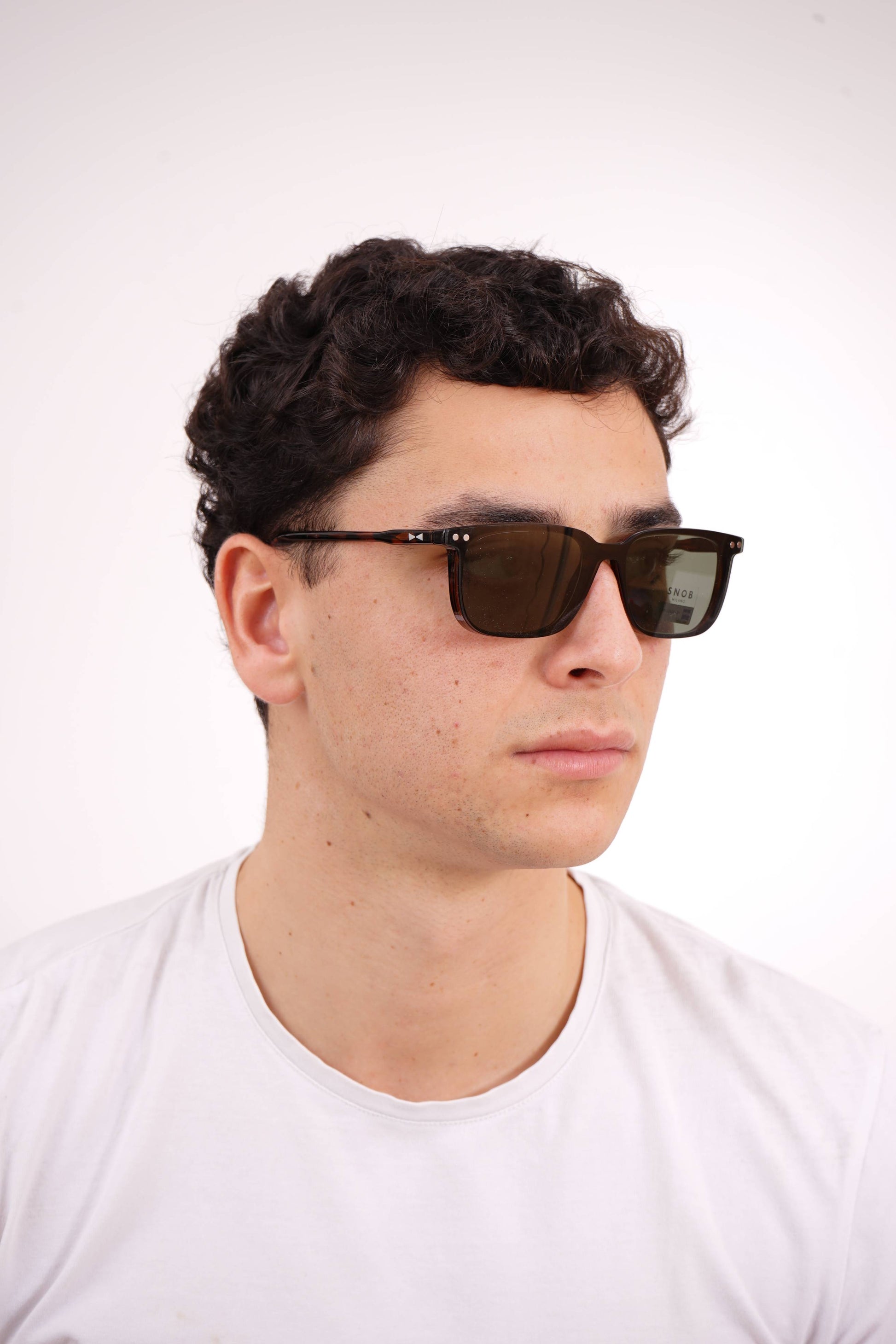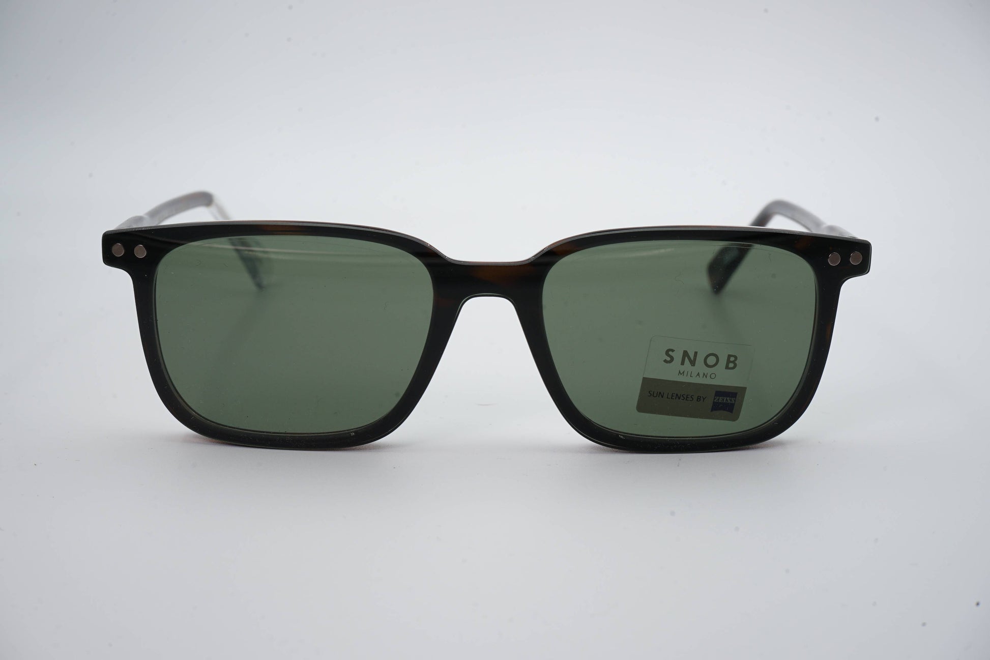 The Snob Milano Bitter SNV226 C02 combines a rectangular brown tortoise shell front with a lightweight, well-balanced acetate frame, offering comfort and stability for everyday wear. The brand identity is present in the metal rivets and geometric detail on the temples, reinforcing understated sophistication.