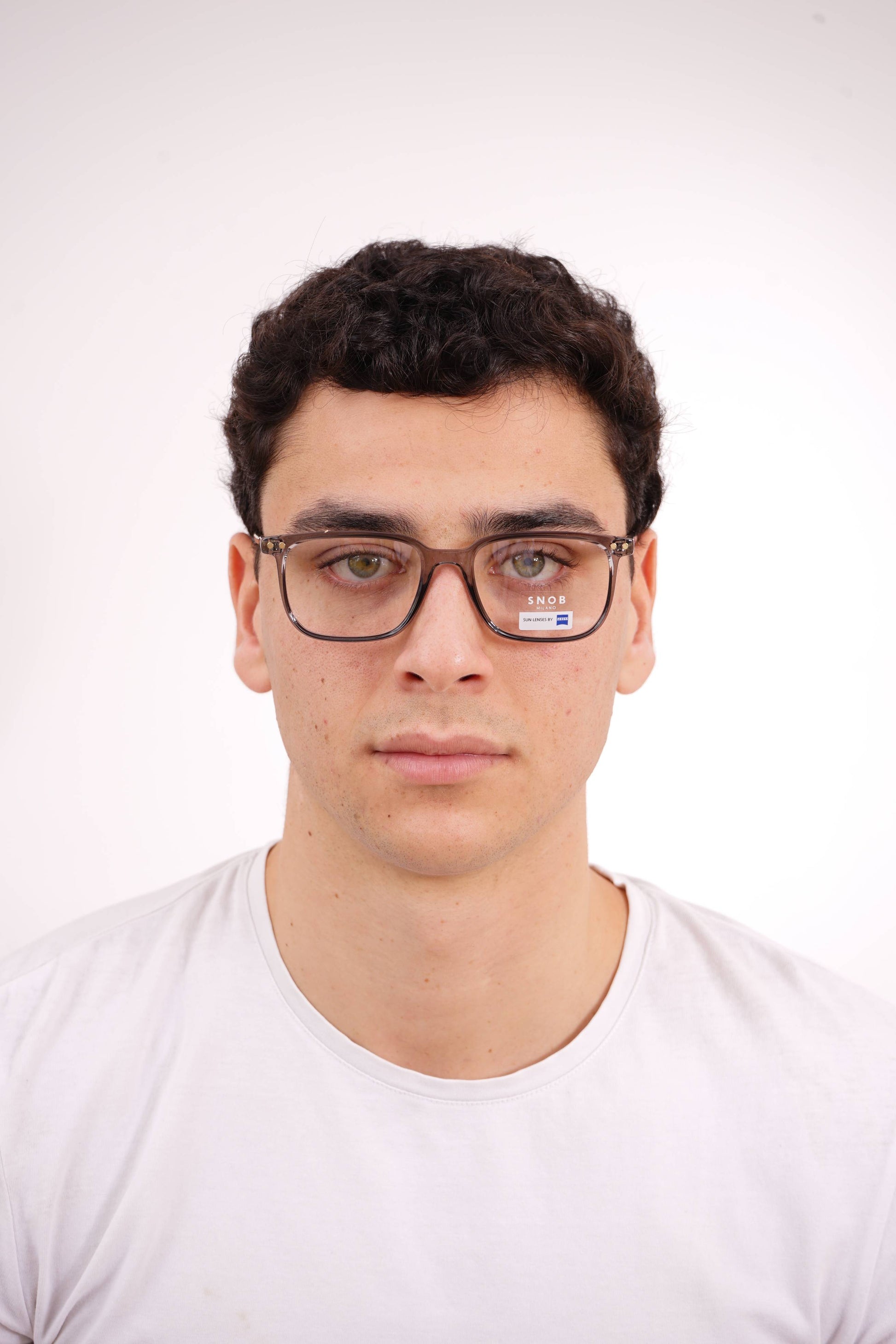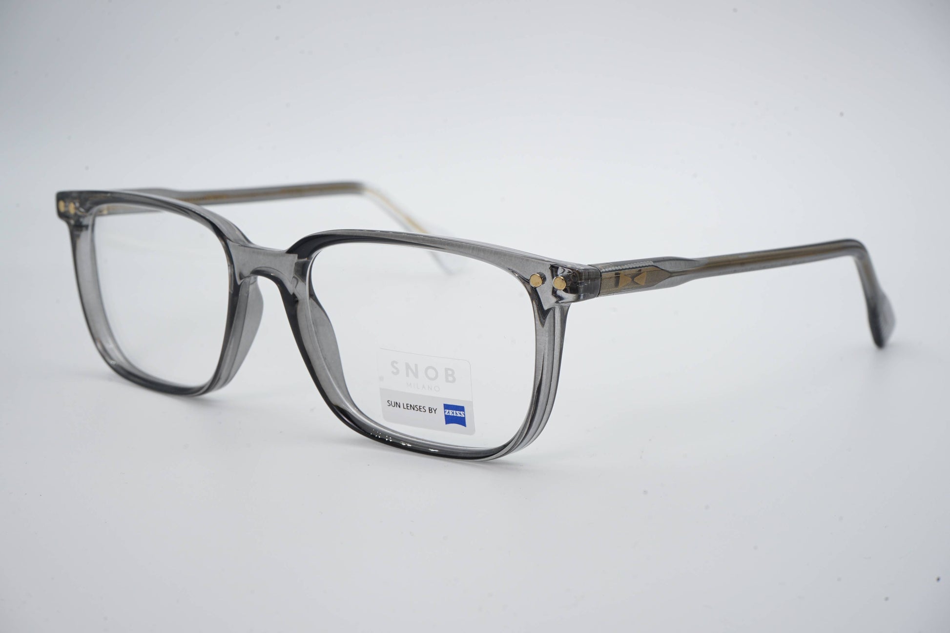 The Snob Milano Bitter SNV226 C04 combines a translucent acetate in smoky gray with a balanced and extremely versatile rectangular design. The construction maintains the classic profile of the Bitter line, but with a modern aesthetic thanks to the subtle transparency of the frame. The temples include the brand's characteristic geometric detail, reinforcing identity and sophistication.