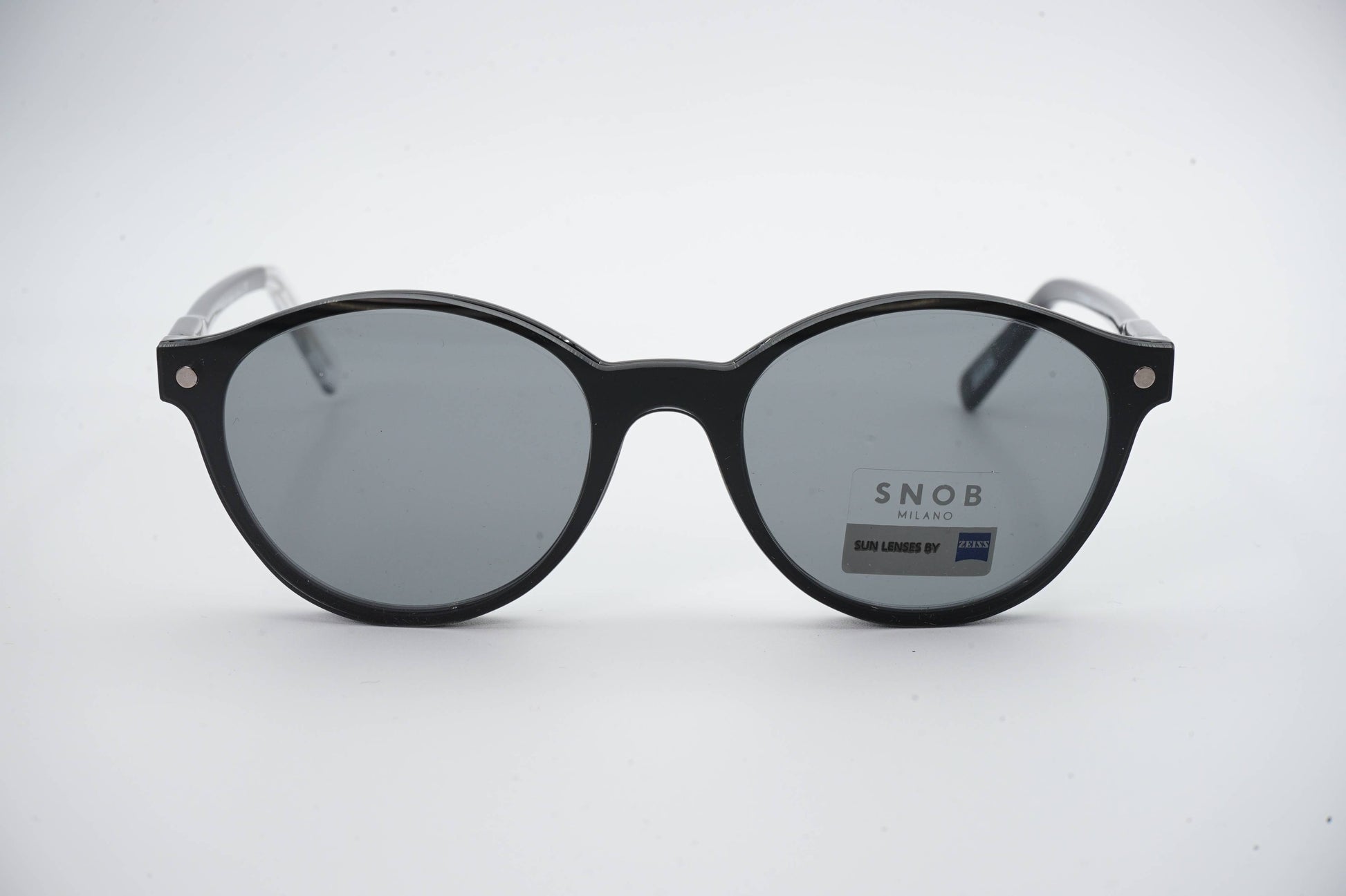 The Snob Milano Cicinin SNV05 C11 features a rounded front in polished black acetate, with smooth, well-defined lines that ensure an elegant, understated, and timeless look. The balanced construction conveys solidity and comfort, making the model suitable for everyday wear without compromising aesthetics.
