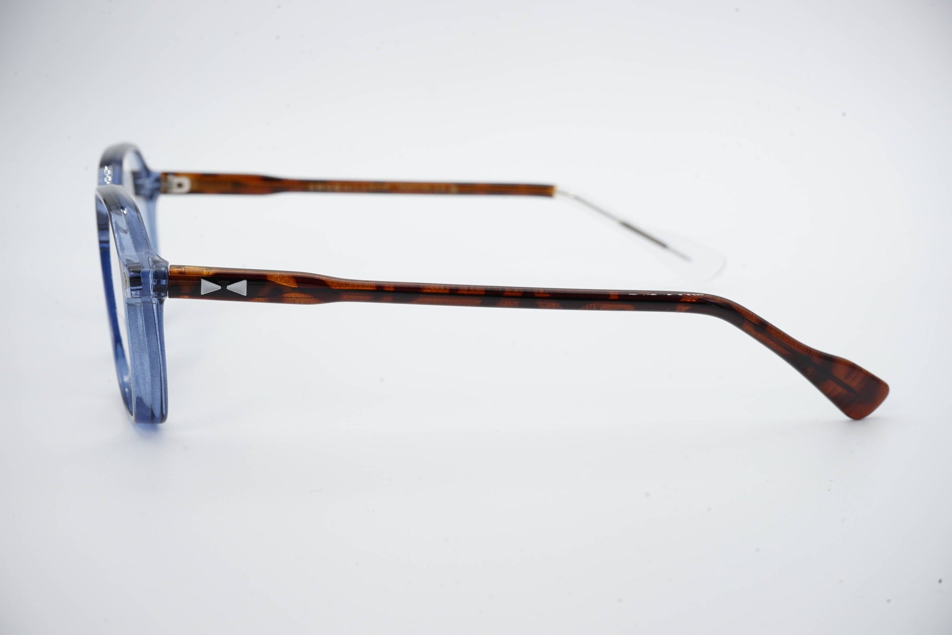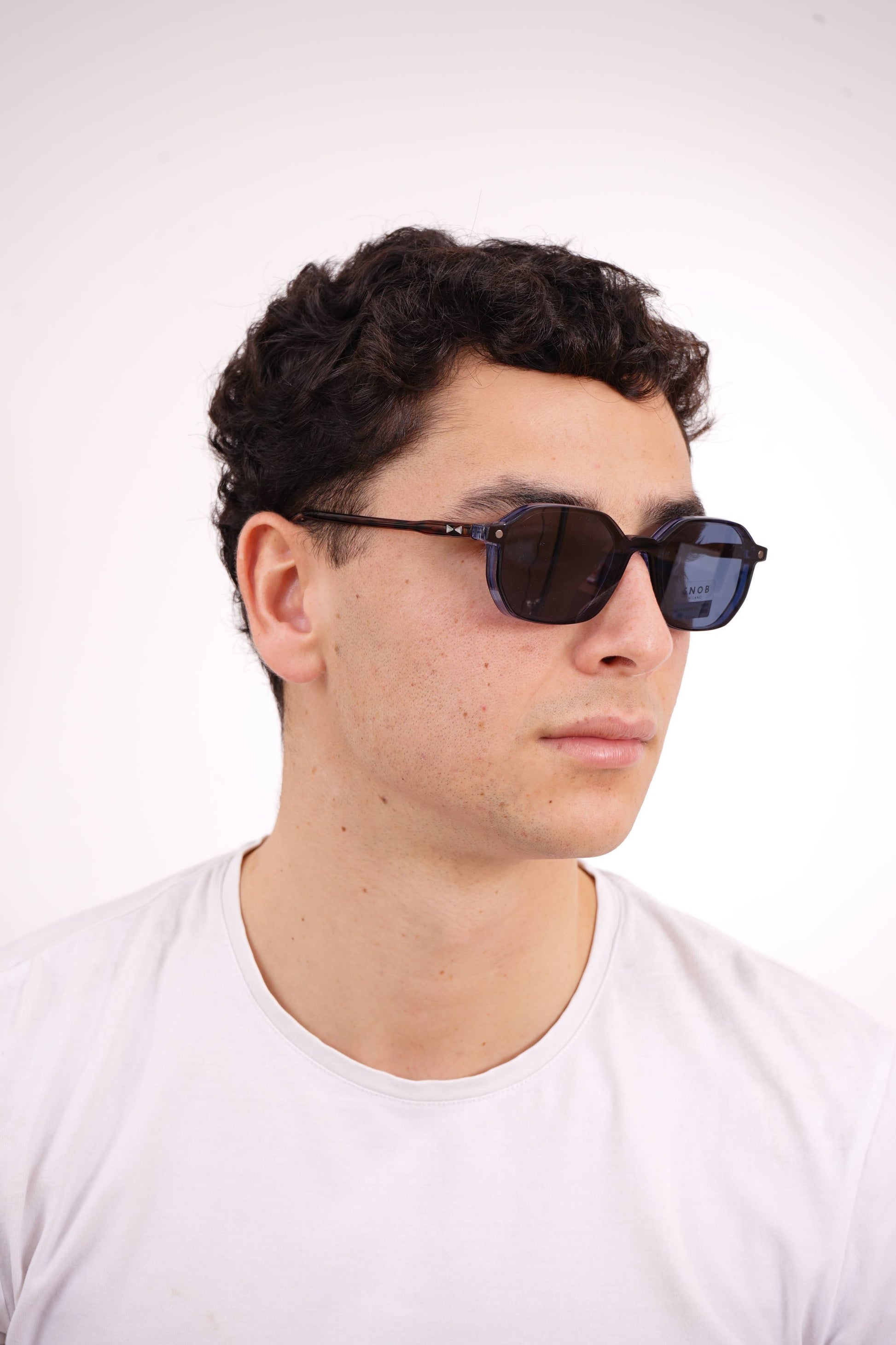 The Snob Milano Dino SNV200 C03 features a contemporary square design, with a translucent blue acetate front that adds chromatic depth, modernity, and a light visual appeal. The well-defined geometry provides structure to the face without excess, ensuring comfort and stability for everyday use.