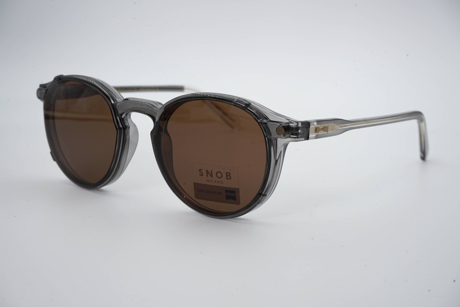O Snob Milano Dogui Vee SNV178CP C13 combina design italiano com funcionalidade avançada. A armação em acetato transparente fumado oferece leveza, resistência e um visual contemporâneo. O clip-on solar magnético transforma o modelo optical em óculos de sol em segundos, garantindo praticidade diária. As lentes solares Zeiss asseguram proteção superior e nitidez visual. Um modelo versátil, preciso e pensado para utilizadores que exigem eficiência e estilo num único produto.