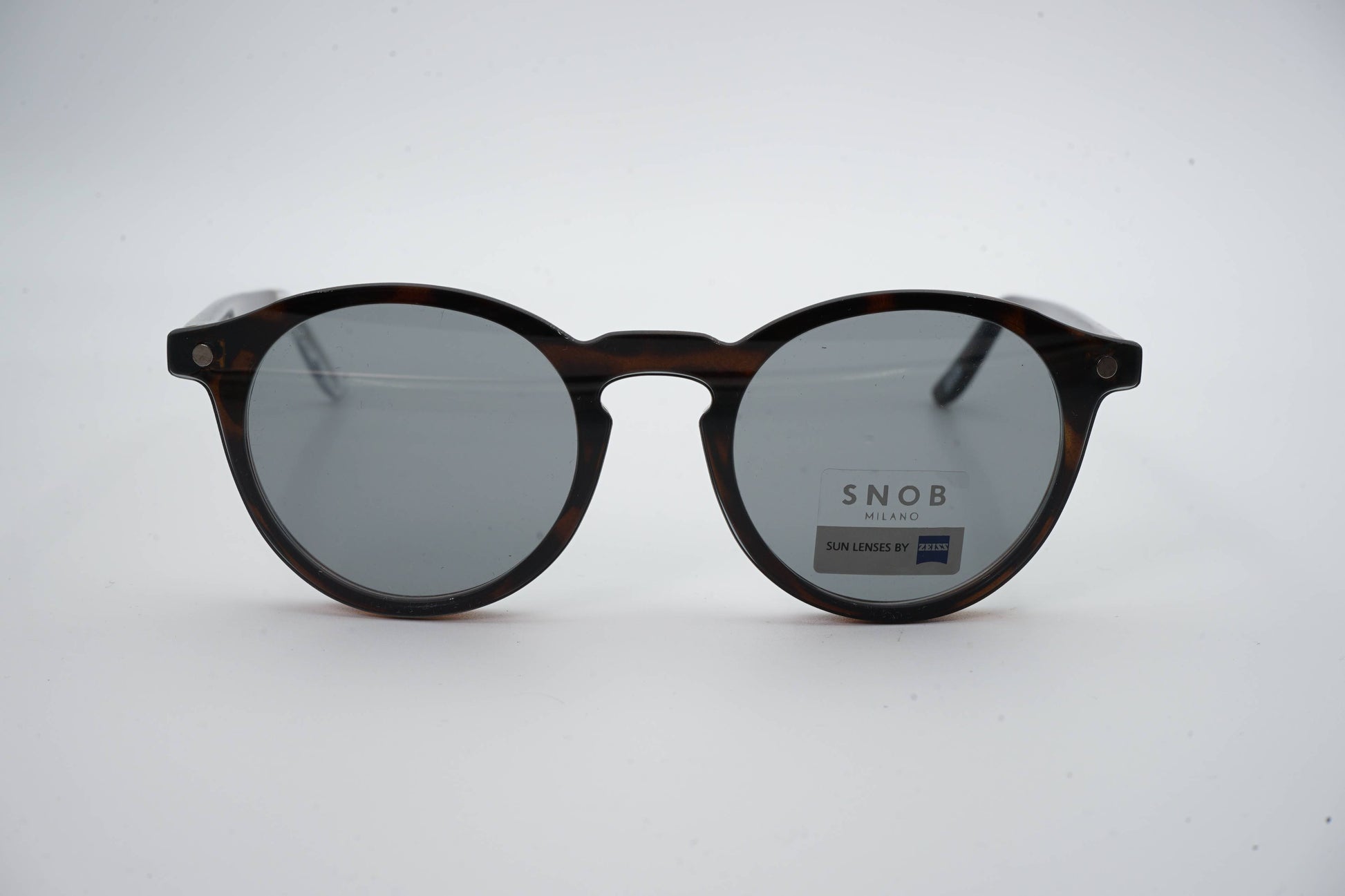 The Snob Milano Doguito SNV225 C02 maintains the timeless, rounded design of the Doguito line, presented here in dark tortoise acetate , with greater contrast and a more striking look. A solid classic, designed for those who want a discreet yet assertive presence.