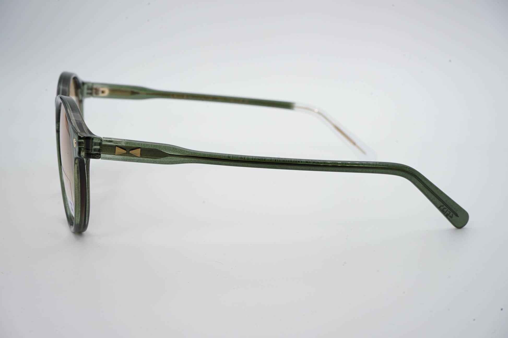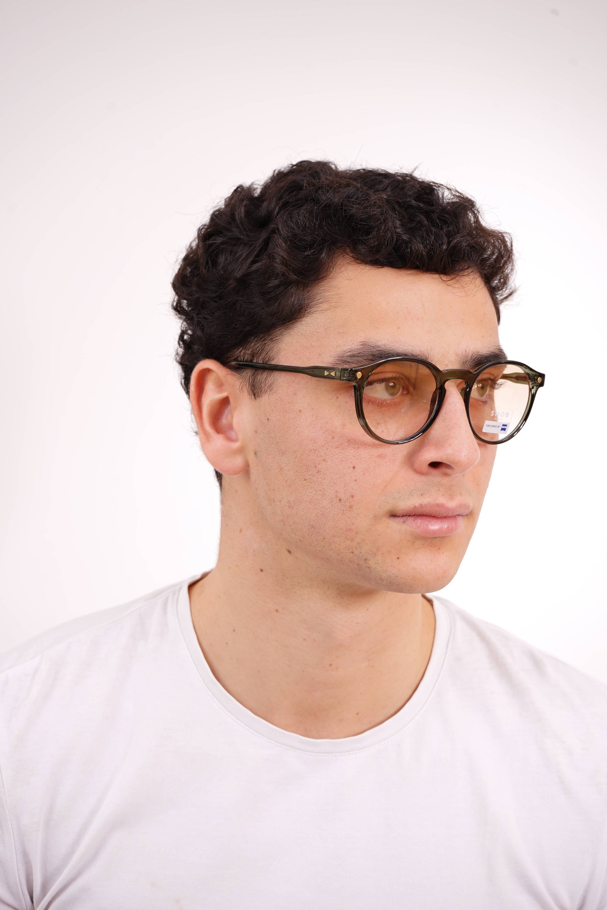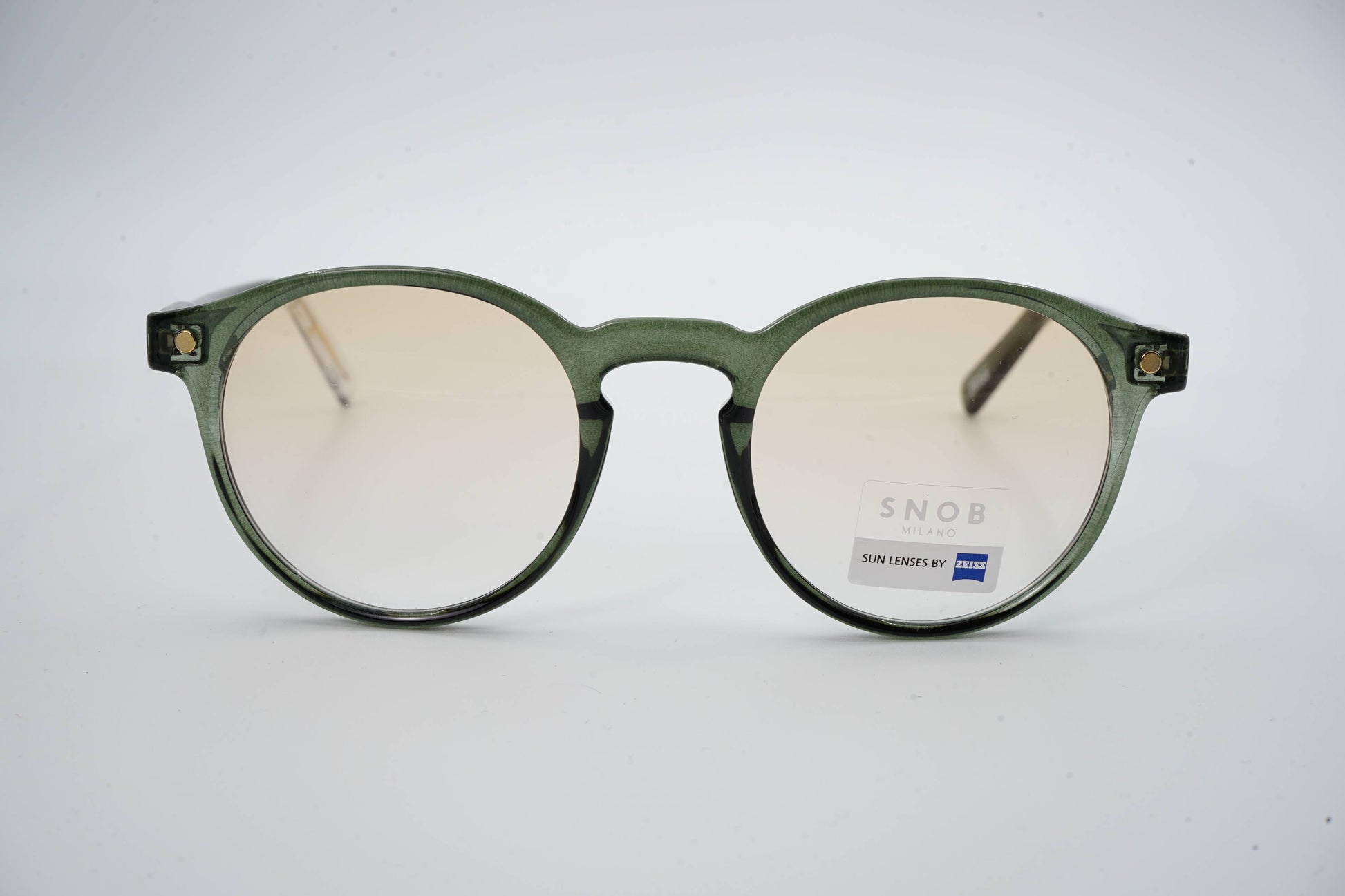 The Snob Milano IL Dogui SNVX10 C04 combines Italian aesthetics with functional engineering. The translucent green acetate frame stands out for its lightness and metallic sheen, while maintaining the classic round design that flatters any face shape.