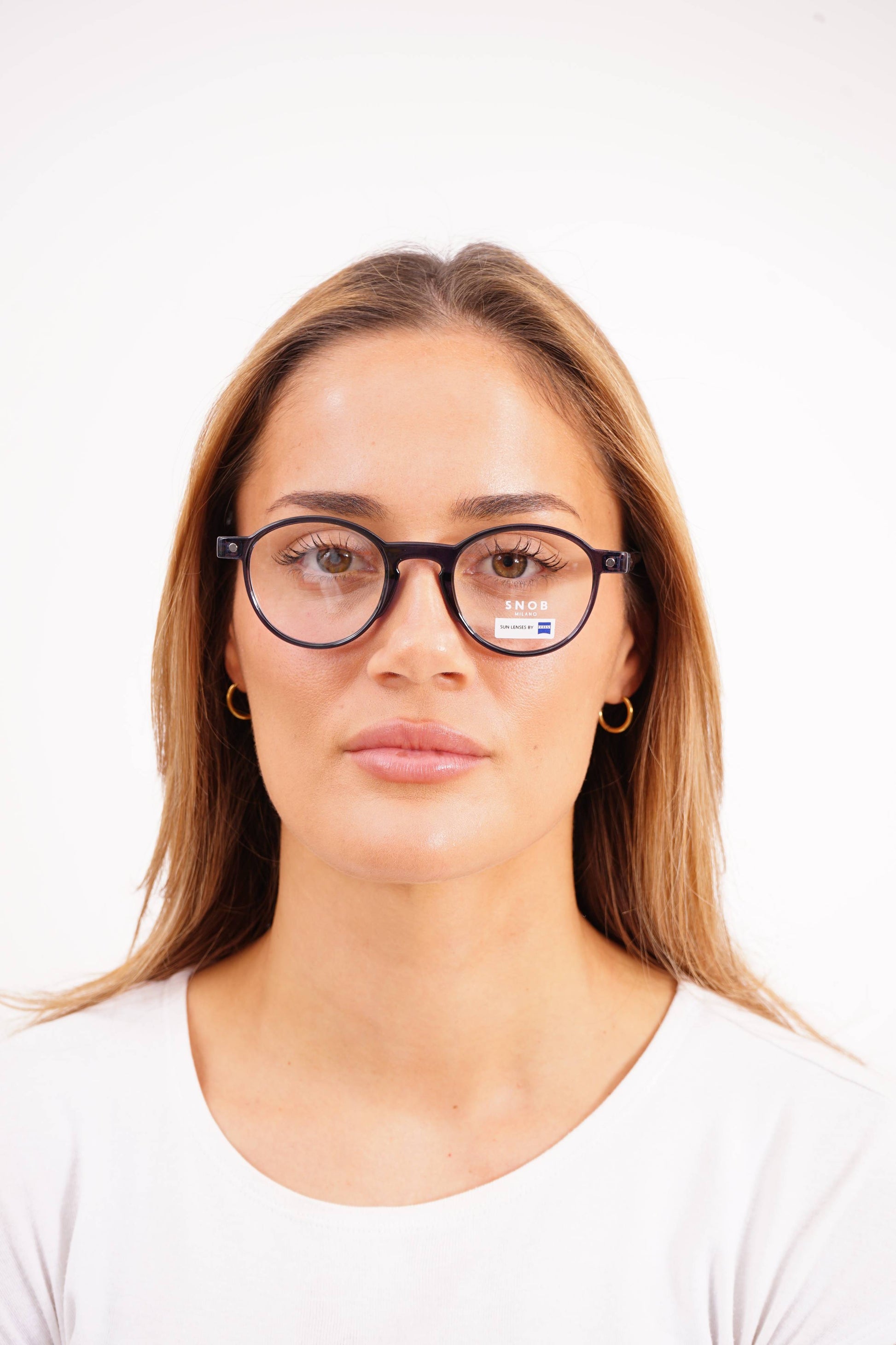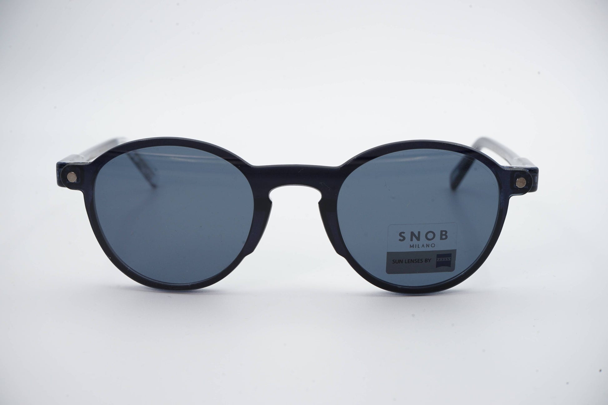 The Snob Milano Lillo SNV145 C13 maintains the model's classic rounded design, presented in a sober and technically refined translucent dark blue acetate . The deep tone conveys seriousness and versatility, suitable for both professional and casual settings.