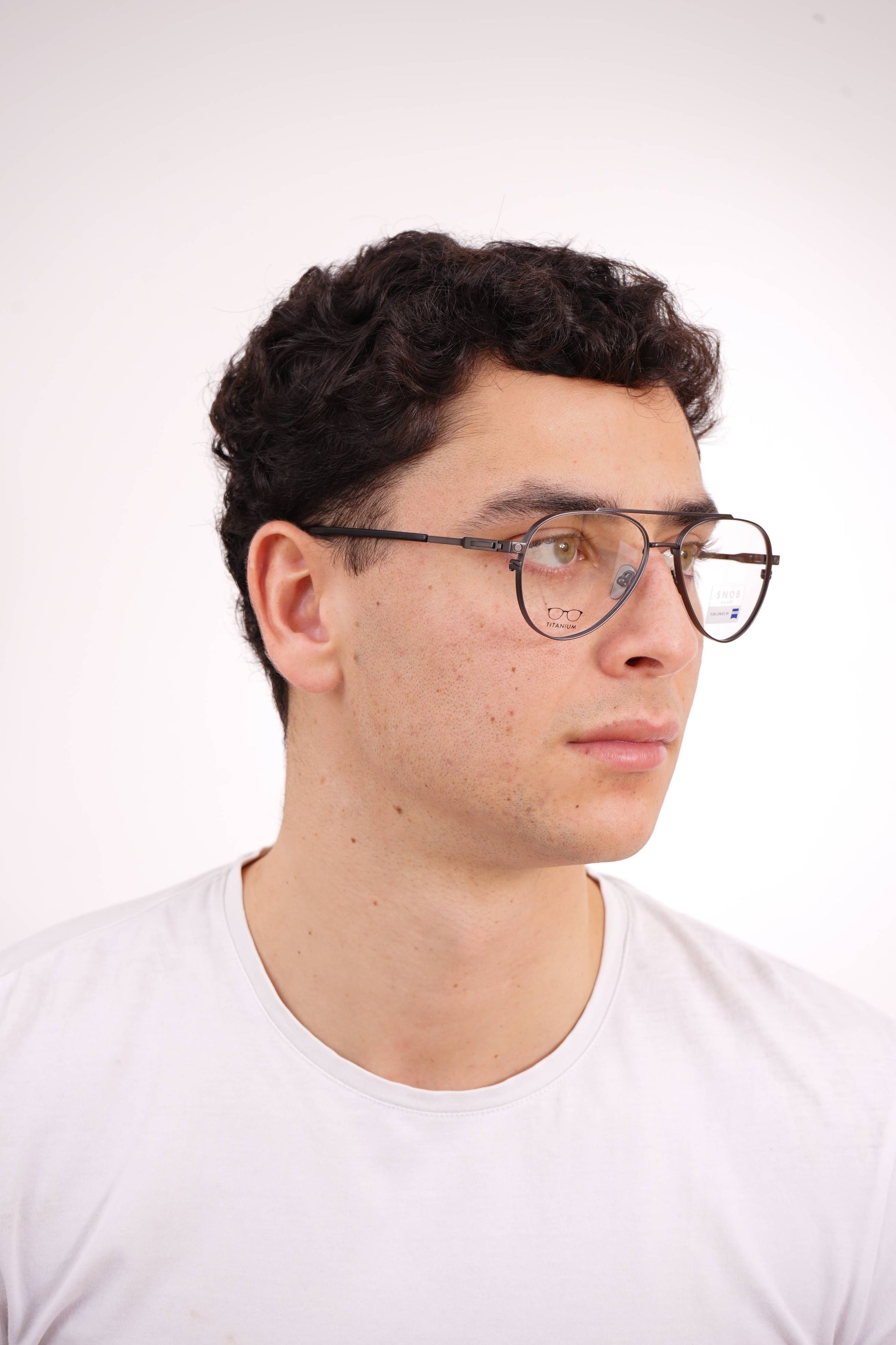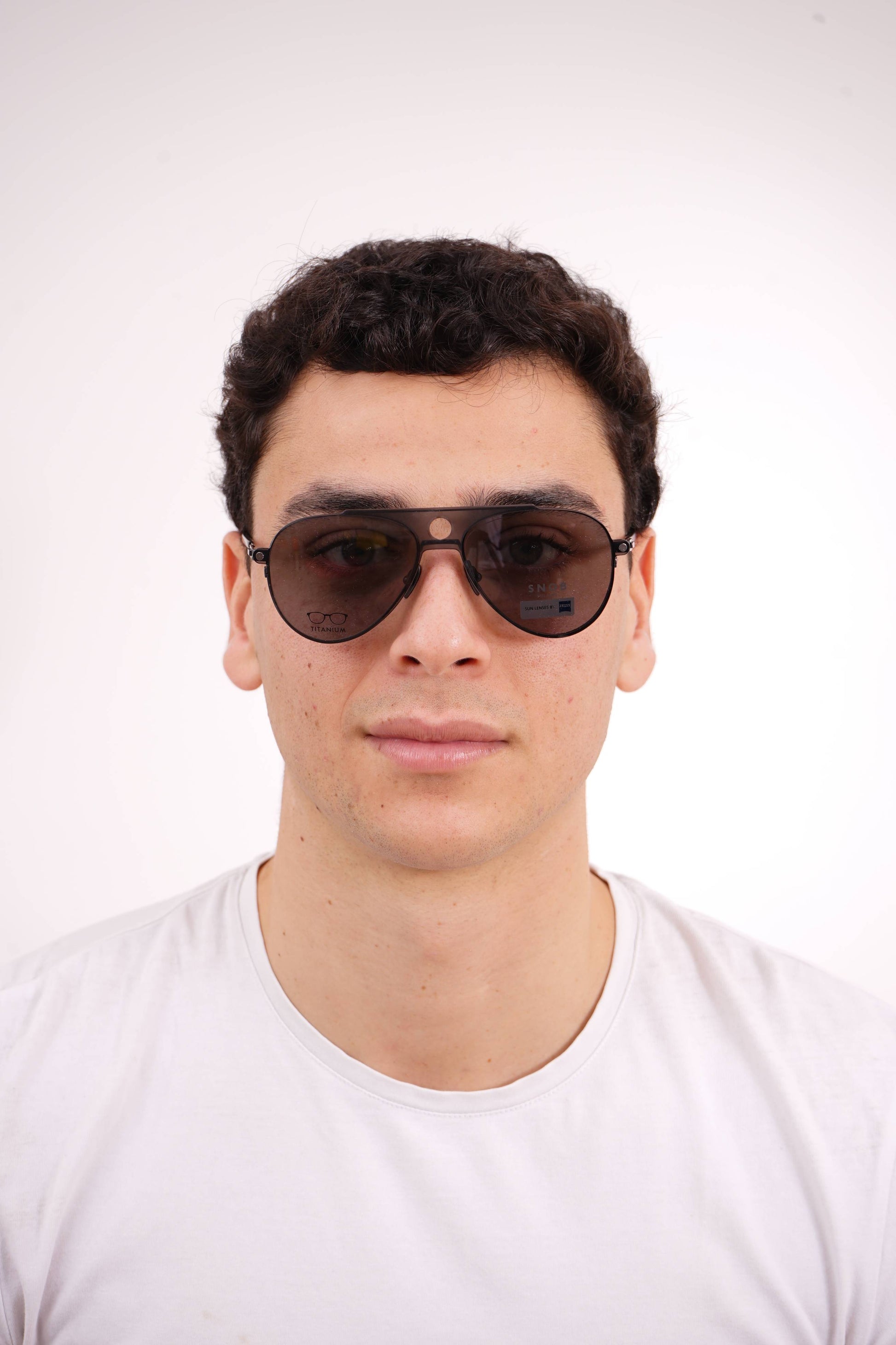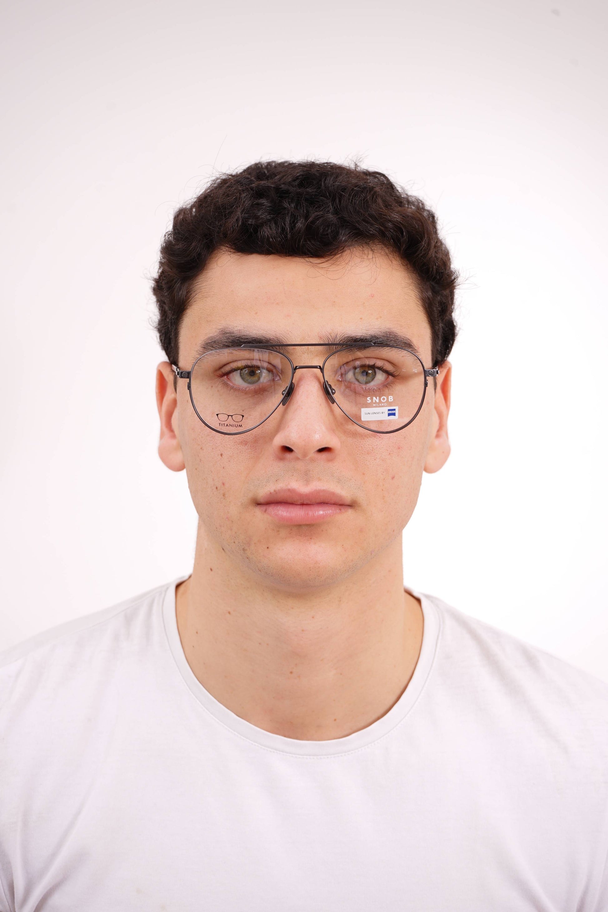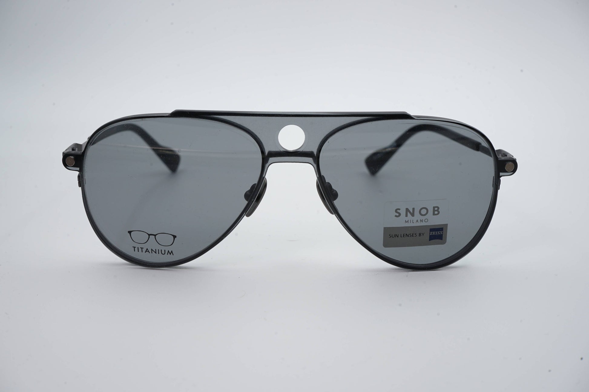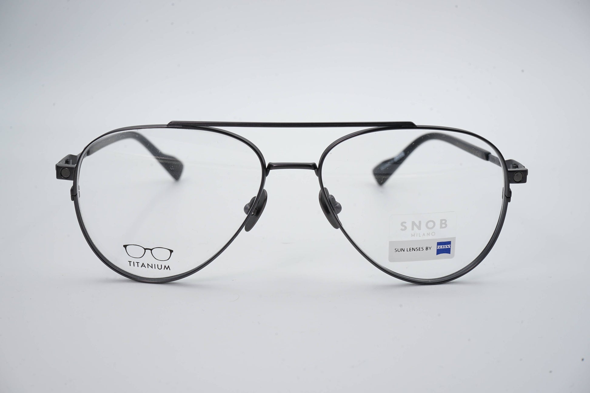 The Snob Milano Luke SNV230T C03 combines the lightness and strength of titanium with a contemporary and rigorous aviator design. The slim matte black metal frame gives it a technical and elegant look, while the double upper rim reinforces its presence and stability. Adjustable nose pads ensure a precise fit for any nose bridge.