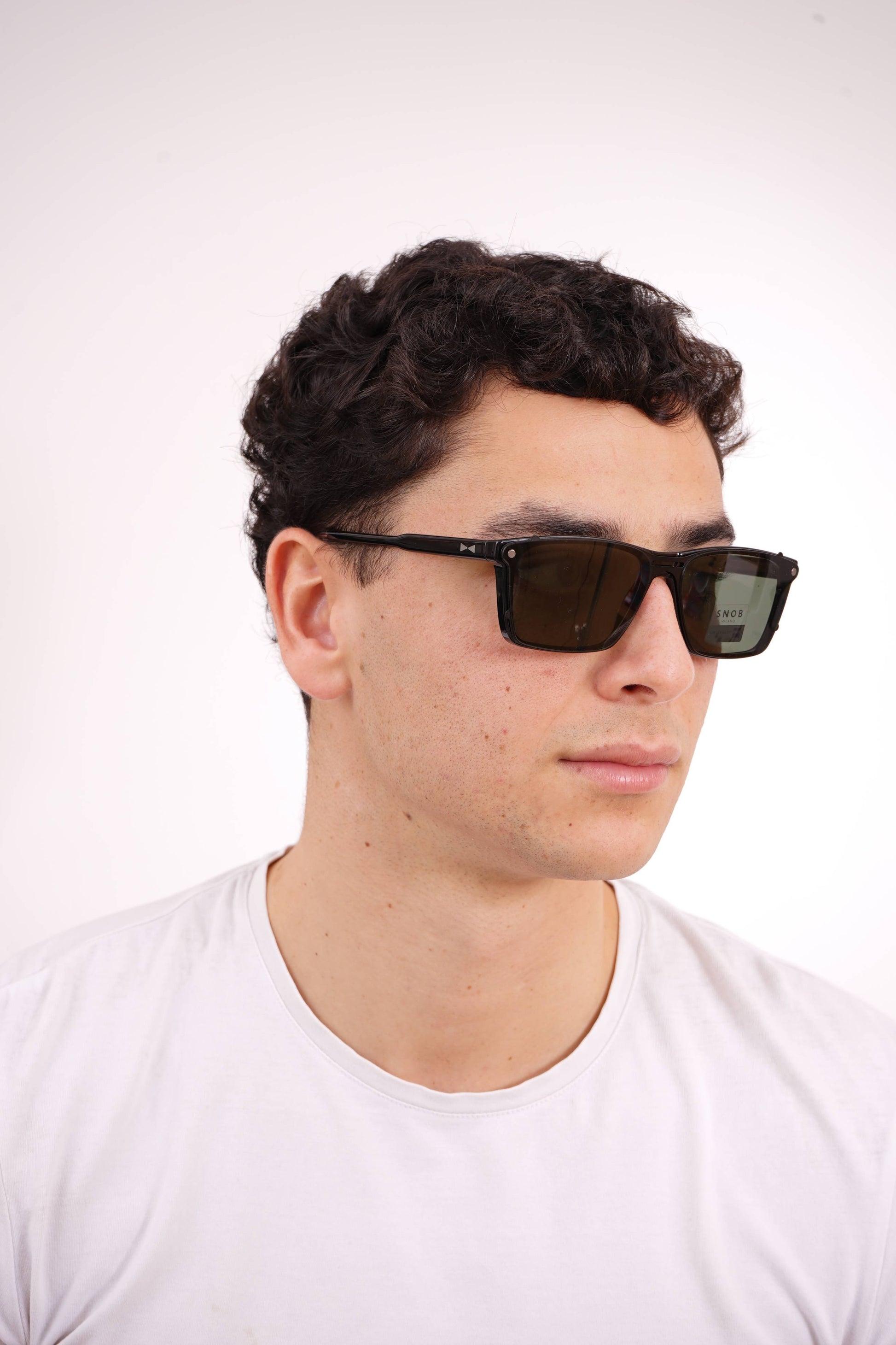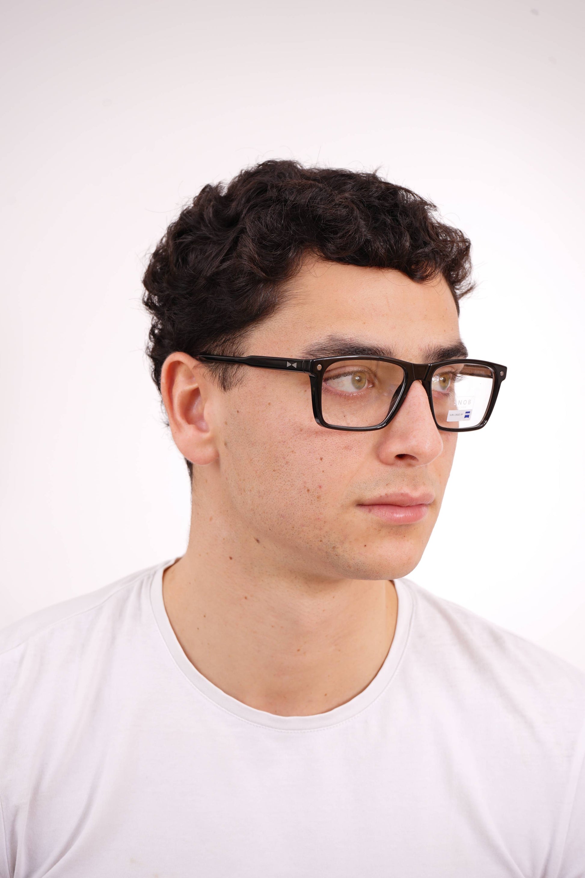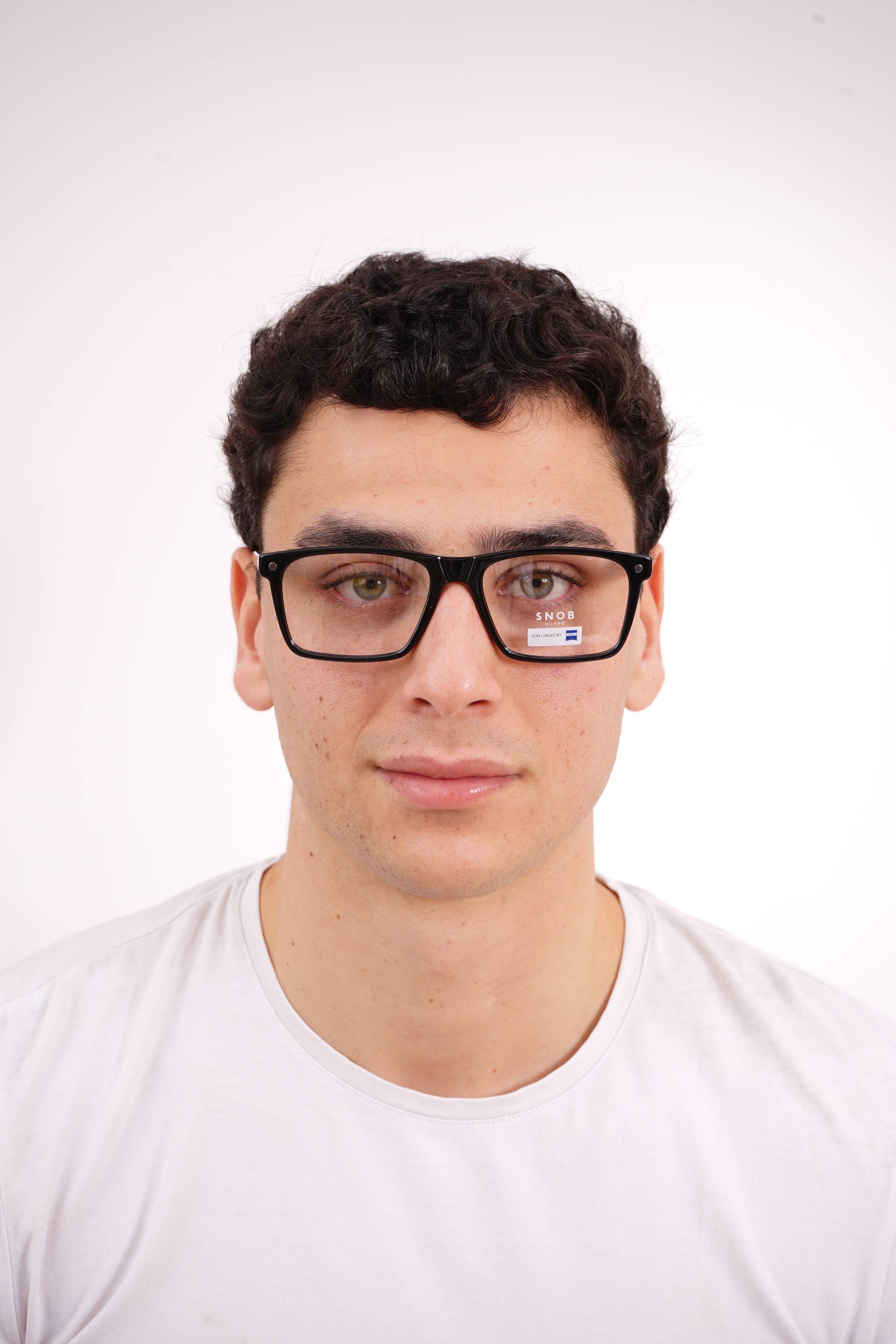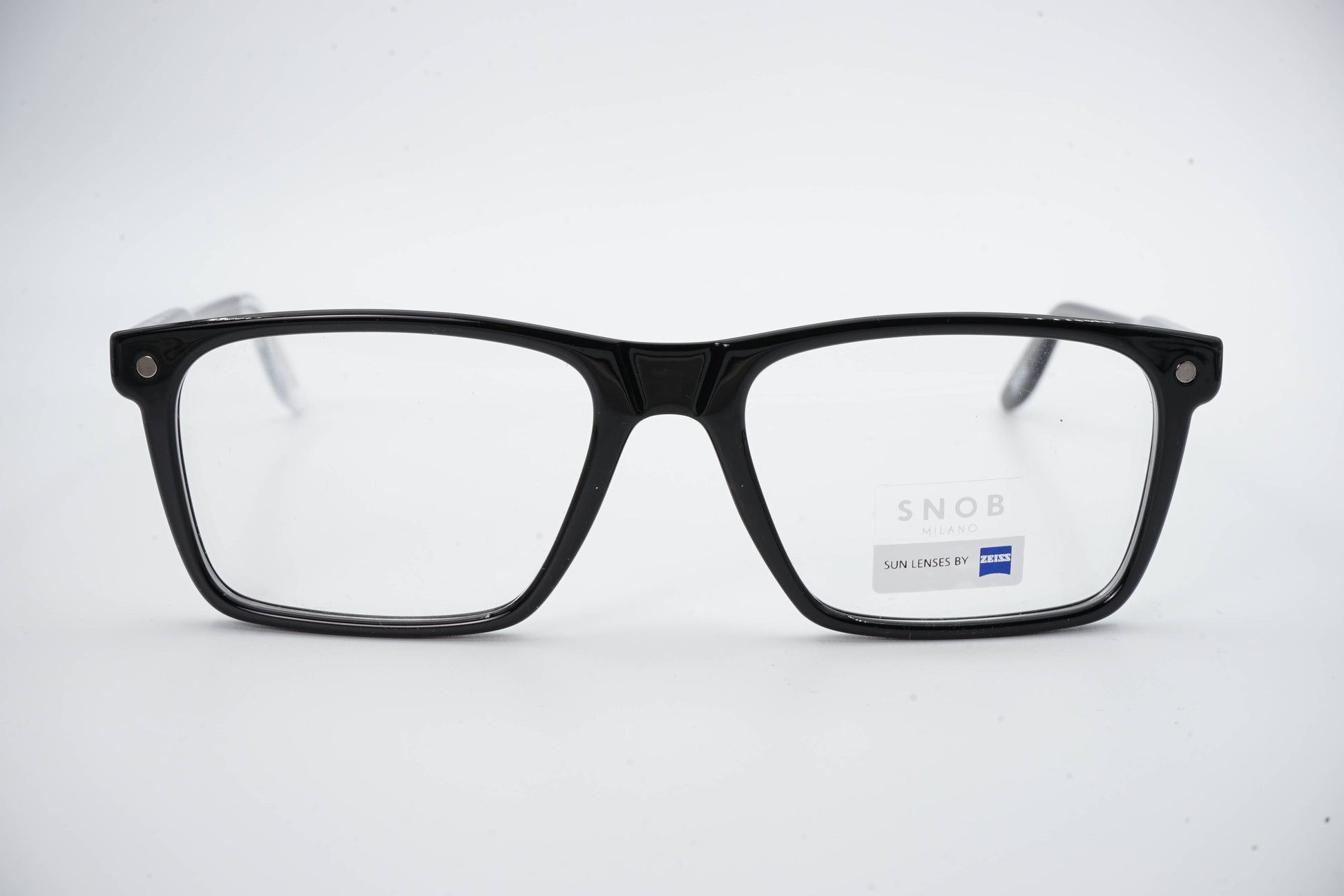 The Snob Milano Max Metal SNV93CM C03 features a solid and contemporary rectangular design, with a glossy black acetate frame that conveys robustness, sobriety, and a distinctly professional look. The well-defined front ensures a balanced visual presence, suitable for both formal settings and intensive daily wear.