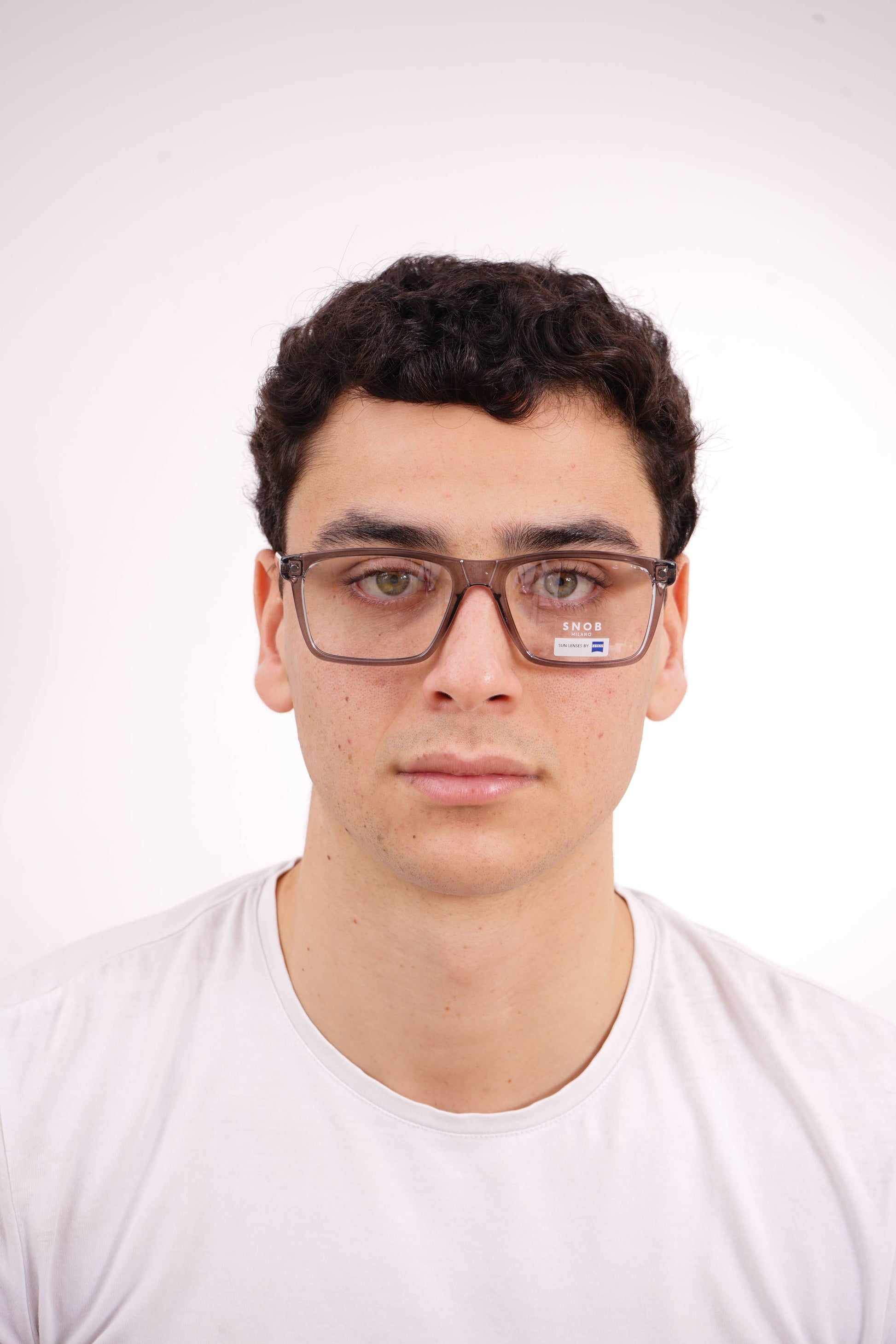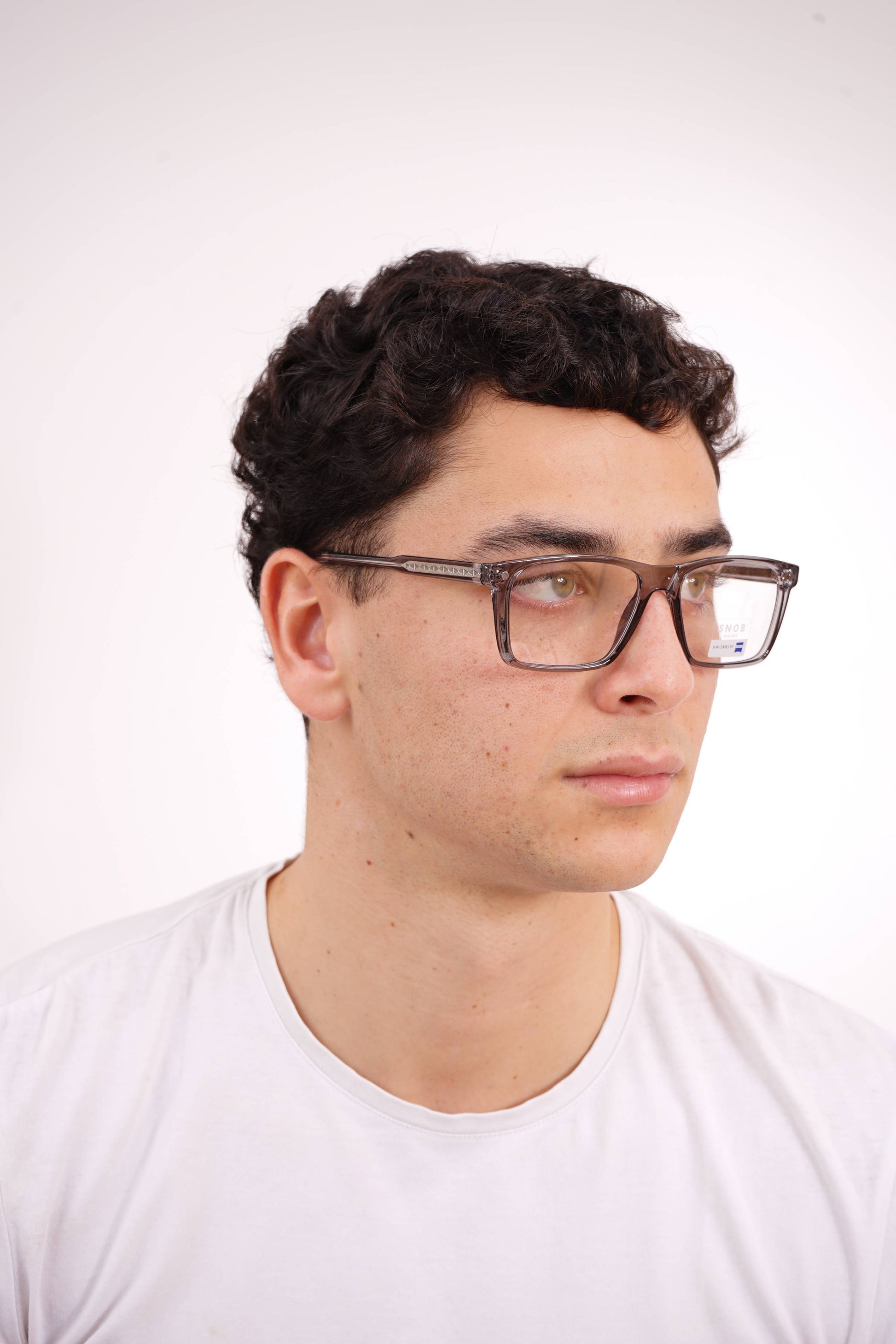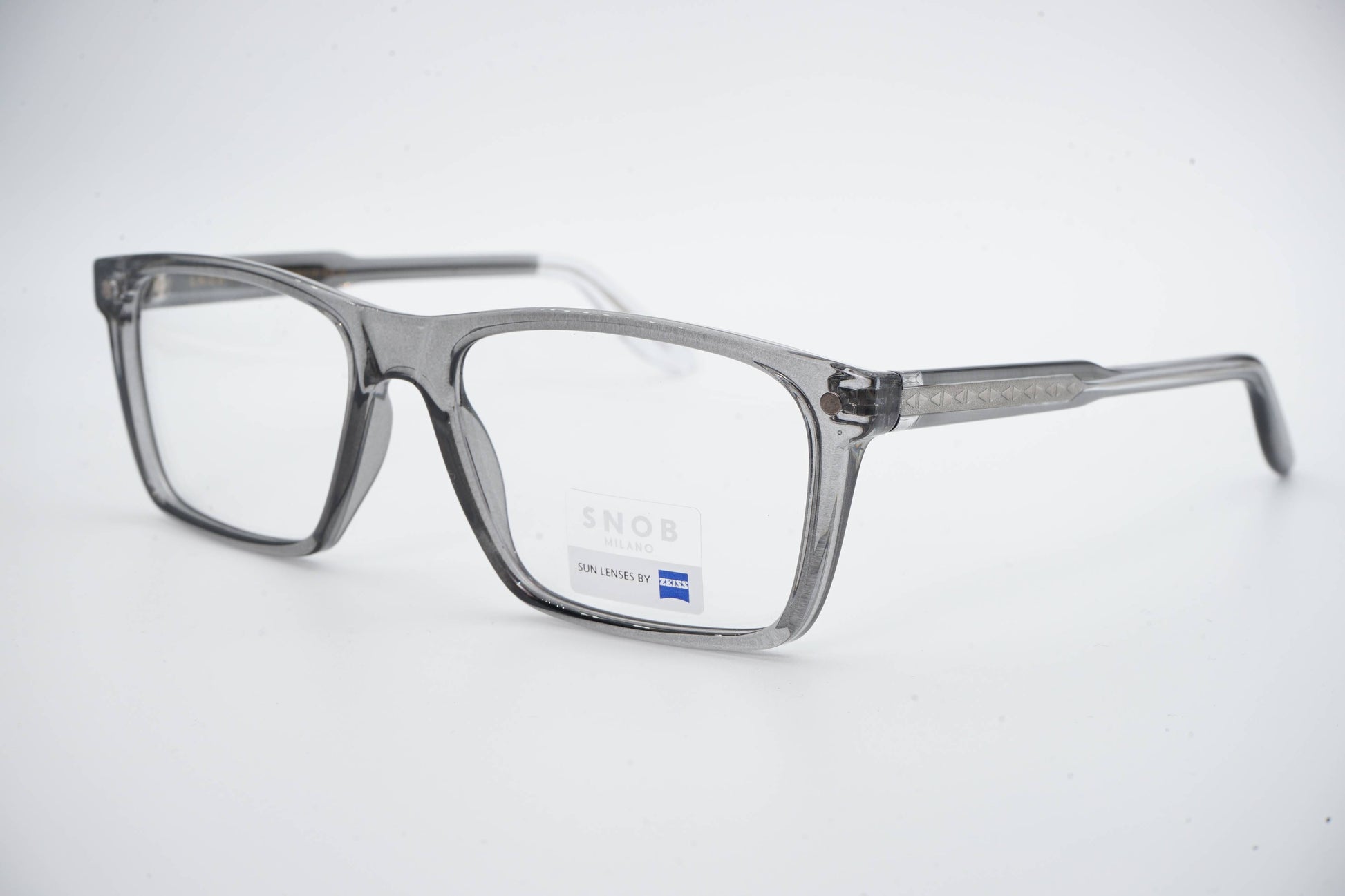 The Snob Milano Max Metal SNV93CM C04 combines a translucent gray acetate front with an integrated metal frame, creating a technical, modern, and well-defined look. The rectangular shape ensures a solid presence on the face, ideal for those seeking a contemporary style with a clear and professional feel.