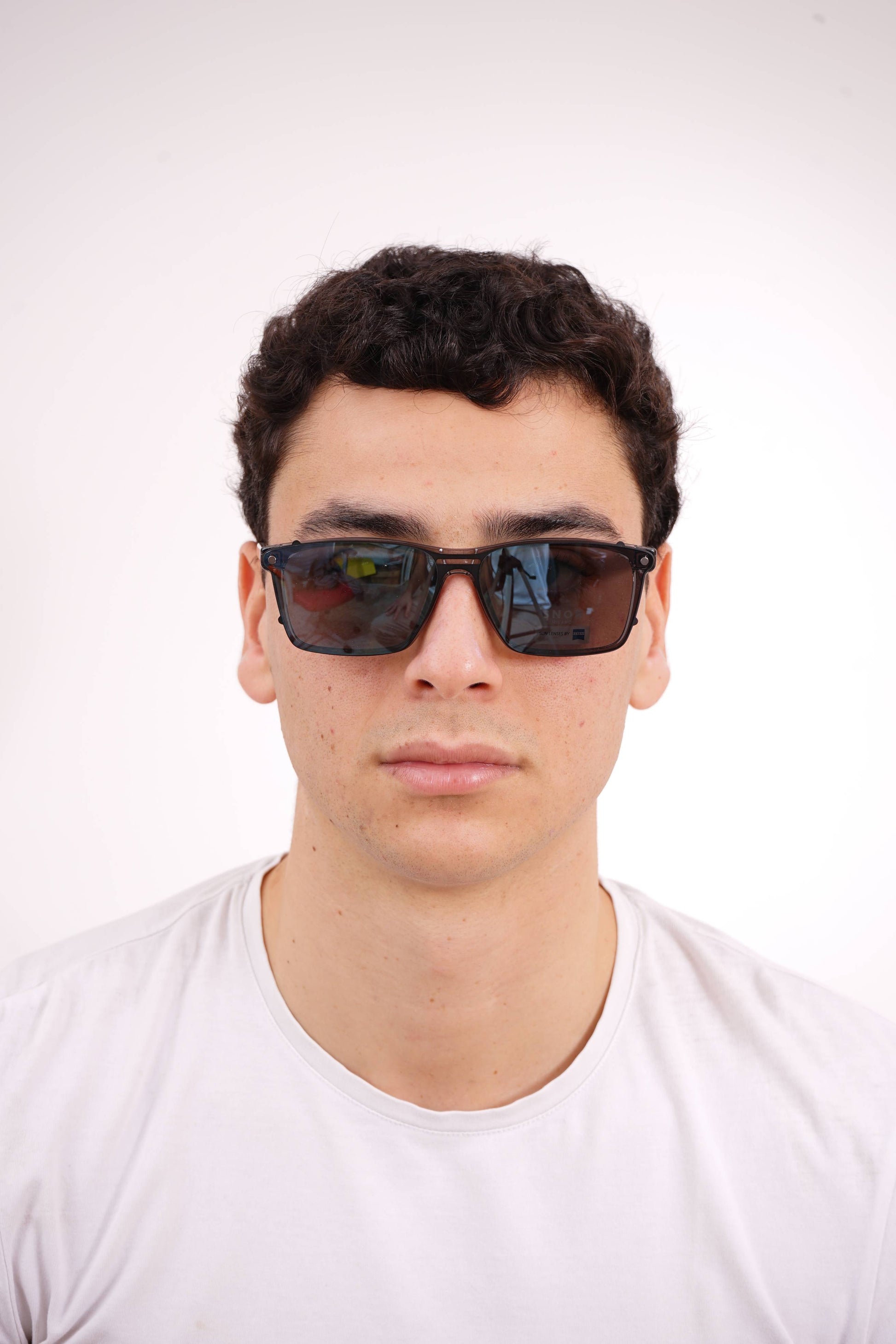 The magnetic clip-on includes Zeiss blue-tinted sun lenses, providing effective sun protection and high visual clarity. The transition from optical glasses to sunglasses is immediate, practical, and secure, maintaining perfect alignment with the frame.