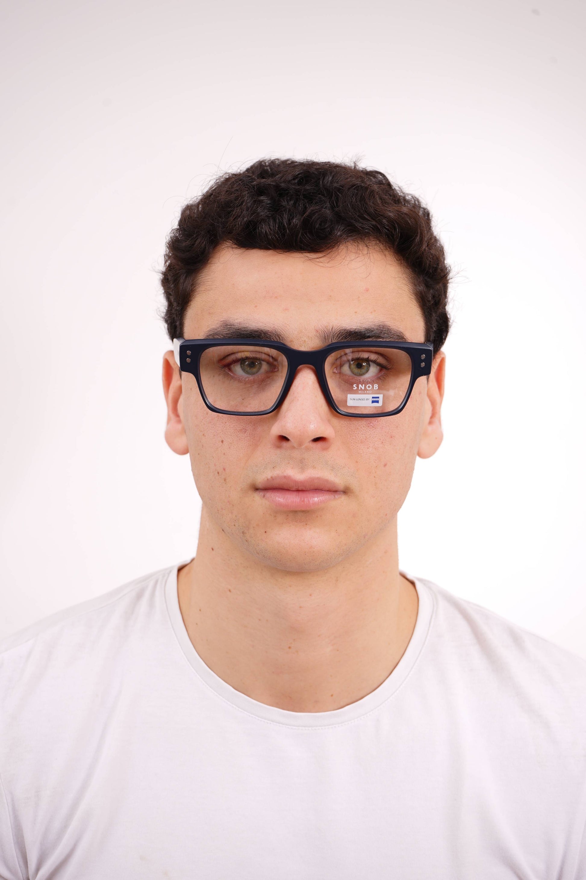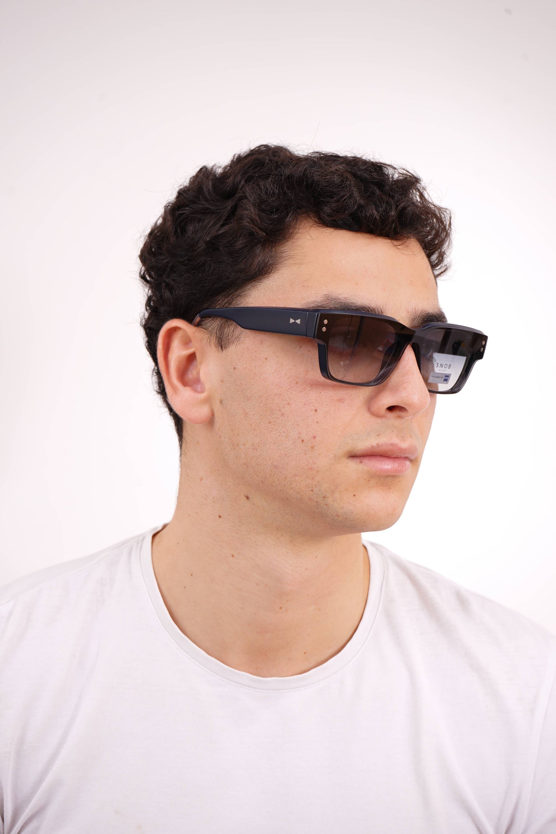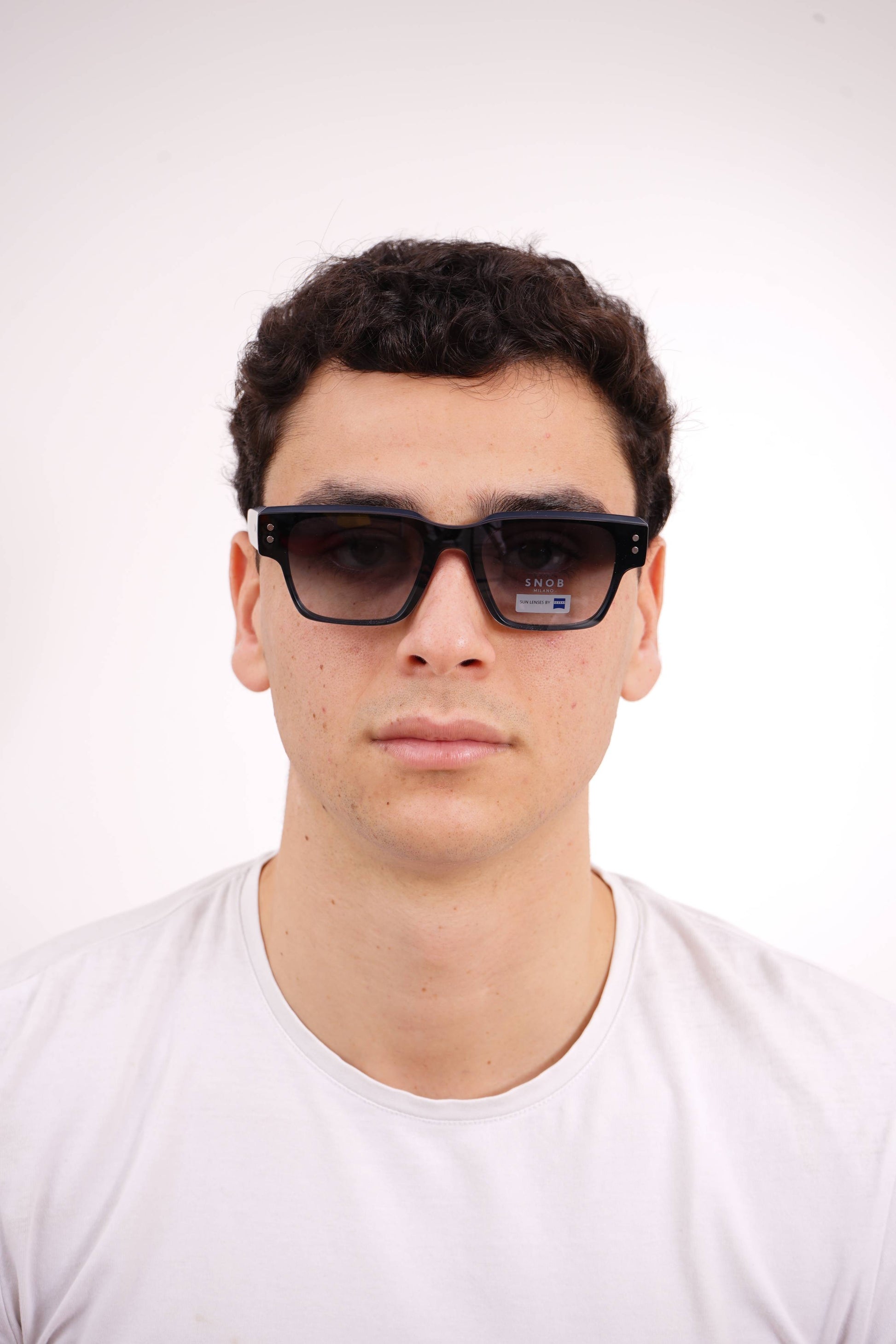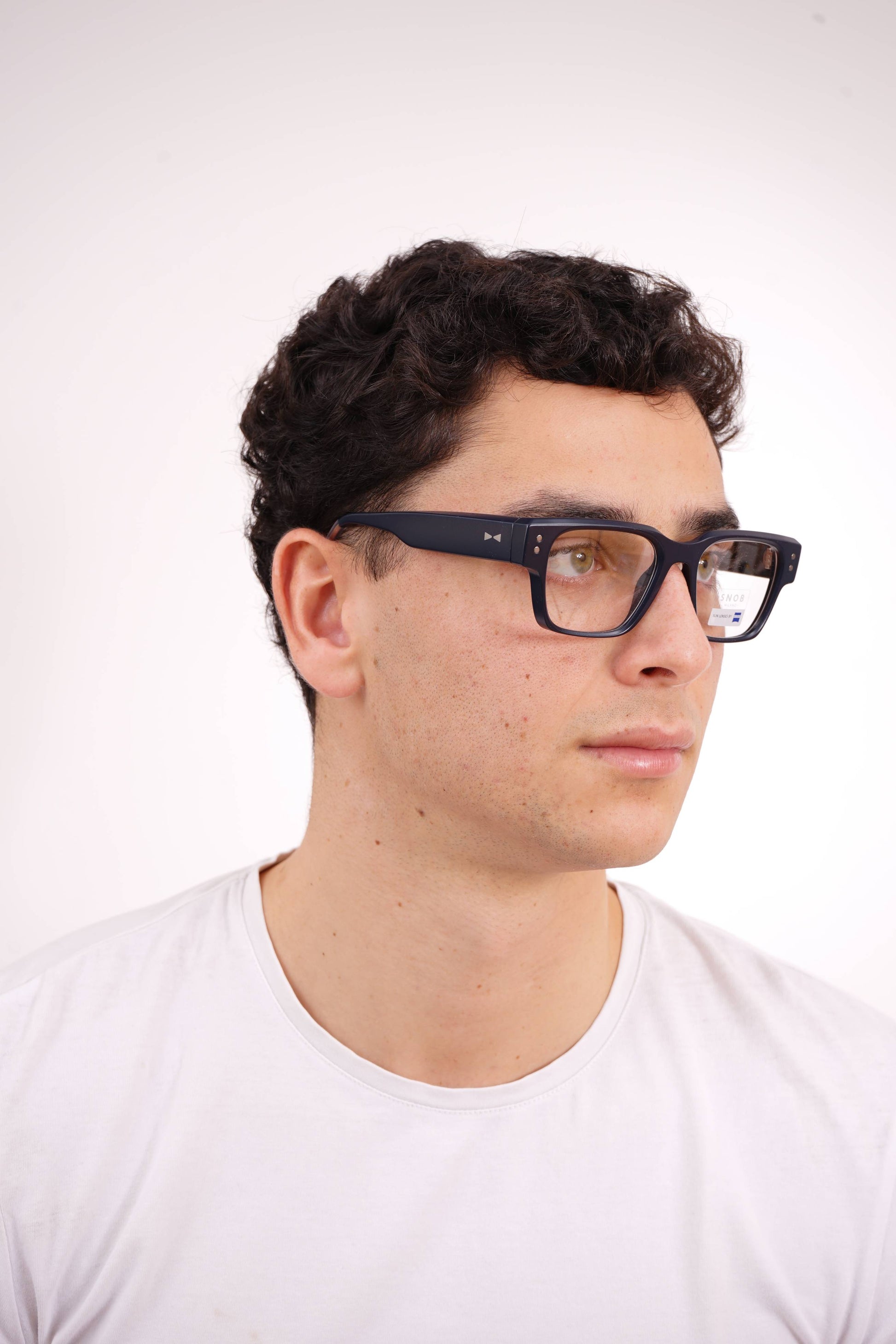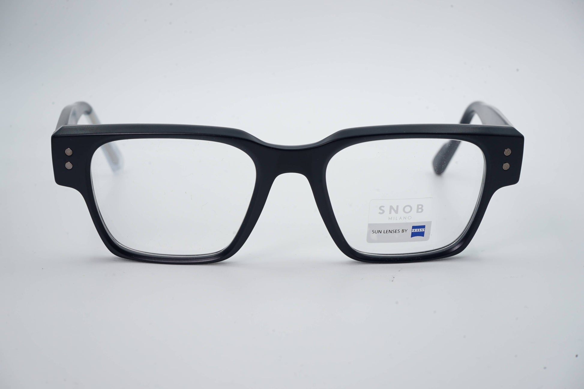 The Snob Milano Odeon SNV217 C03 features a robust and contemporary rectangular design, with a matte black acetate front that conveys solidity, modernity, and a well-defined urban aesthetic. The straight lines and balanced thickness of the frame provide visual presence without compromising comfort for everyday wear.