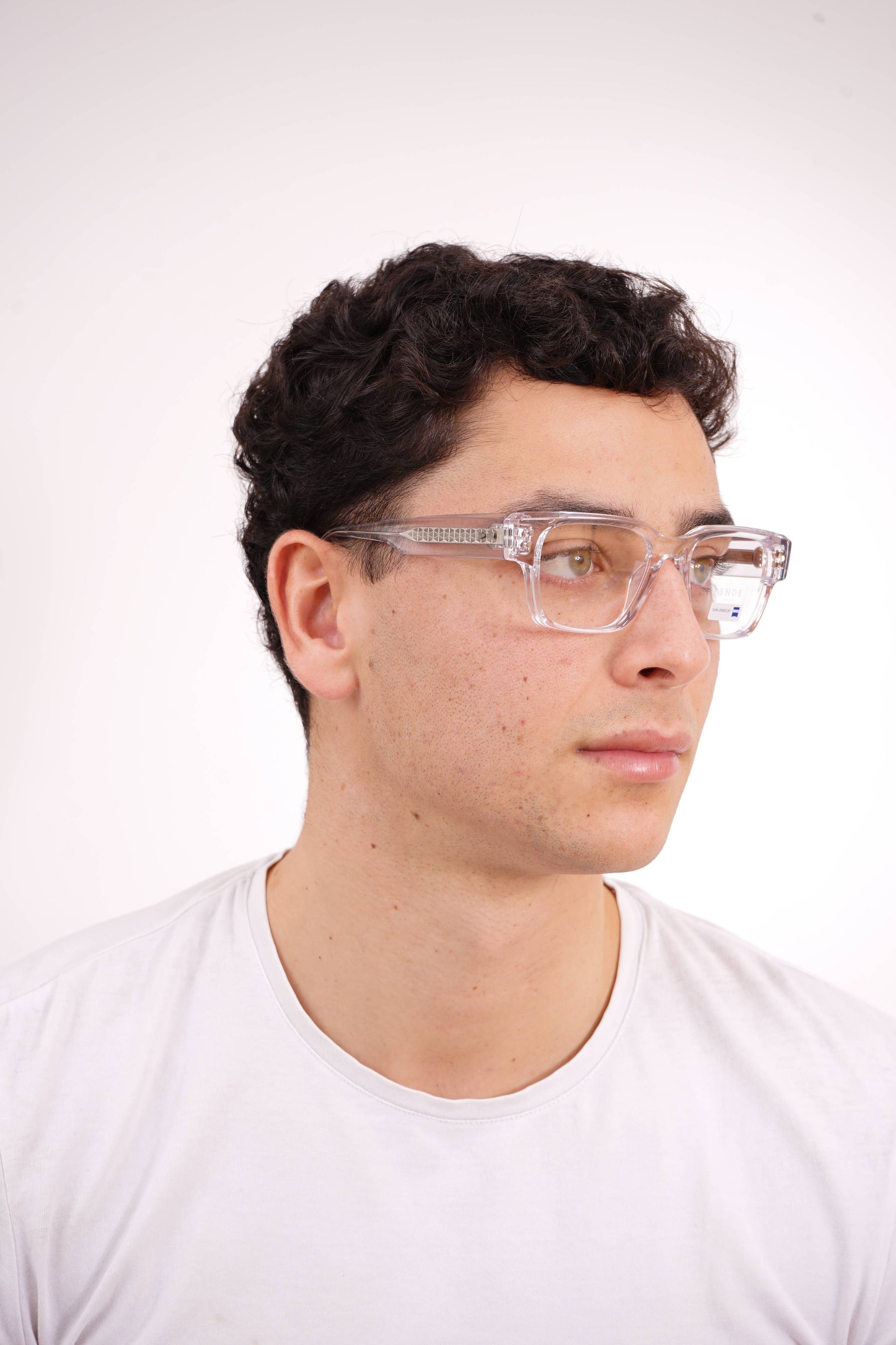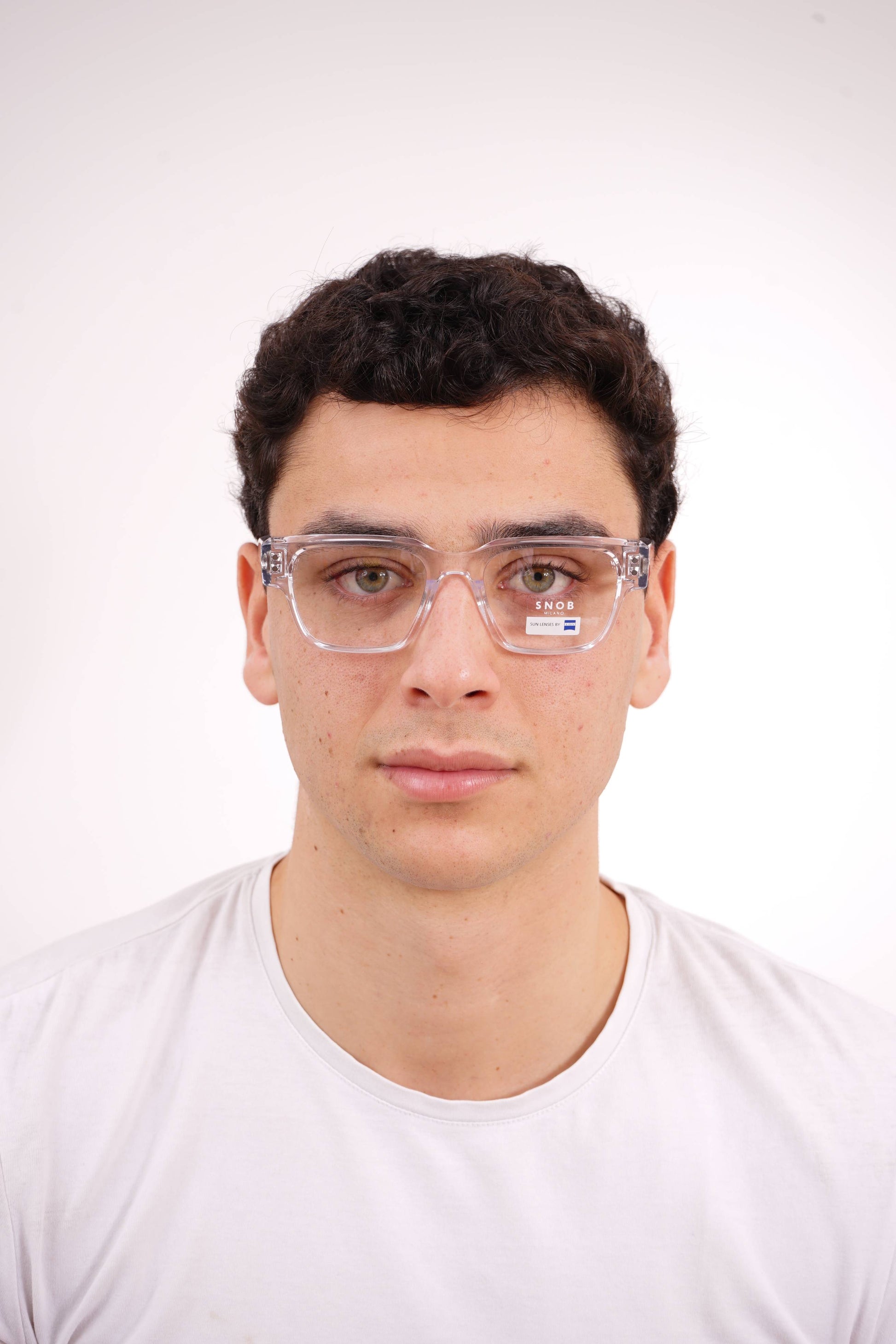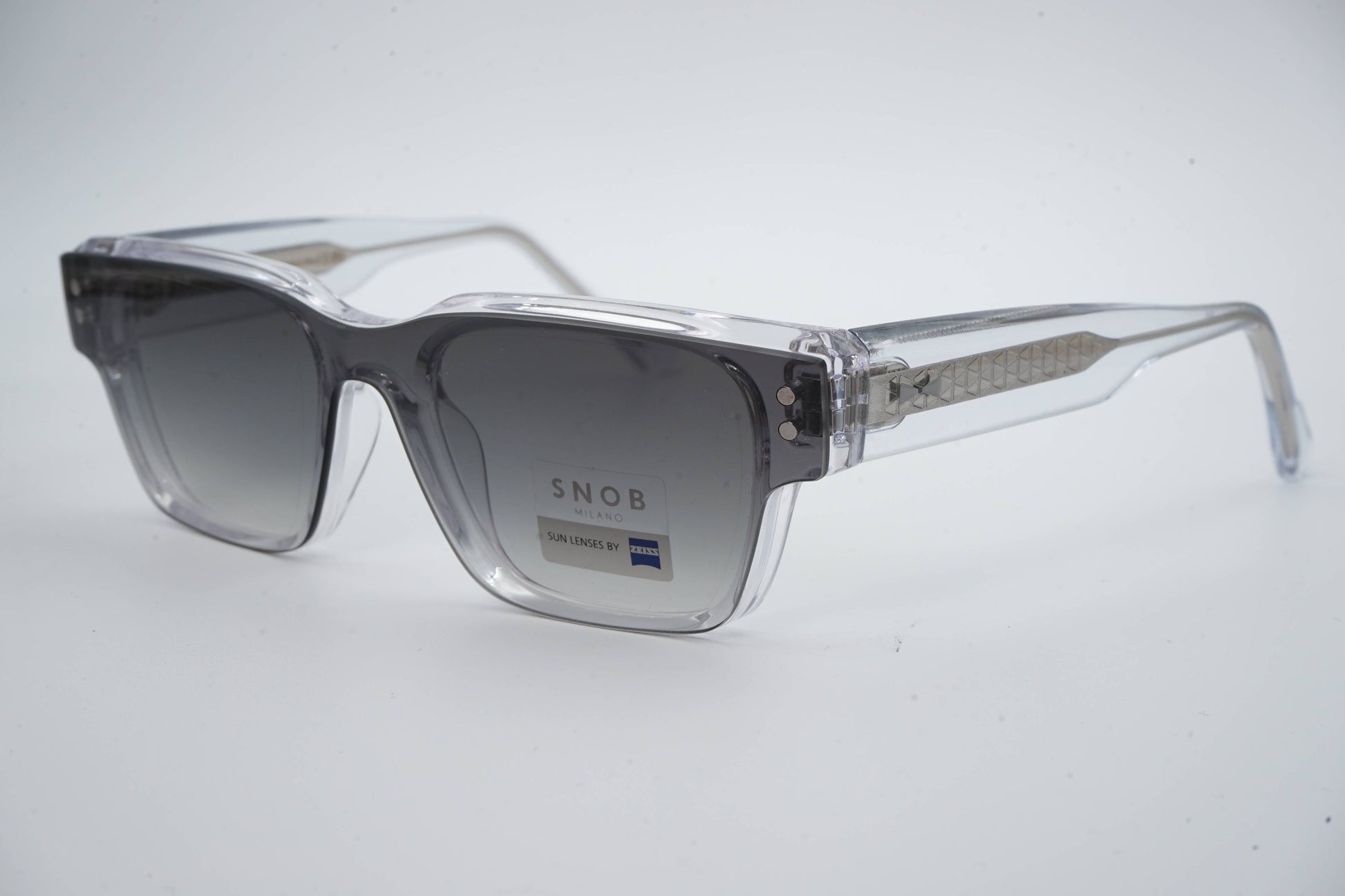 The Snob Milano ODEON SNV217 C04 stands out for its contemporary geometric design, with a transparent crystal acetate front that conveys visual lightness, modernity, and aesthetic precision. The straight, well-defined lines give it an urban and sophisticated character, while maintaining comfort and stability for everyday use.