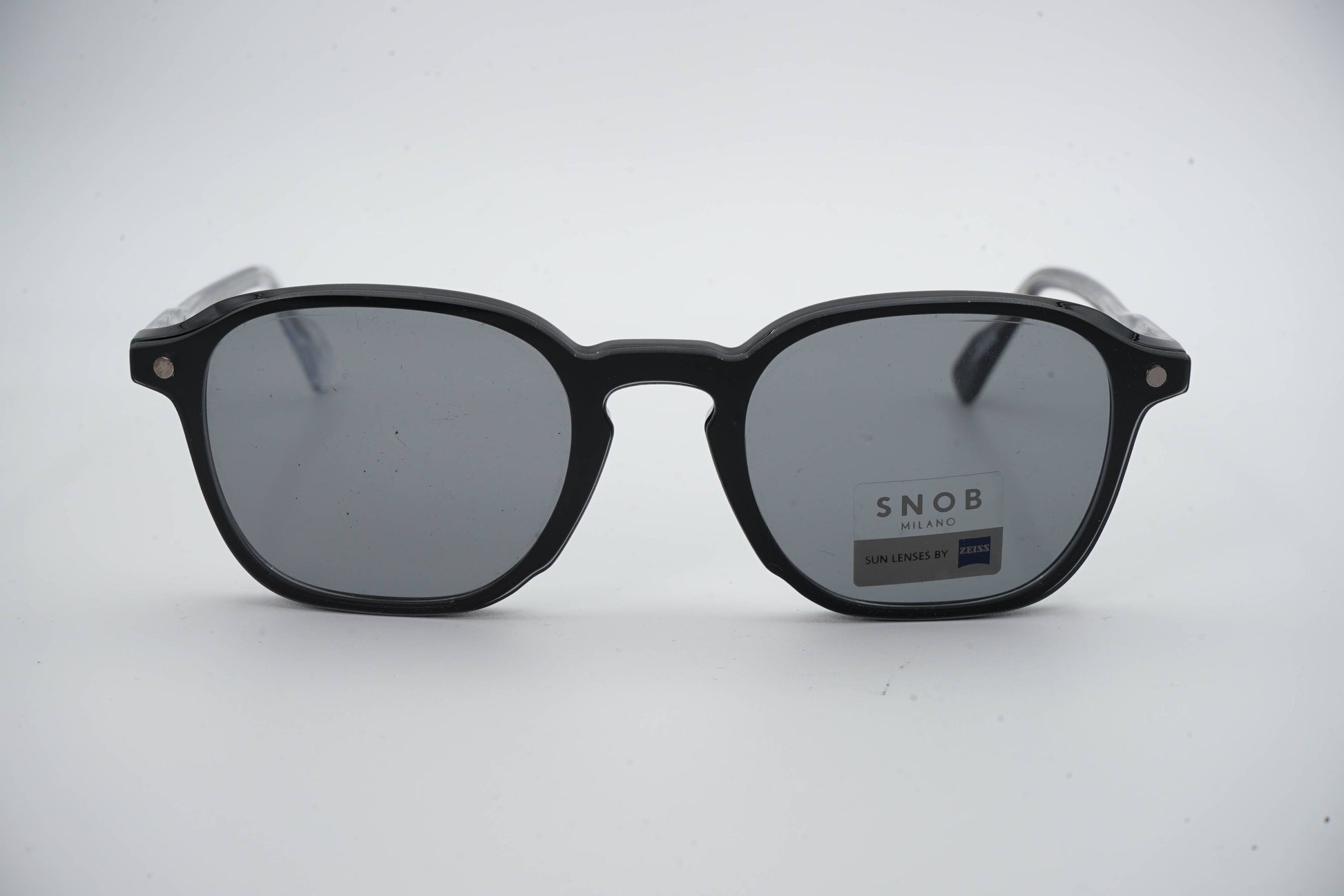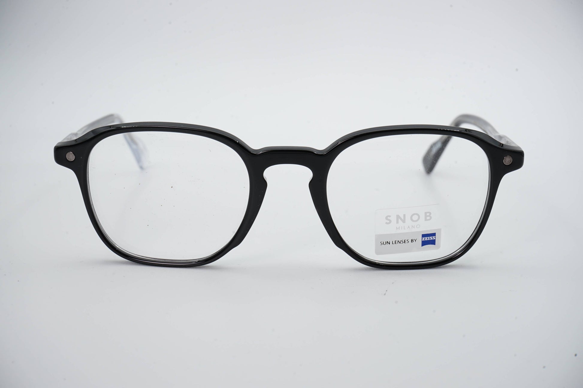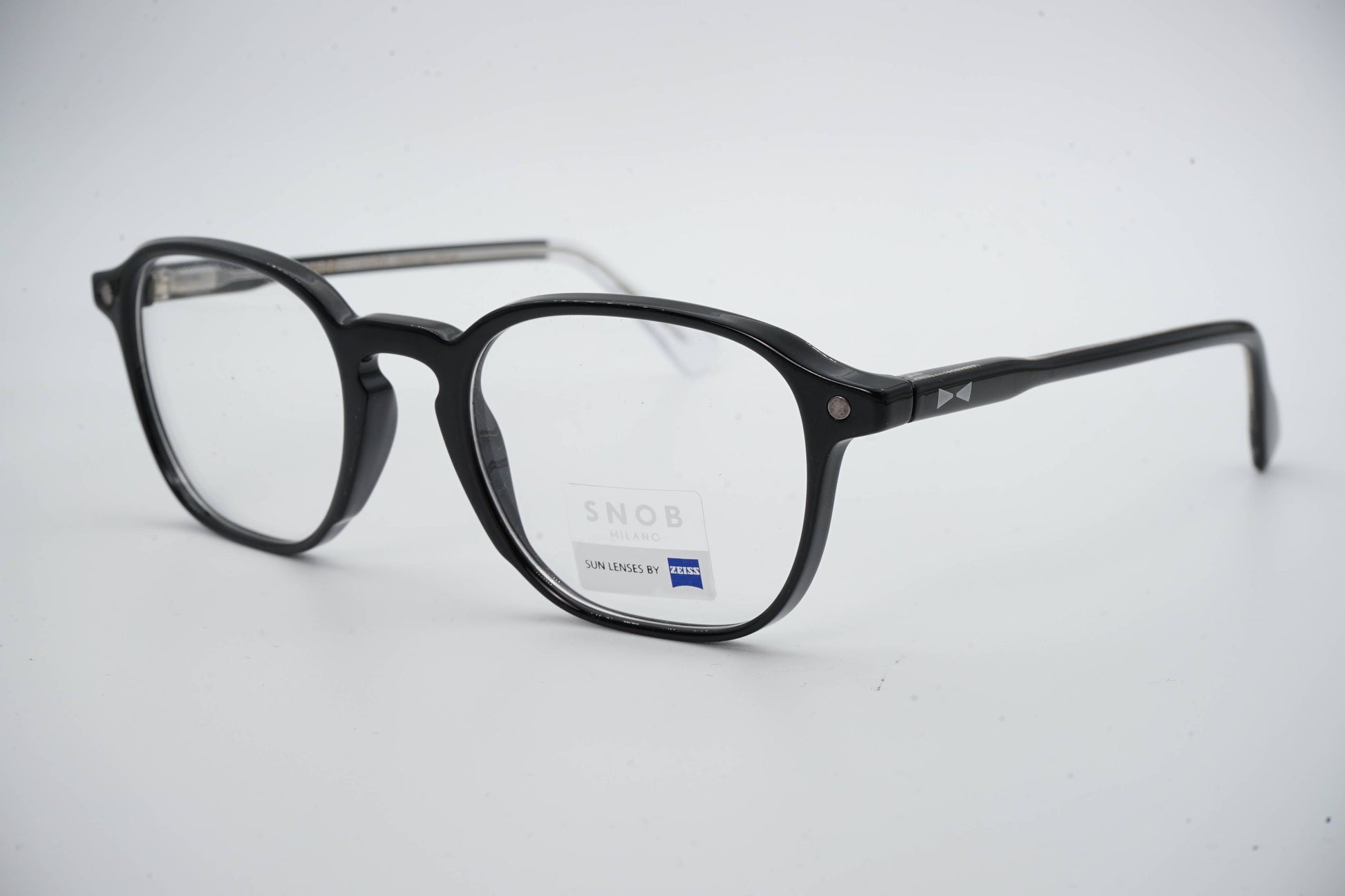 The Snob Milano Pagoda SNV243 C01 features a matte black acetate frame with discreet lines and a balanced profile. The design stands out for its lightweight and durable structure, ideal for everyday use. The magnetic clip-on sun system quickly converts the optical frame into sunglasses, offering immediate protection and high visual precision thanks to Zeiss lenses. A functional, solid model aimed at users seeking efficiency, versatility, and clean aesthetics.