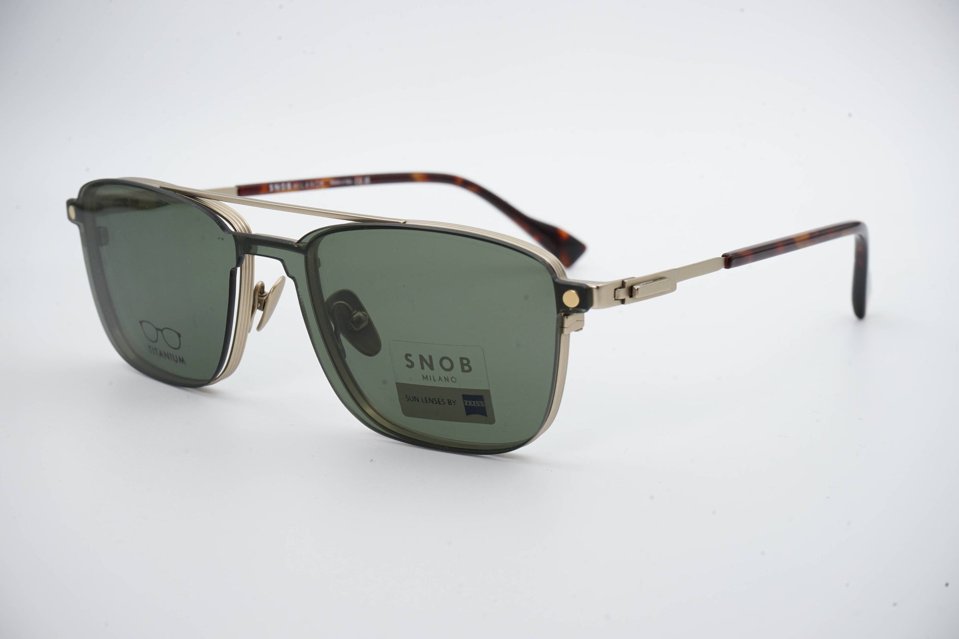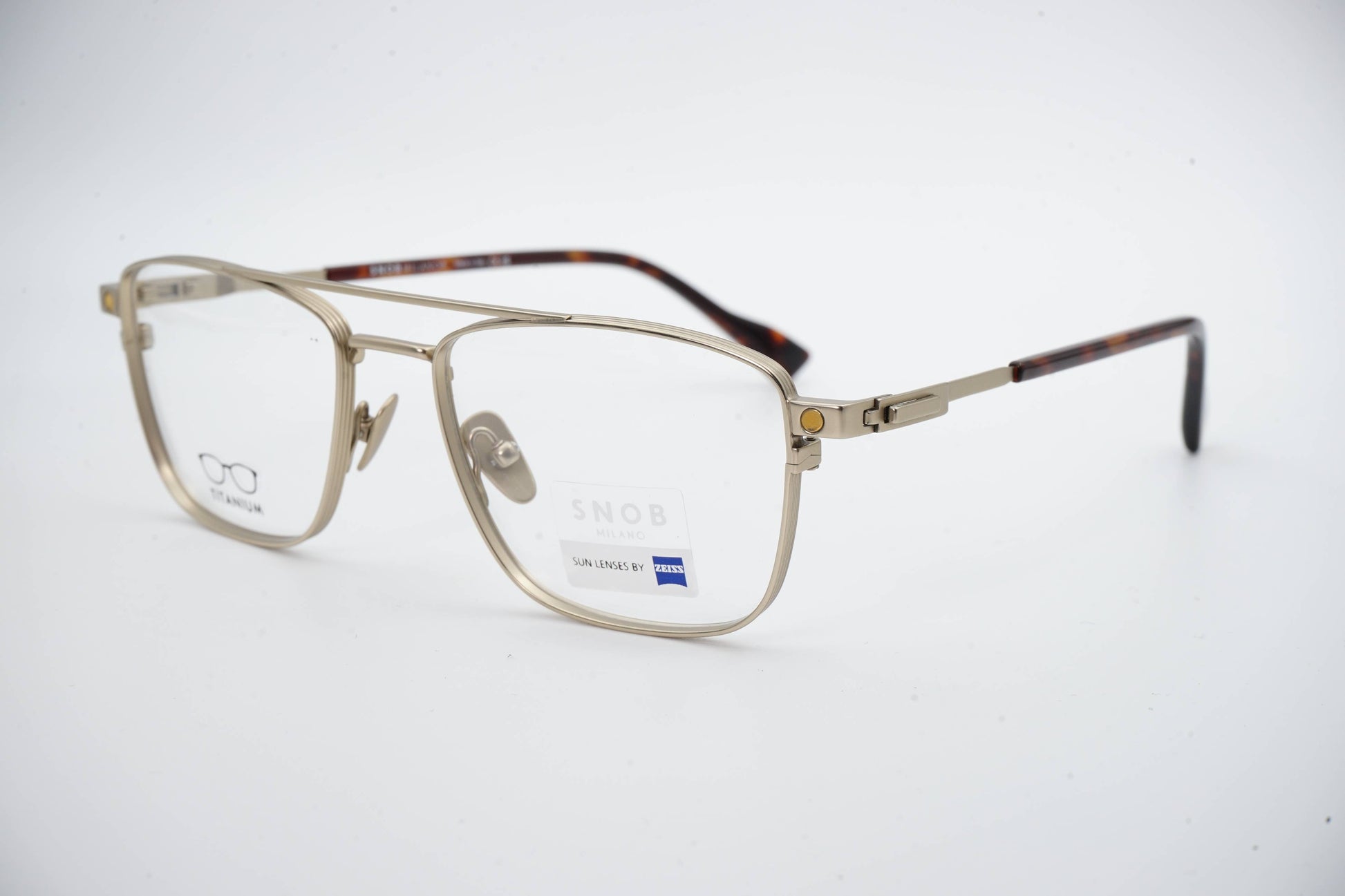 The Snob Milano Ricky SNV223T C02 features a contemporary rectangular design with a lightweight, durable, and technically superior satin gold titanium frame . The metal front ensures dimensional stability and extended comfort, while the tortoise shell temples add visual contrast and understated sophistication.
