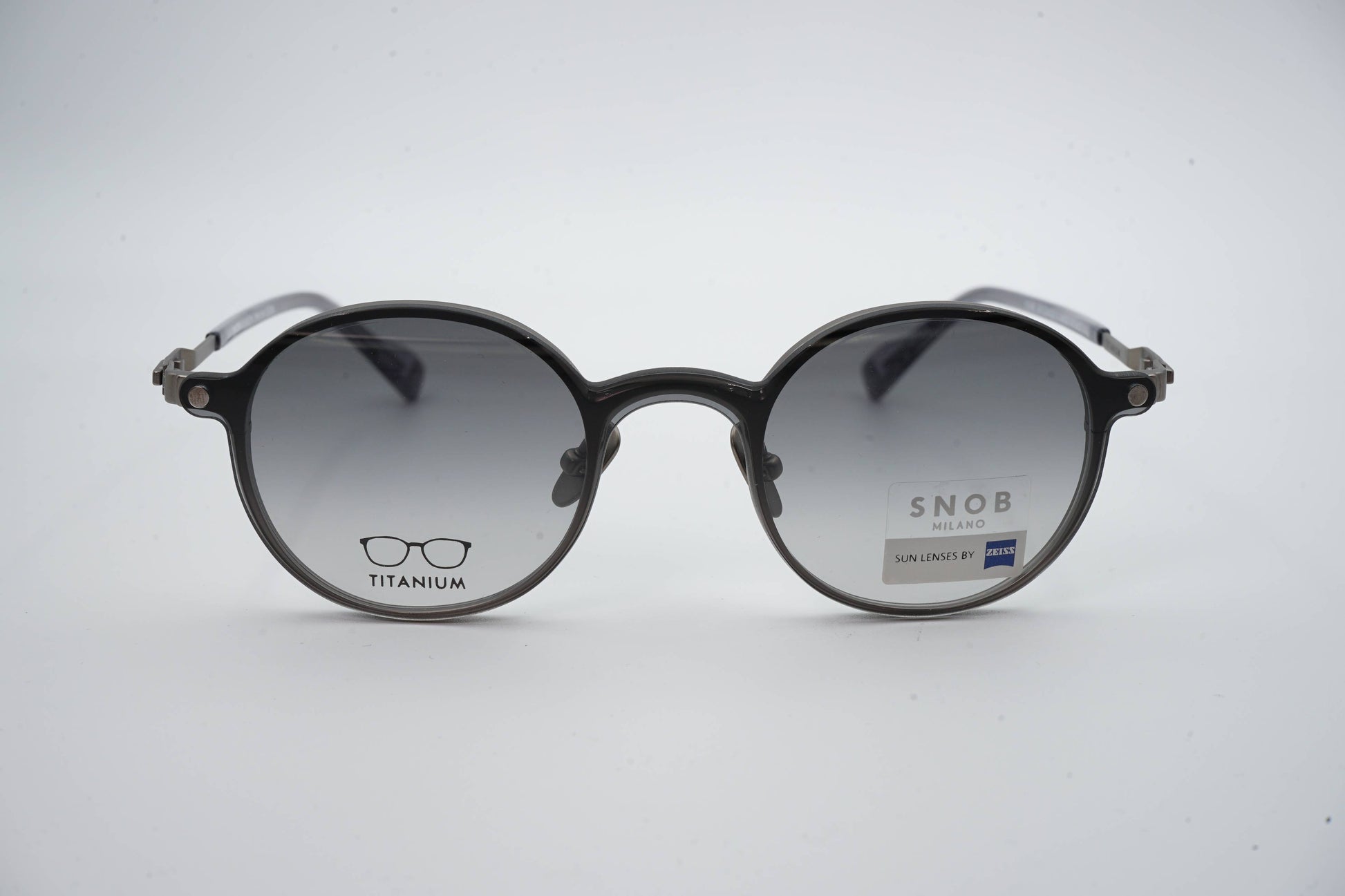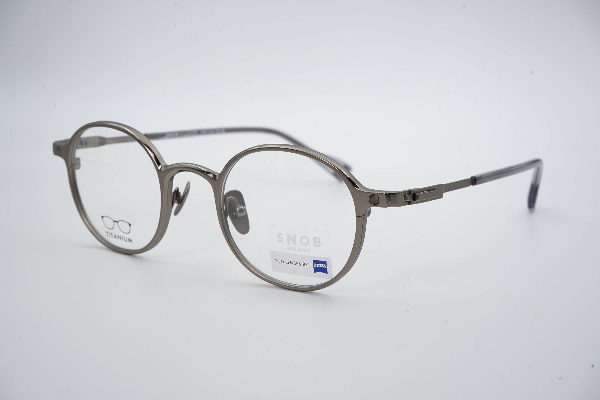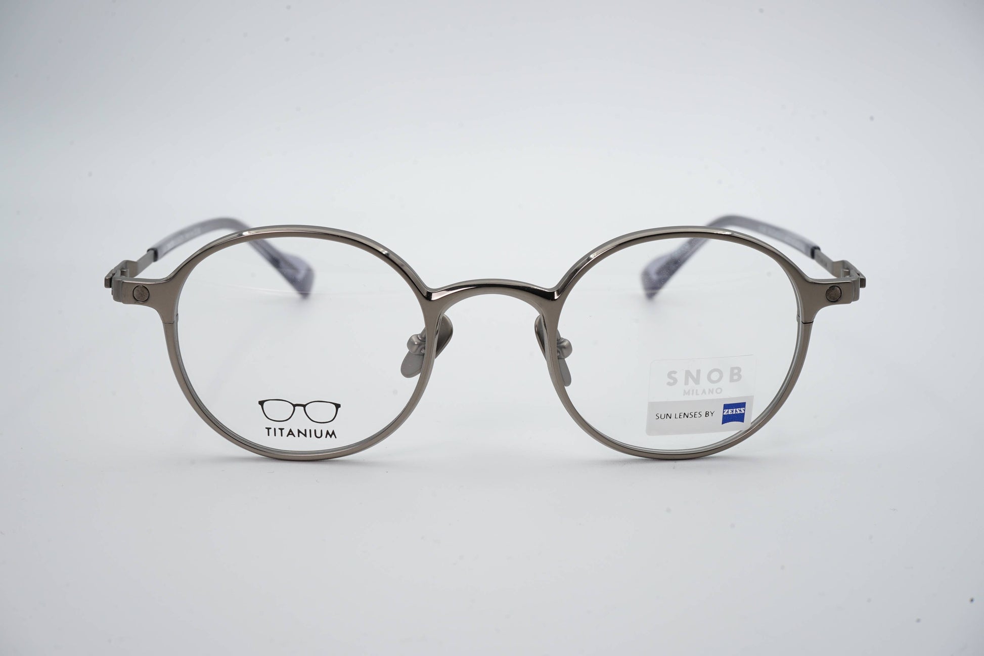 The Snob Milano Tommi SNV234T C01 features a contemporary round design with a graphite-toned metallic front that conveys sobriety, aesthetic precision, and a well-defined technical character. The balanced shape ensures versatility for everyday use, while the titanium construction guarantees extreme lightness, high durability, and consistent comfort throughout the day.
