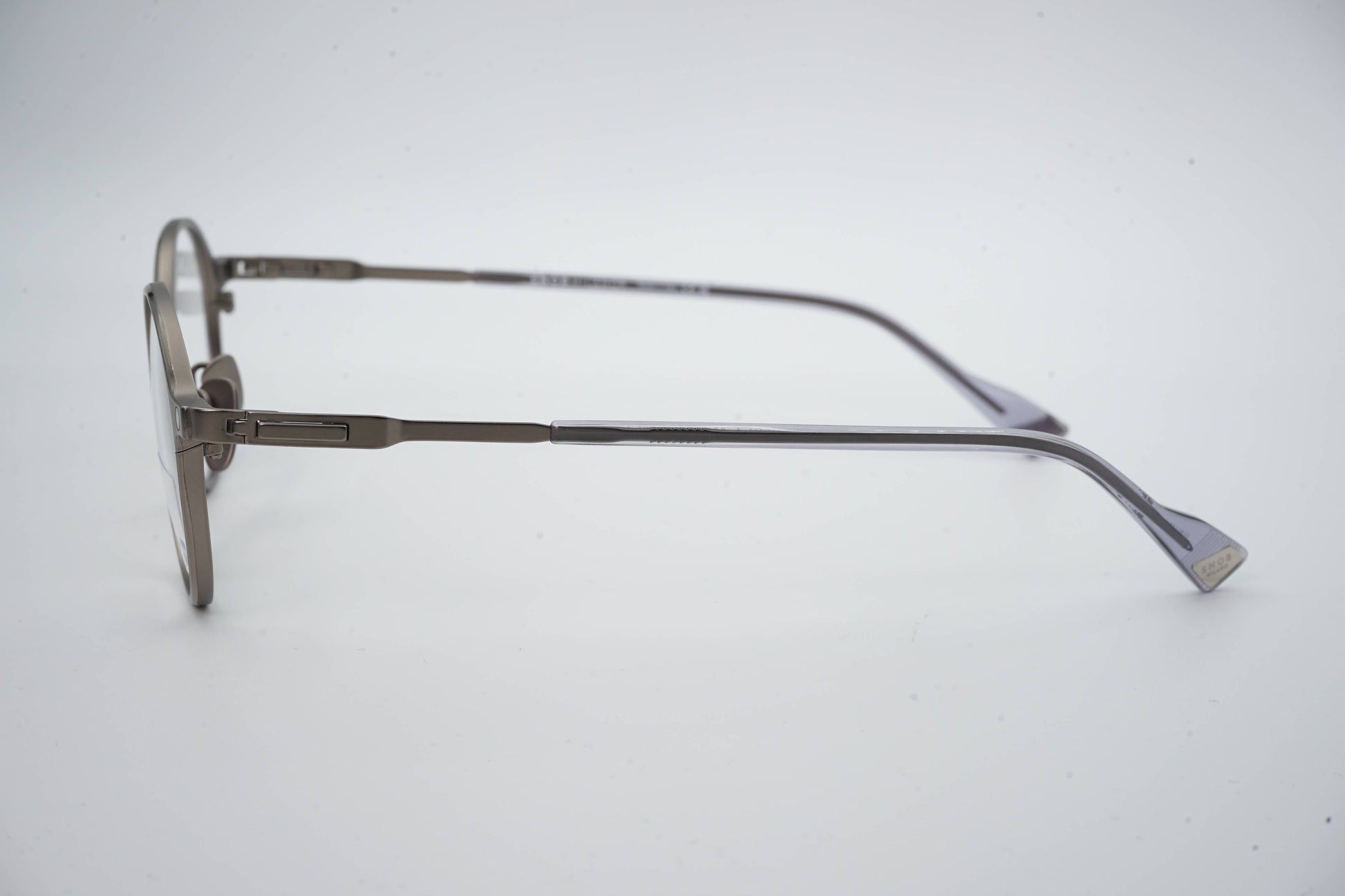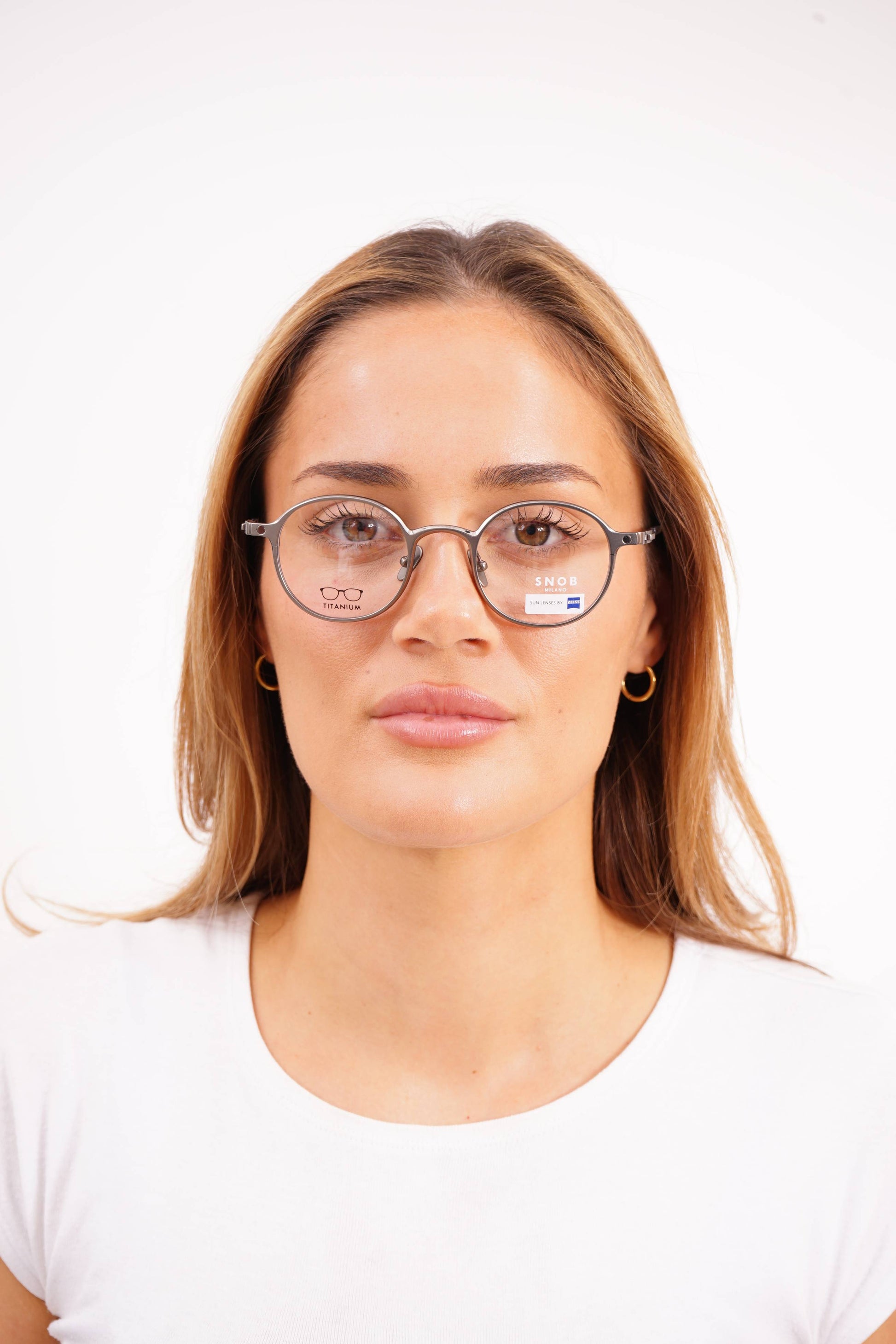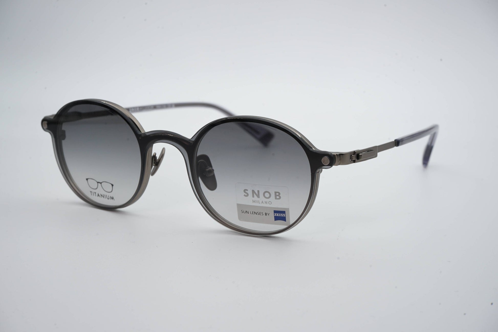 The Snob Milano Tommi SNV234T C01 features a contemporary round design with a graphite-toned metallic front that conveys sobriety, aesthetic precision, and a well-defined technical character. The balanced shape ensures versatility for everyday use, while the titanium construction guarantees extreme lightness, high durability, and consistent comfort throughout the day.