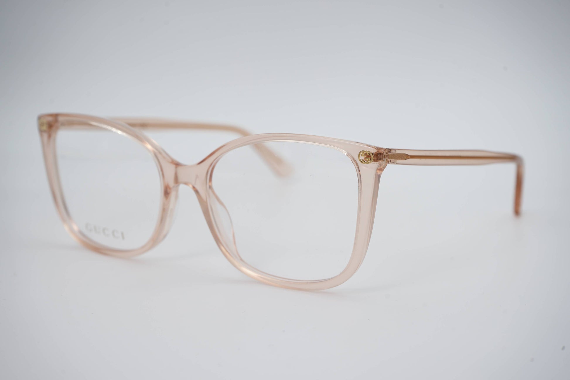 Os óculos Gucci GG 0026O 013 são ideais para mulheres que procuram um acessório de luxo com design moderno e elegante. Com uma estrutura cat-eye e acabamento em acetato rosa salmão transparente, este modelo combina sofisticação e estilo contemporâneo.