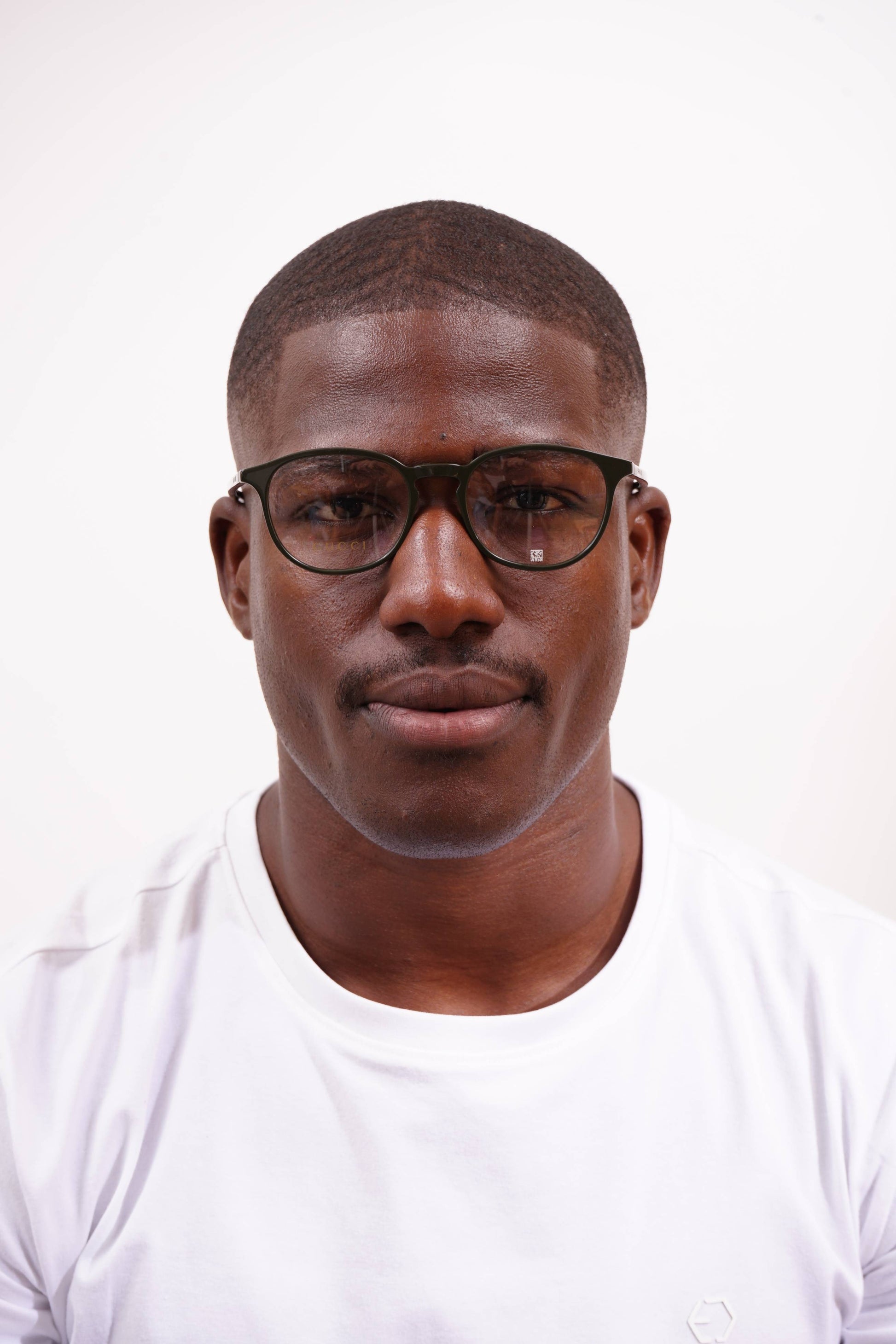 Com armação em acetato verde militar brilhante, apresentam um formato panthos com aro completo, que combina sofisticado clássico com presença moderna.