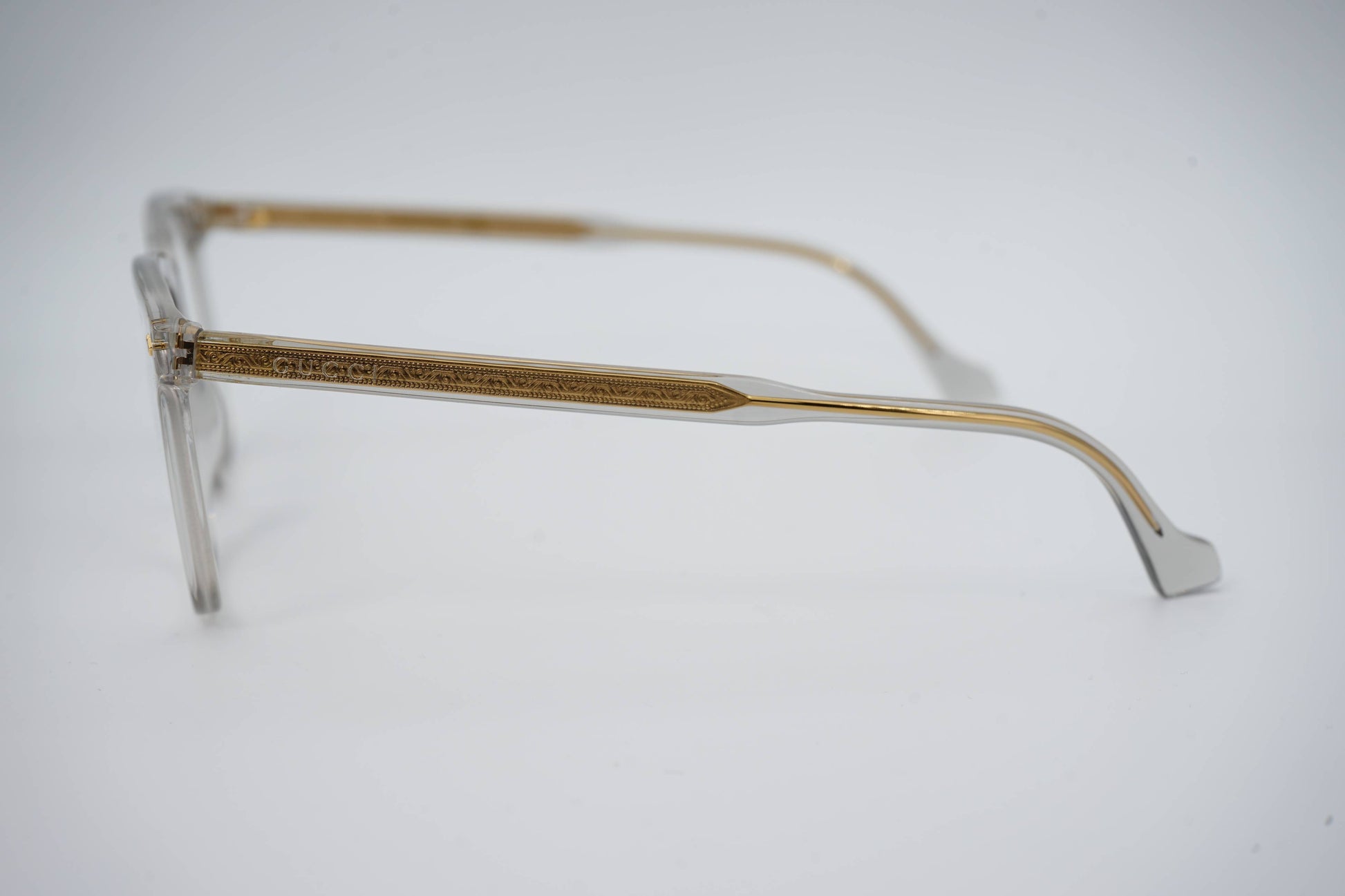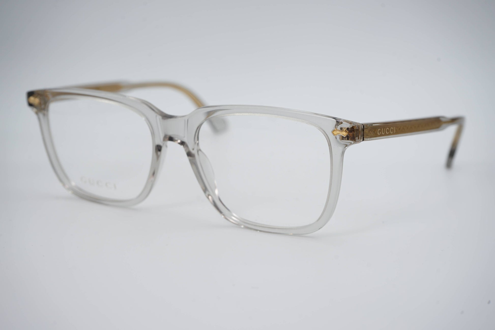 Os óculos Gucci GG 0737O 016 combinam estilo e qualidade numa peça única. Com uma armação retangular em acetato cinza claro e hastes metálicas douradas, oferecem um visual moderno e sofisticado. Ideais para homens que apreciam design distinto e conforto. As dimensões da armação são 56 mm de largura das lentes, 18 mm de ponte e 150 mm de comprimento das hastes.