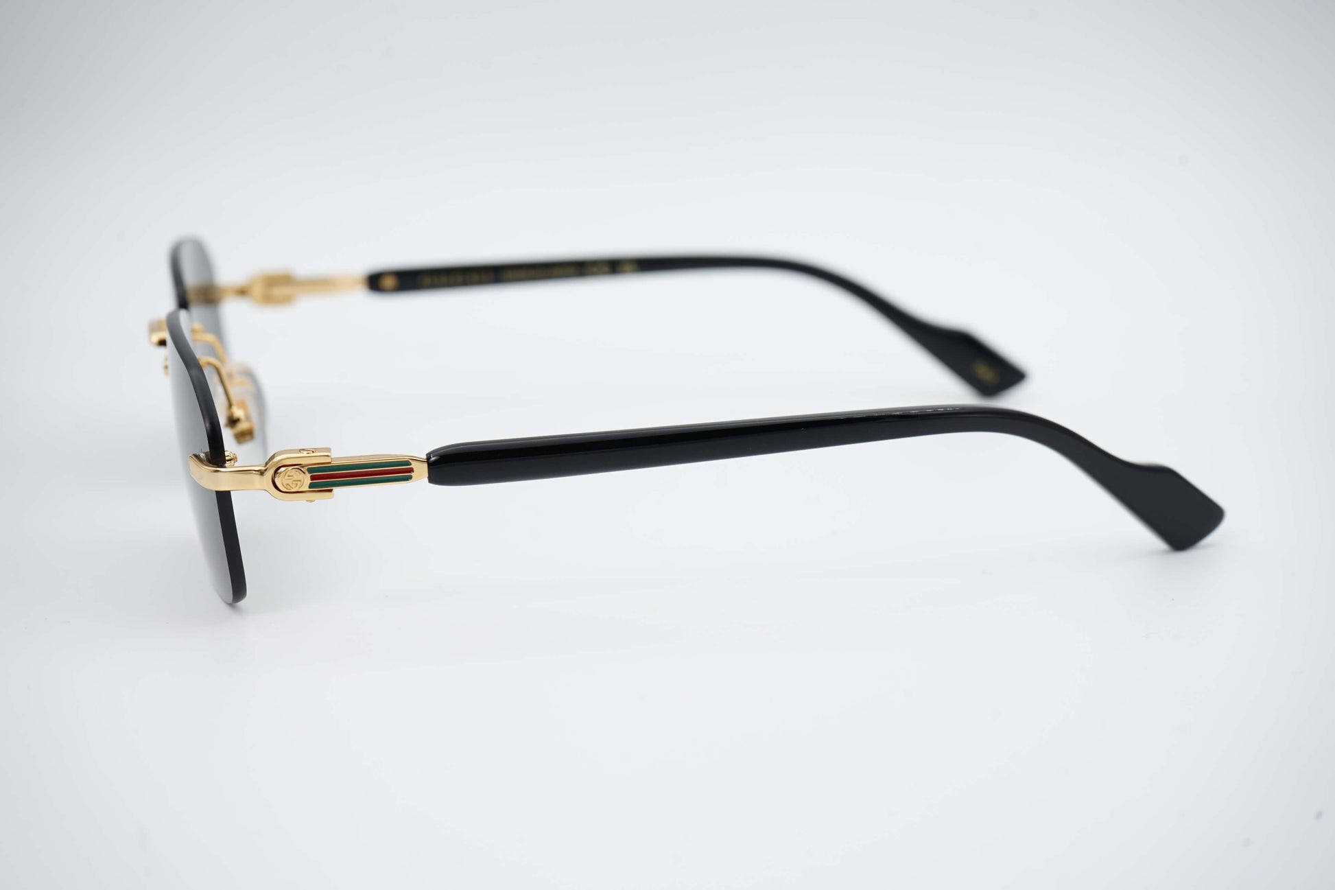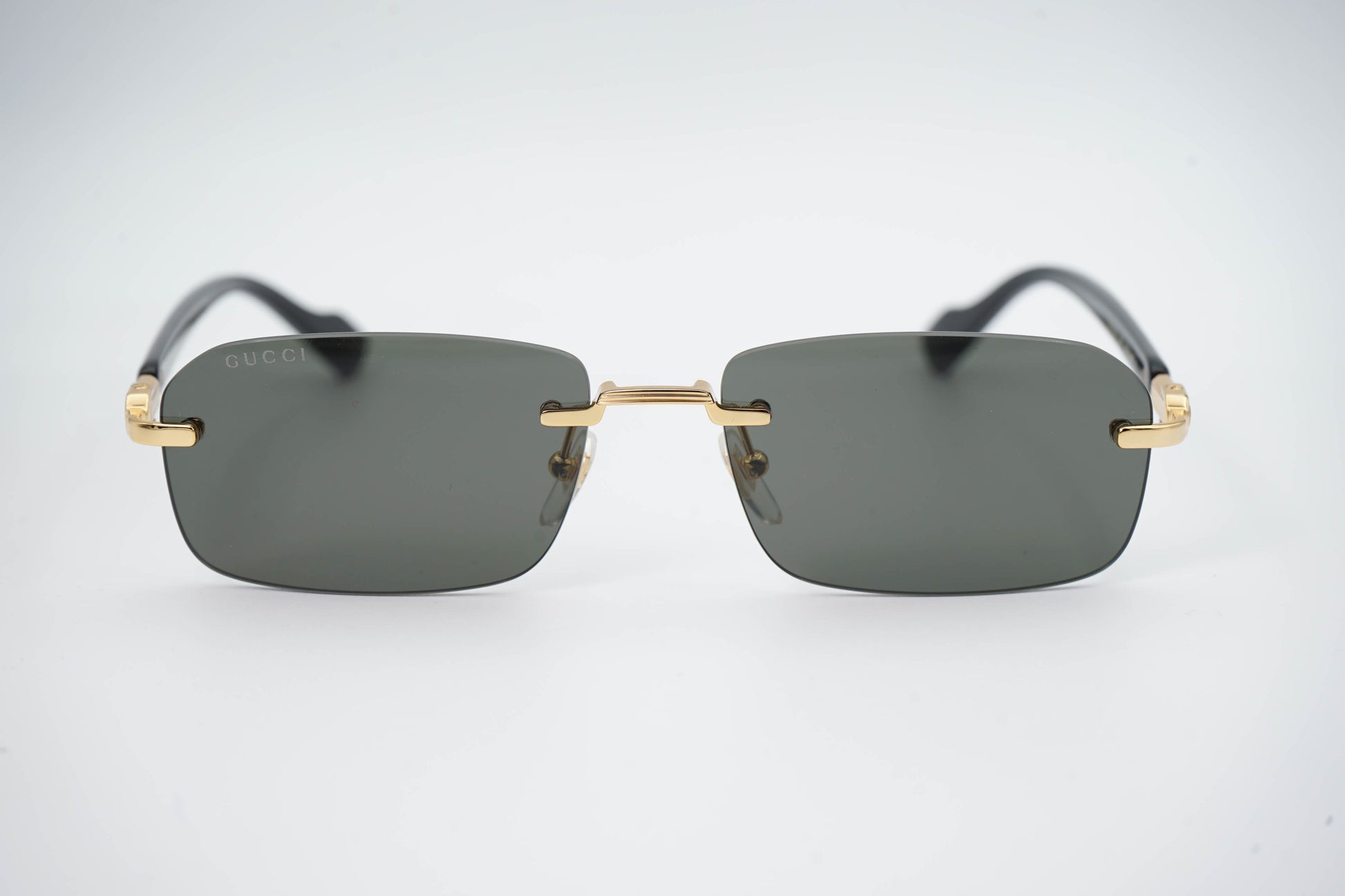Os óculos de sol Gucci GG 1221S 001 apresentam um design retangular sofisticado que combina a elegância da armação preta e dourado com lentes em cinzento, criando um acessório de luxo com estilo intemporal. Este modelo reflete a identidade icónica da Gucci, destacando-se pelo conforto e acabamentos de alta qualidade.
