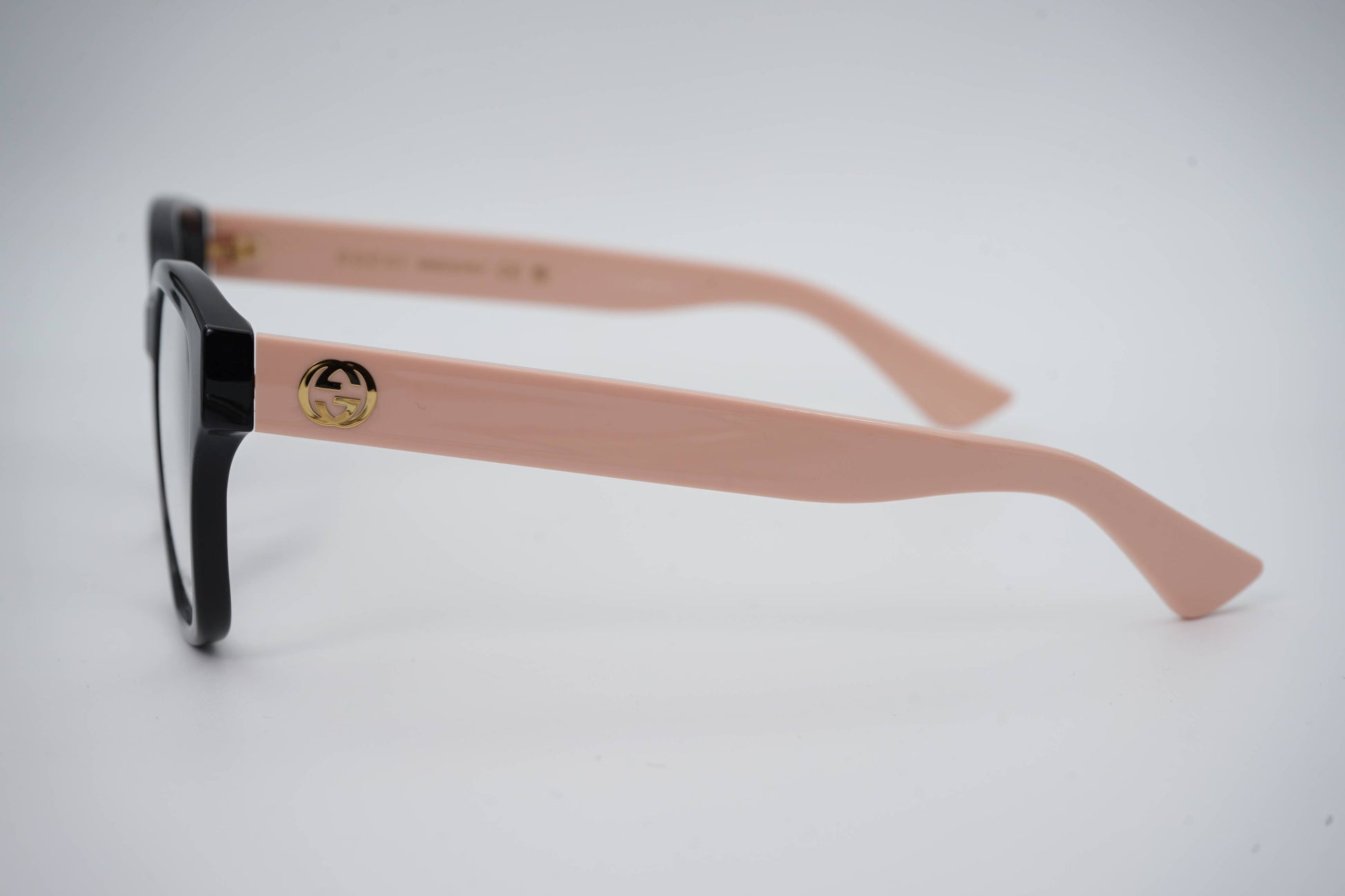 A armação Gucci GG 1340O 007 apresenta um design oversize elegante em acetato preto, com as hastes em rosa claro, ideal para quem procura um visual com presença e sofisticação. Tem formato tipo butterfly / quadrado alongado. As medidas são 54-17-140 mm (lente 54 mm / ponte 17 mm / haste 140 mm). Inclui estojo rígido e pano de limpeza para garantir conservação e boa apresentação da armação.