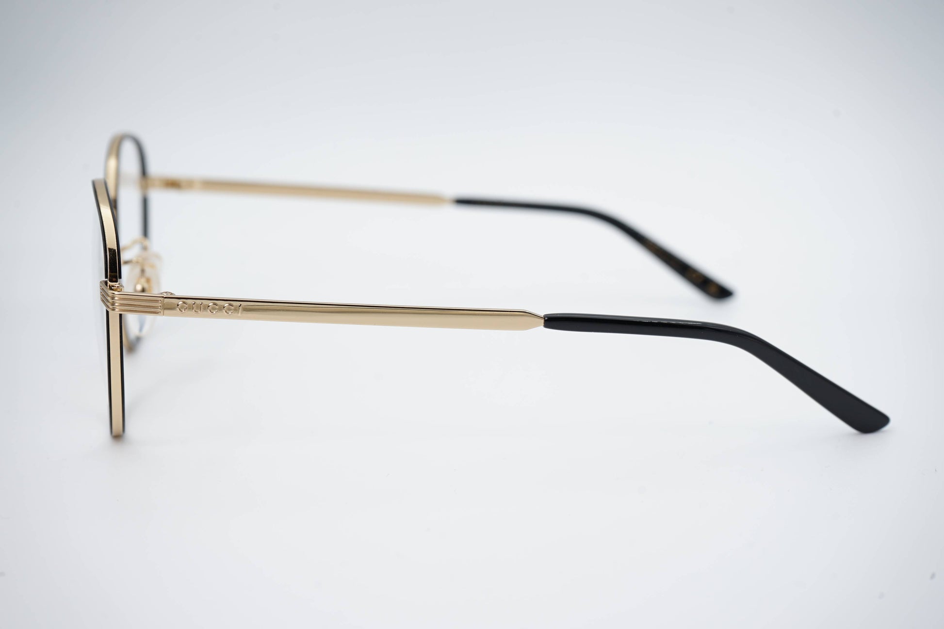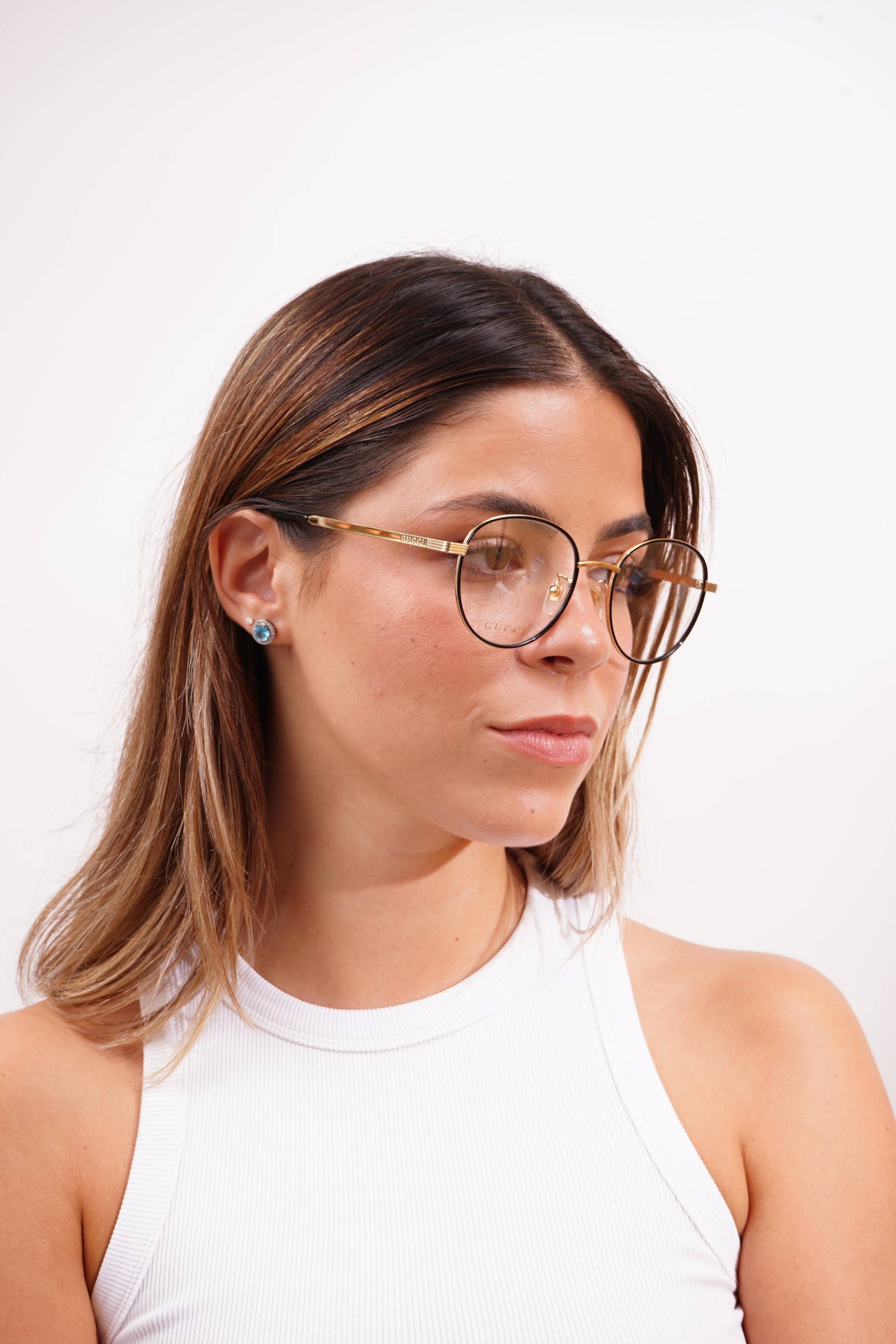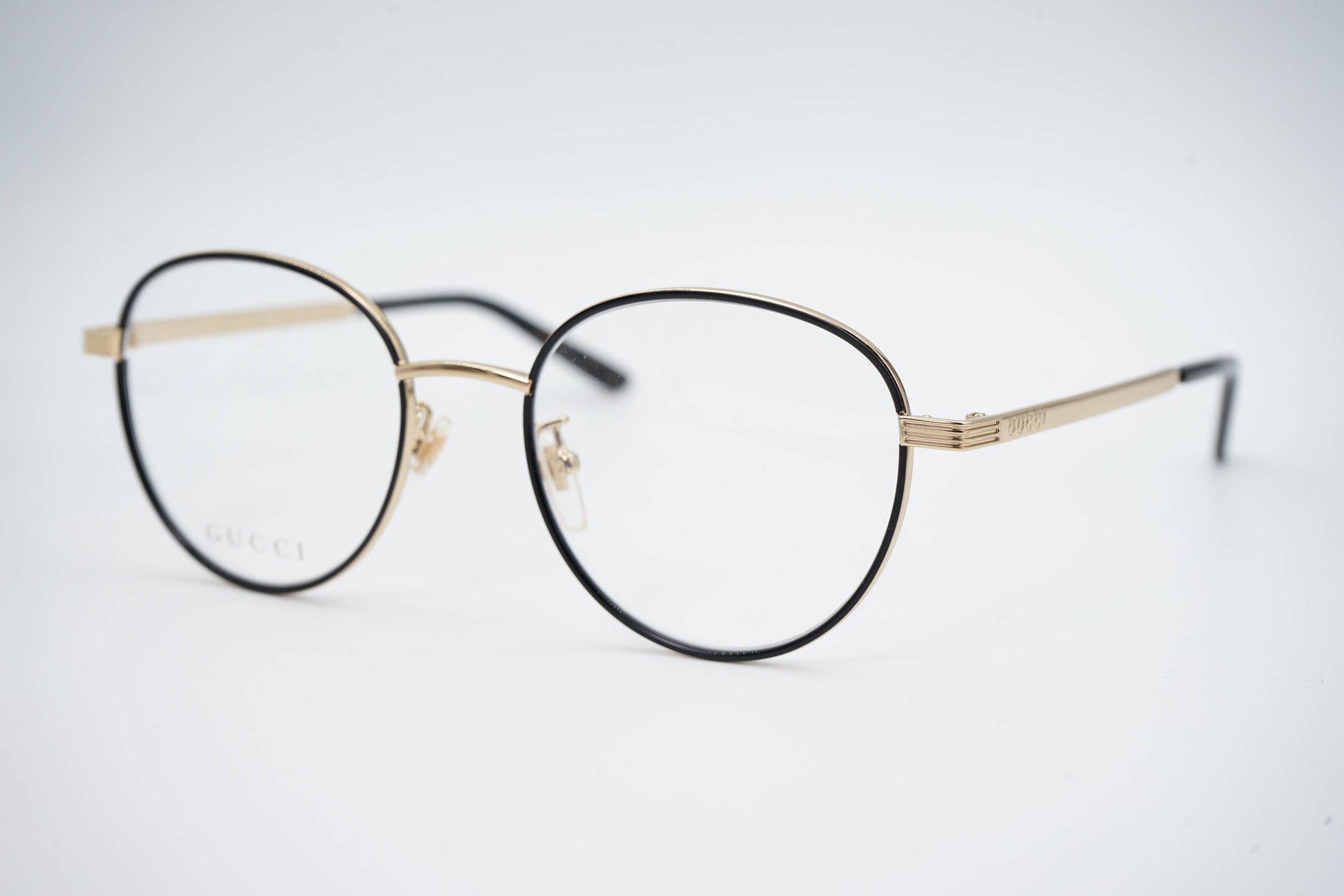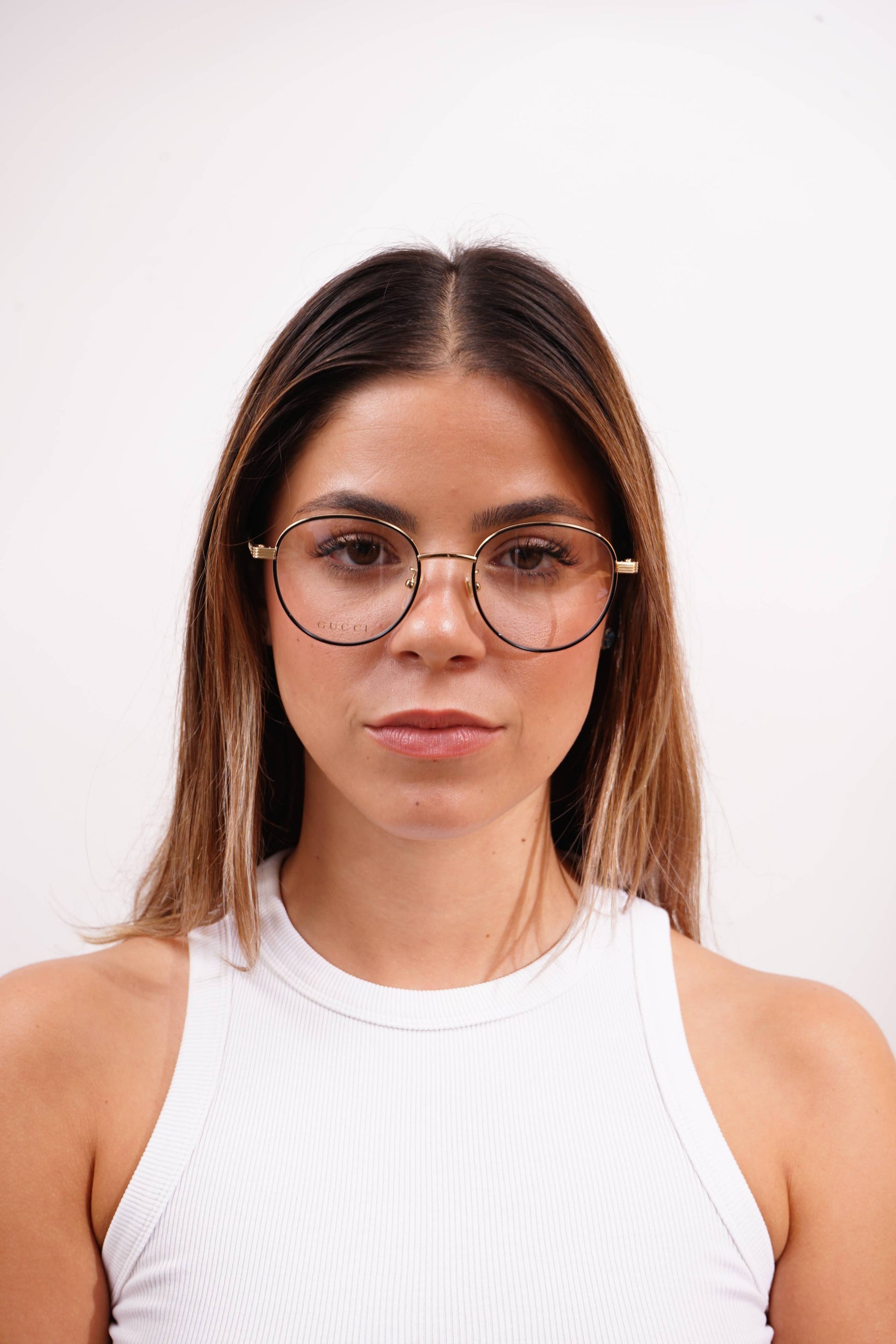 A armação Gucci GG 1353OA 001 apresenta um design redondo e sofisticado, ideal para quem procura um estilo clássico com um toque contemporâneo. Confeccionada em metal dourado, destaca-se pela sua leveza e resistência. A inscrição "Gucci" gravada nas hastes adiciona um detalhe distintivo e elegante. Com tamanho médio (52-20-145), é adequada para a maioria dos rostos, proporcionando conforto e estilo. Este modelo é entregue com estojo rígido de veludo e pano de limpeza, garantindo a proteção e manutenção da armação.
