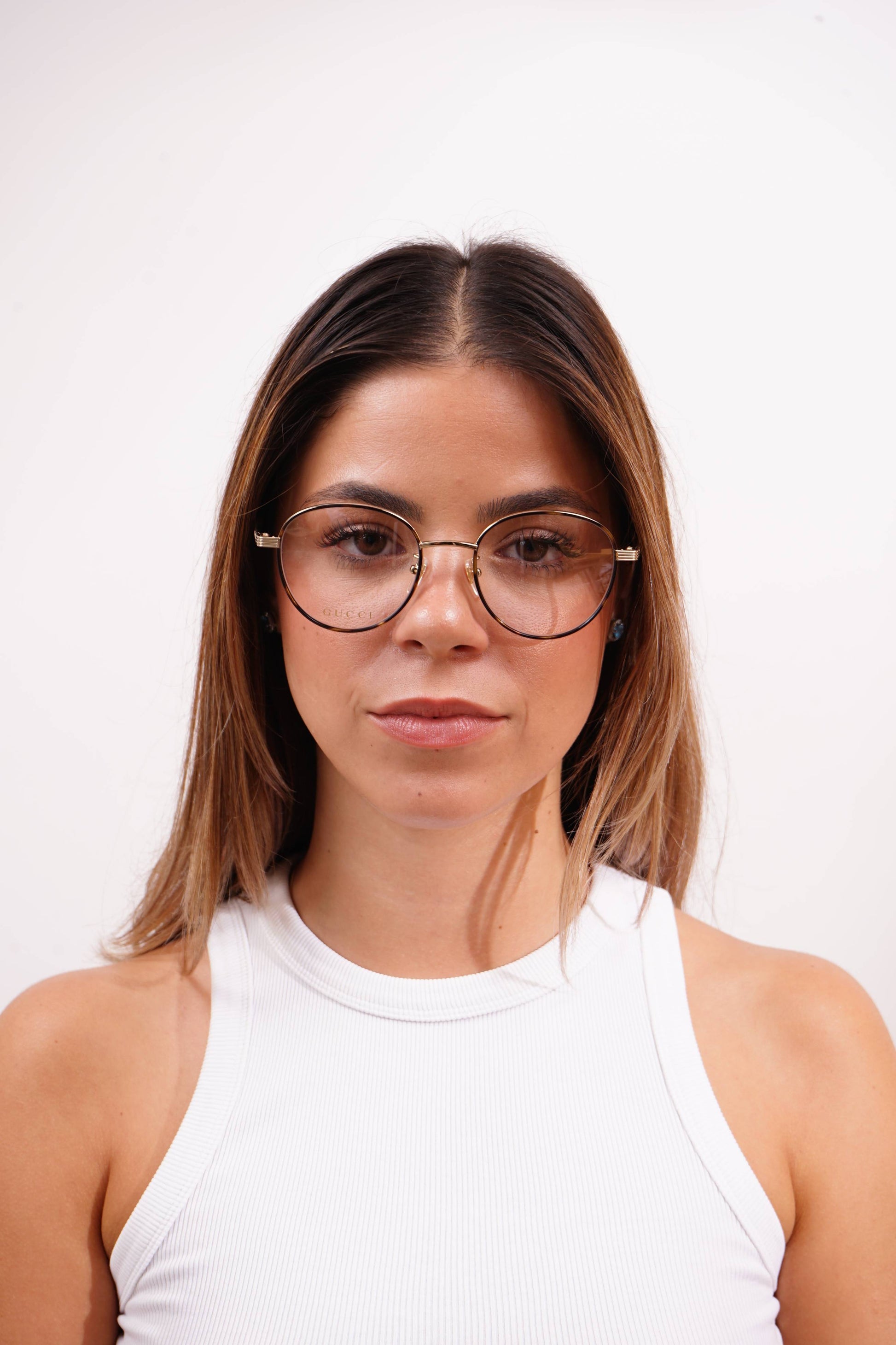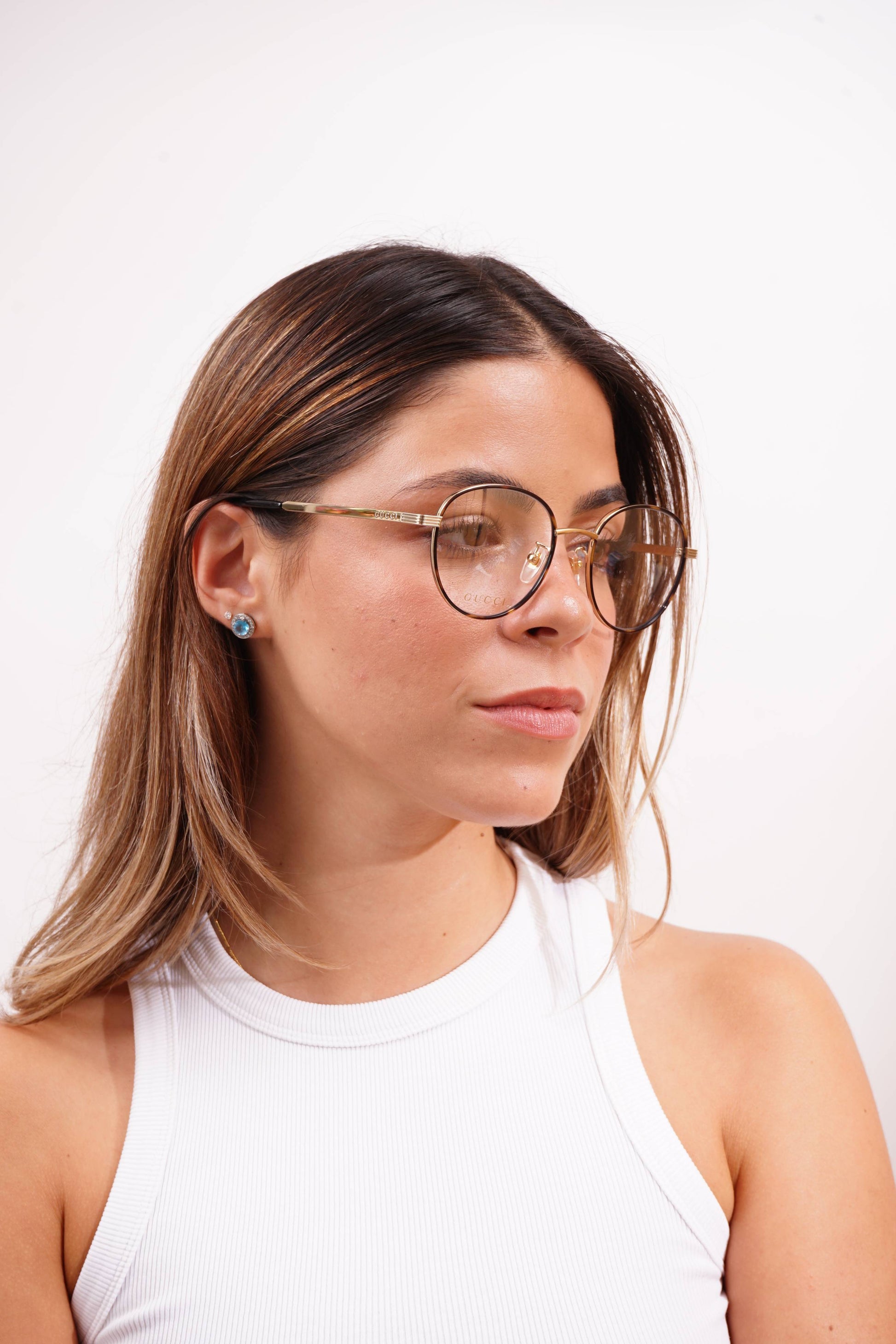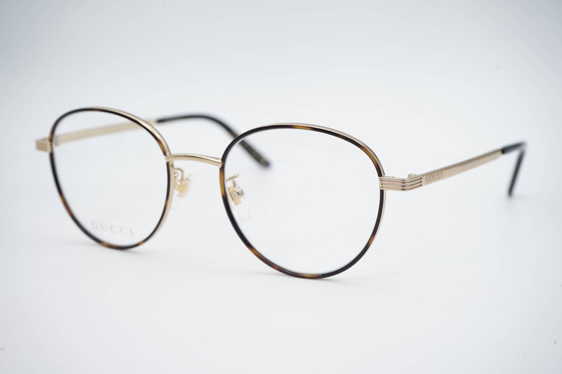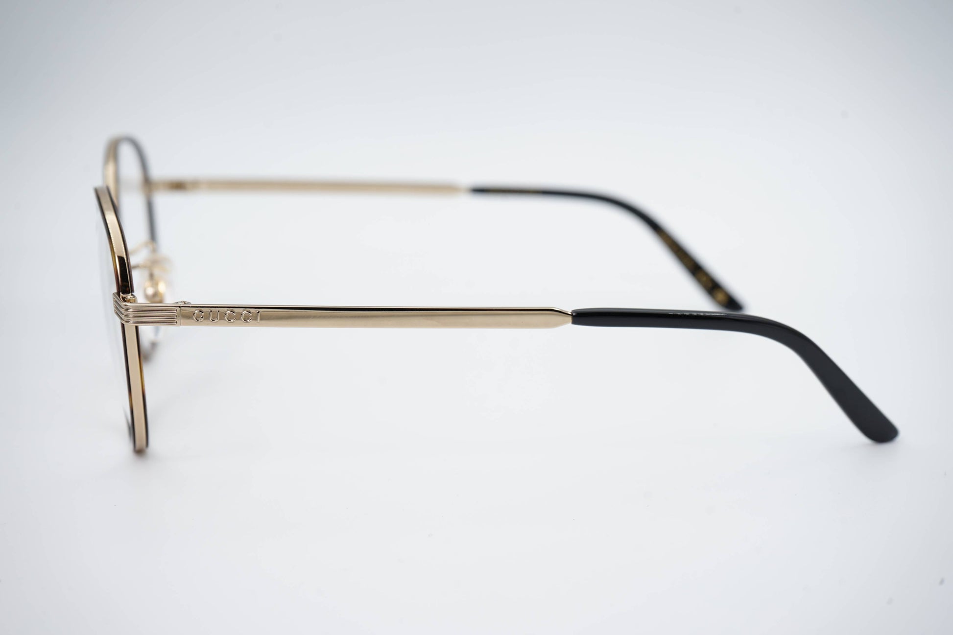 A armação Gucci GG 1353OA 002 apresenta um design redondo e sofisticado, ideal para quem procura um estilo clássico com um toque contemporâneo. Confeccionada em metal dourado, destaca-se pela sua leveza e resistência. A inscrição "Gucci" gravada nas hastes adiciona um detalhe distintivo e elegante. Com tamanho médio (52-20-145), é adequada para a maioria dos rostos, proporcionando conforto e estilo. Este modelo é entregue com estojo rígido de veludo e pano de limpeza, garantindo a proteção e manutenção da armação.