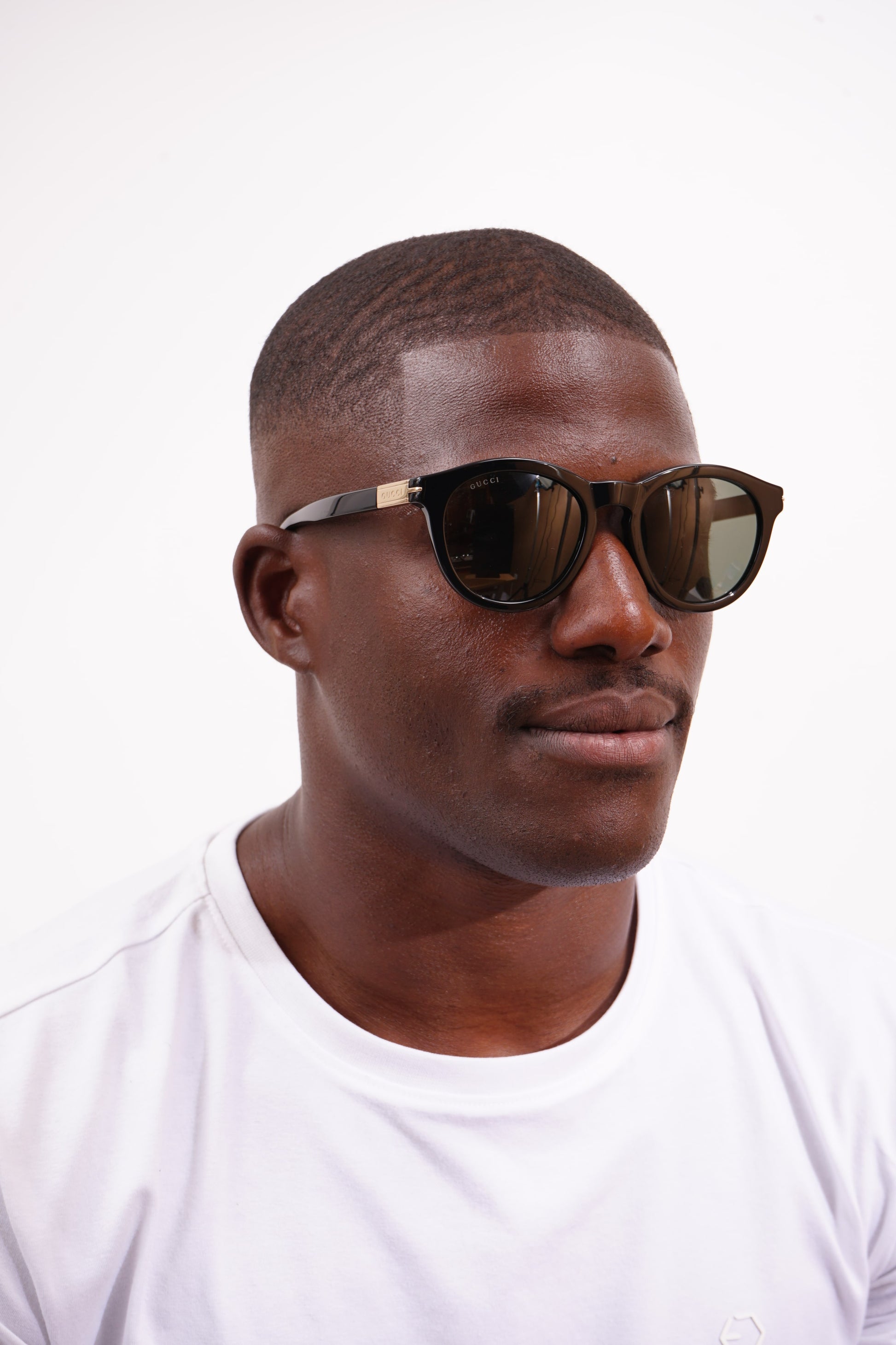 Os óculos de sol Gucci GG1501S 001 combinam um design icónico com materiais sustentáveis. Com uma armação redonda em acetato reciclado preto brilhante e lentes cinza sólidas, oferecem proteção UV 100% (categoria 3). Este modelo unissexo é ideal para rostos de tamanho médio, proporcionando um estilo elegante e contemporâneo. Fabricados em Itália, são perfeitos para complementar qualquer look com um toque de sofisticação.