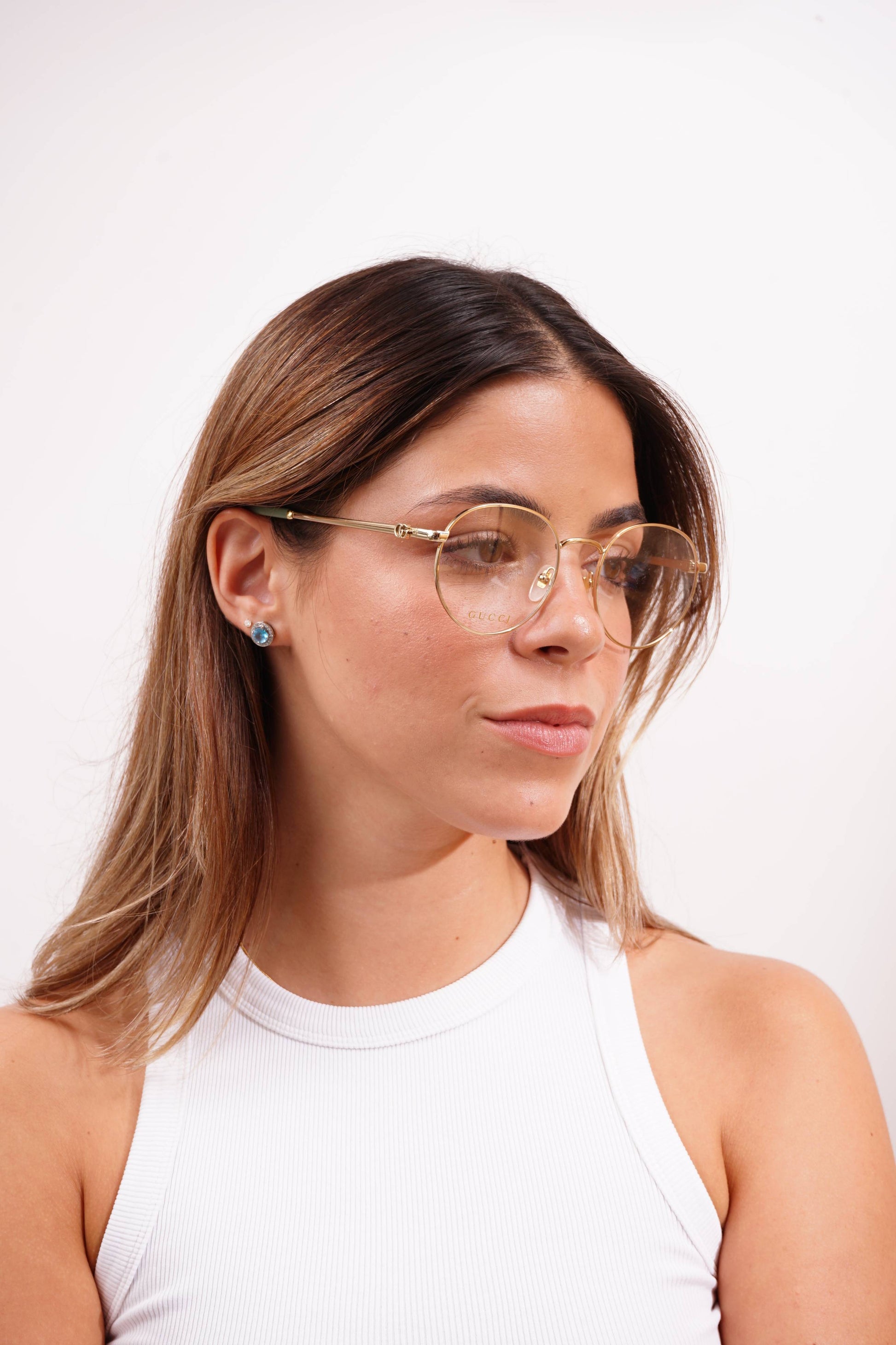A armação Gucci GG 1594O 002 apresenta um design redondo e sofisticado, ideal para quem procura um estilo clássico com um toque contemporâneo. Confeccionada em metal dourado, destaca-se pela sua leveza e resistência. A inscrição "Gucci" gravada nas hastes adiciona um detalhe distintivo e elegante. Com tamanho médio (52-20-145), é adequada para a maioria dos rostos, proporcionando conforto e estilo. Este modelo é entregue com estojo rígido de veludo e pano de limpeza, garantindo a proteção e manutenção da armação.