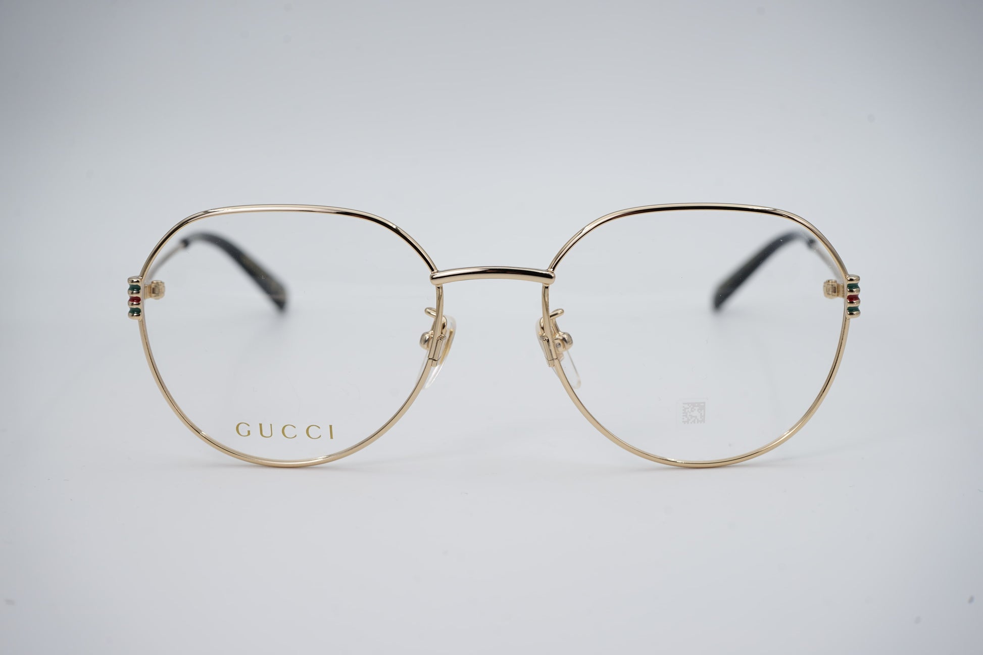 Os Gucci GG1675OK 001 são uns óculos optical femininos que aliam luxo e estilo numa armação metálica dourada de acabamento brilhante (“shiny gold”). O modelo apresenta formato pantos/redondo full rim, ideal para quem procura uma linha clássica mas moderna.