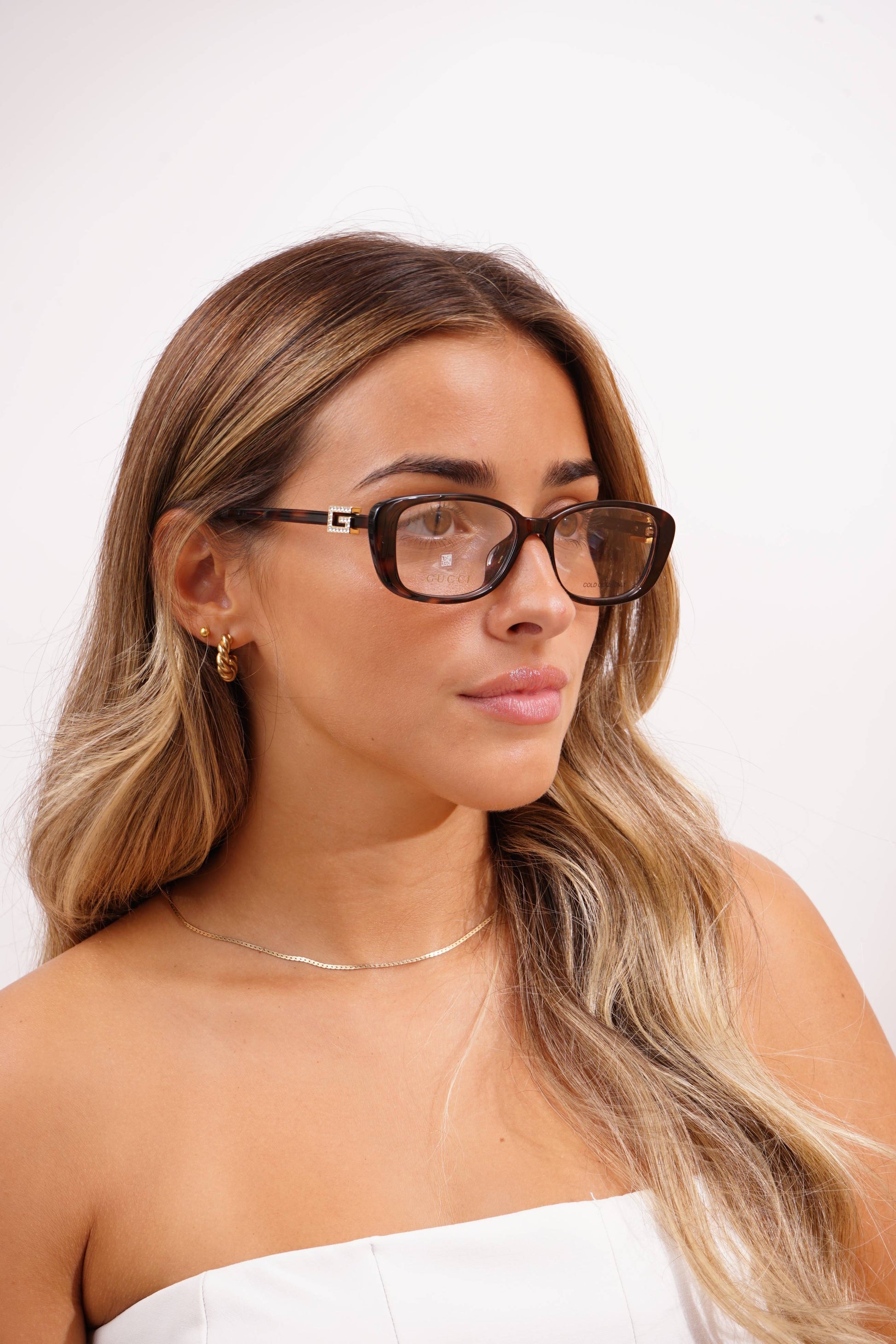 A armação Gucci GG1685OK 004 apresenta um design retangular elegante e moderno, ideal para quem procura um estilo sofisticado com um toque contemporâneo. Confeccionada em acetato na tonalidade havana, destaca-se pela sua leveza e resistência. As hastes são adornadas com o logótipo "G" metálico, conferindo um toque de luxo discreto. Com tamanho médio (54-16-140), é adequada para a maioria dos rostos, proporcionando conforto e estilo. Este modelo é entregue com estojo rígido e pano de limpeza, garantindo a proteção e manutenção da armação.