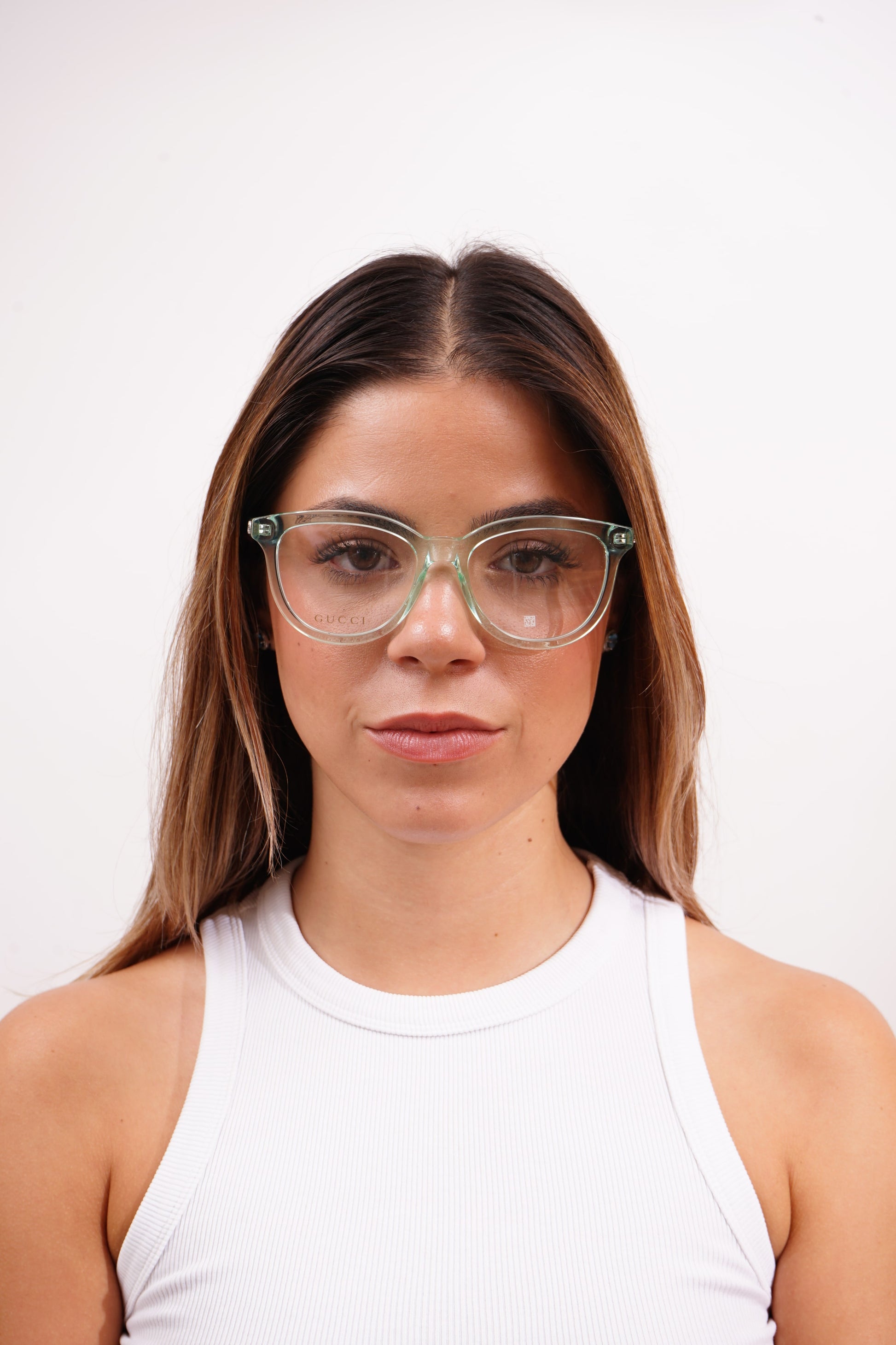 Os Gucci GG1687O 004 são uns óculos optical femininos que aliam estilo contemporâneo, sustentabilidade e elegância. A armação em acetato, no tom azul transparente, oferece um aspeto leve, moderno e marcante. Com formato redondo (“square, full rim”), e dimensão de 52-18-140 mm, este modelo proporciona conforto e boa adaptação para rostos de tamanho médio. Estilo casual ou sofisticado, ideal para quem procura um acessório distinto mas versátil. Envio rápido e stock limitado.