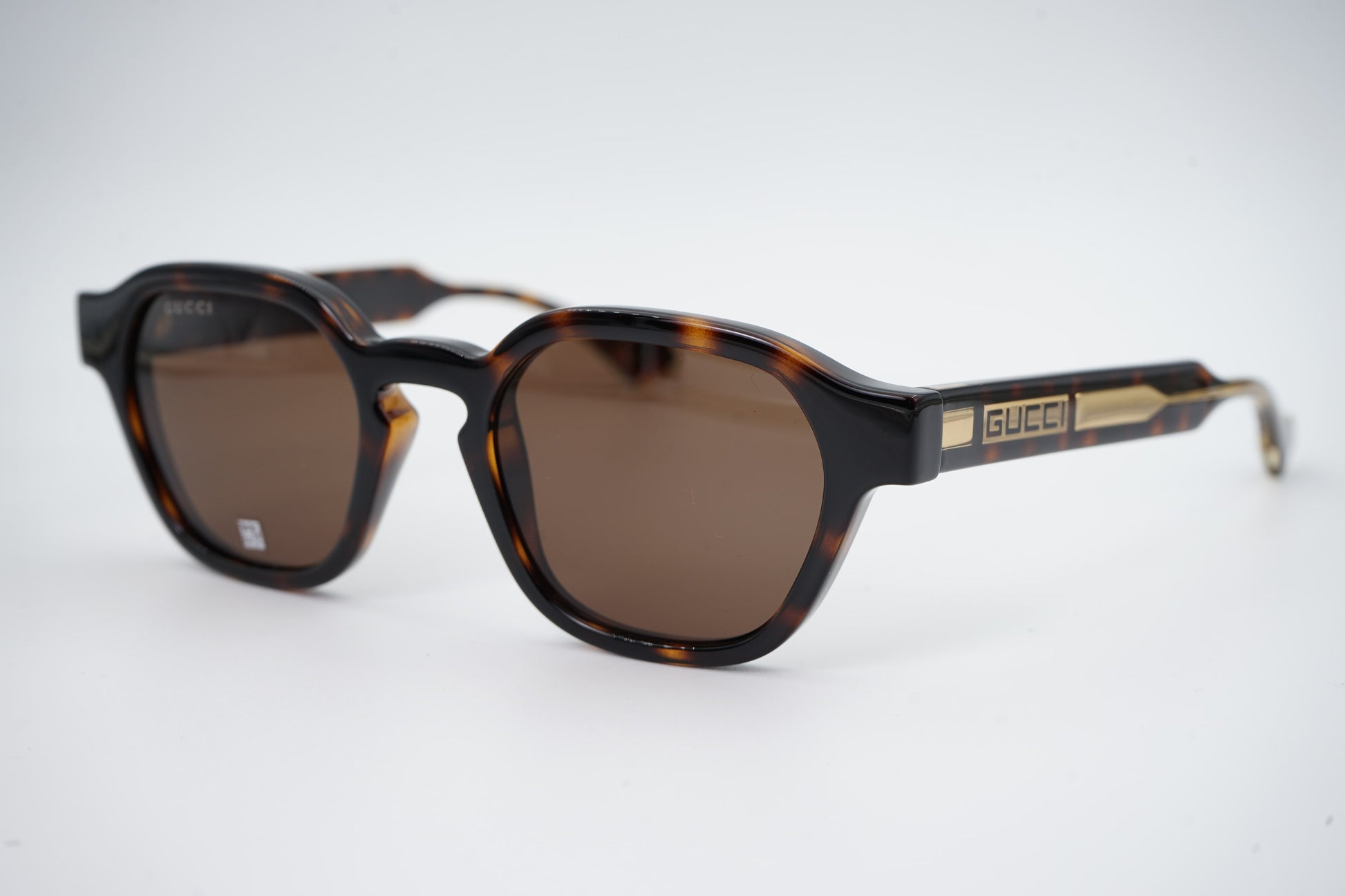 Os óculos de sol Gucci GG1730S 002 apresentam um design icónico com uma armação hexagonal em acetato havana e hastes com o emblema "gucci" dourado. As lentes castanhas sólidas oferecem proteção UV 100% (categoria 3), tornando-os ideais para uso diário. Fabricados no Japão, estes óculos combinam estilo e funcionalidade, sendo perfeitos para complementar qualquer look masculino com um toque de sofisticação.