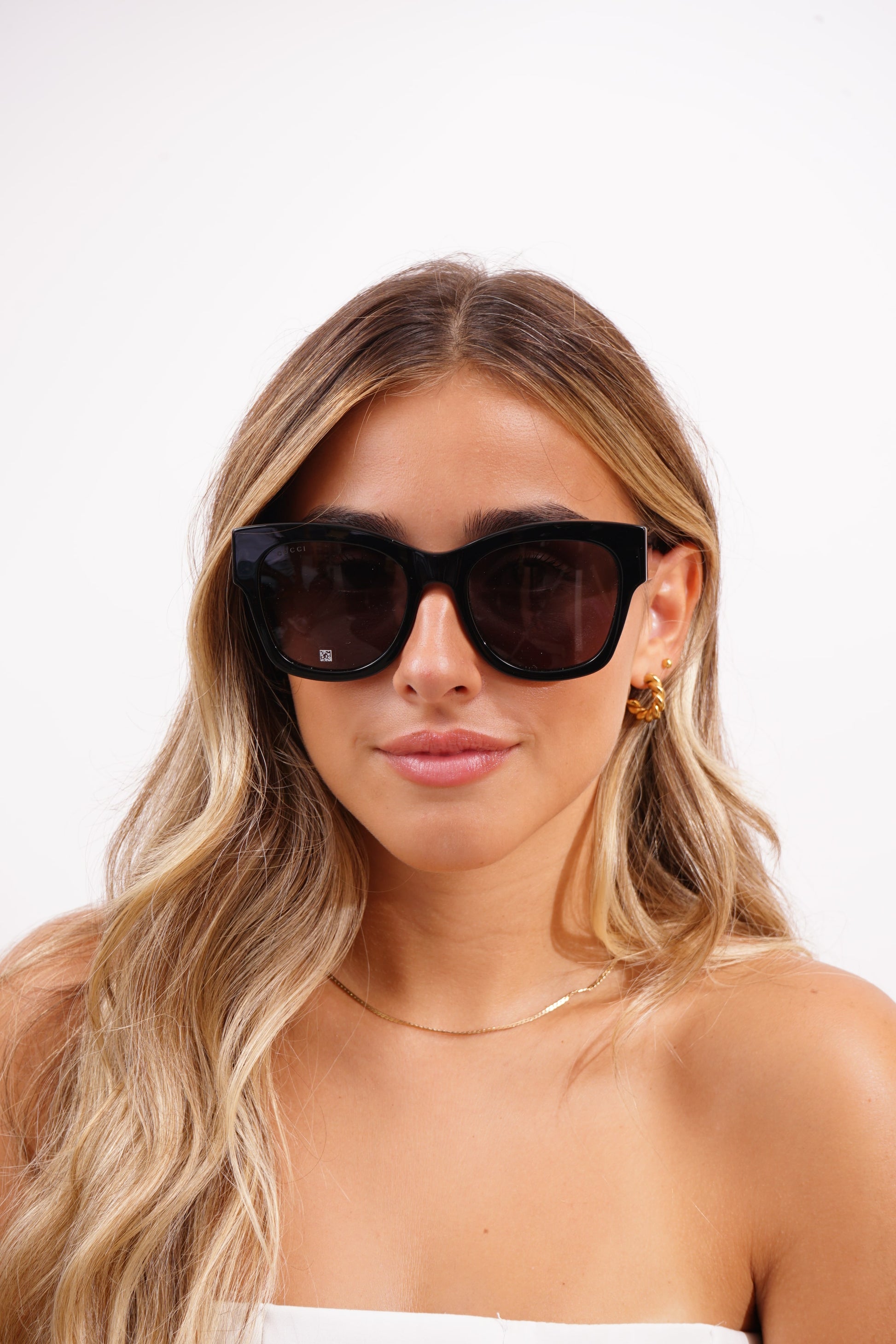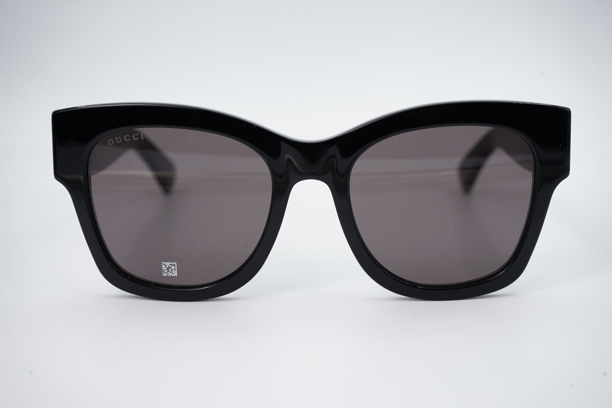 Os Gucci GG1789S 001 são óculos de sol femininos com estilo butterfly, marcando presença com elegância e carácter. A armação é em acetato preto brilhante, oferecendo um visual sofisticado. As lentes são cinzentas sólidas em bio-nylon, proporcionando proteção UV completa e conforto visual, mesmo sob luz intensa. Mede 53-20-145 (lente-ponte-haste), ajustando-se bem ao rosto com estilo sem fugir do conforto. Perfeitos para quem procura um acessório de luxo que combine com looks elegantes e contemporâneos.