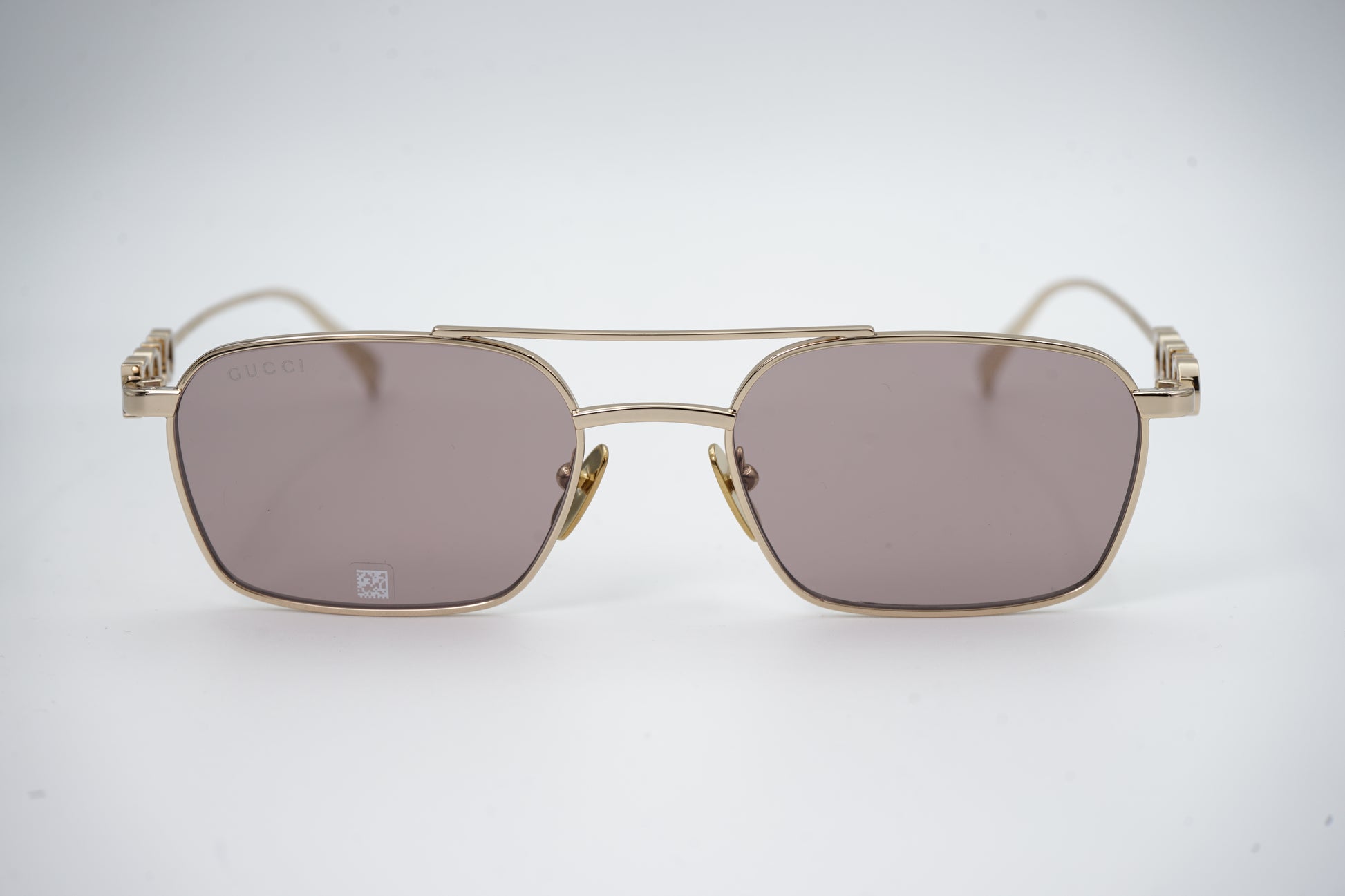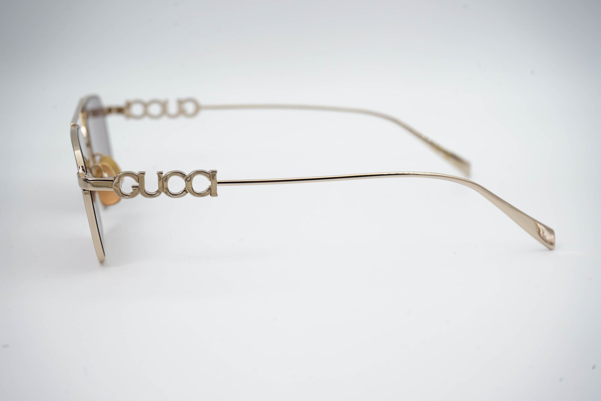 Os óculos de sol Gucci GG 1804S 003 combinam um design retangular moderno com a sofisticação de detalhes em dourado, refletindo o luxo e a elegância característicos da marca Gucci. Este modelo é perfeito para quem procura estilo e conforto num acessório icónico.