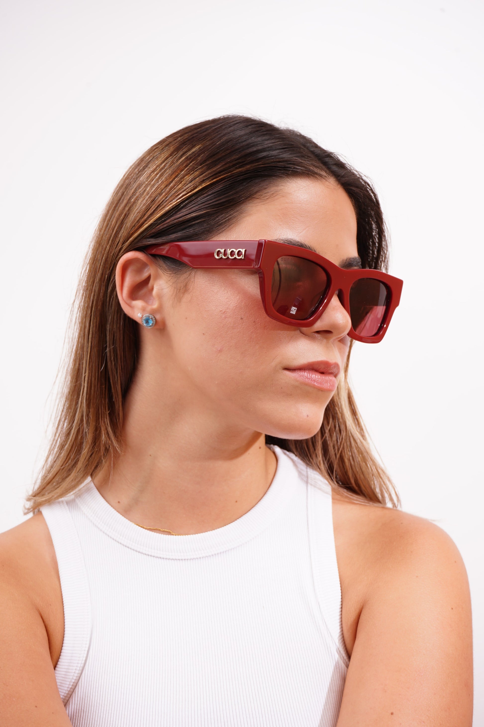 Os Gucci GG1835SA 003 são óculos de sol femininos que combinam um design arrojado com materiais sustentáveis. Apresentam uma armação em acetato na tonalidade vermelha, com lentes também vermelhas que oferecem 100% de proteção UV. O formato quadrado estilo "olho de gato" confere um visual moderno e sofisticado, perfeito para diversas ocasiões. Fabricados em Itália, estes óculos são um verdadeiro símbolo de luxo e estilo.