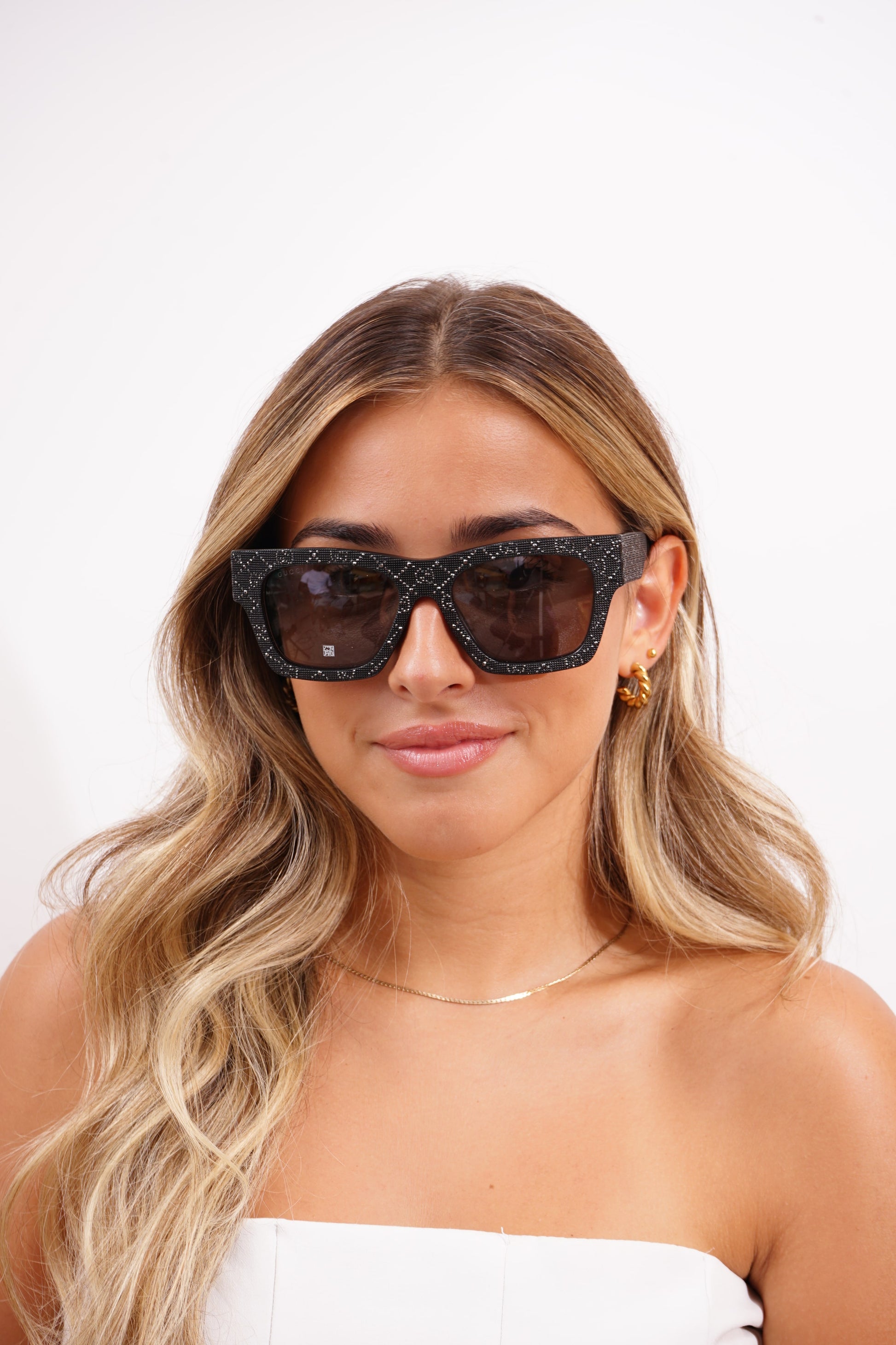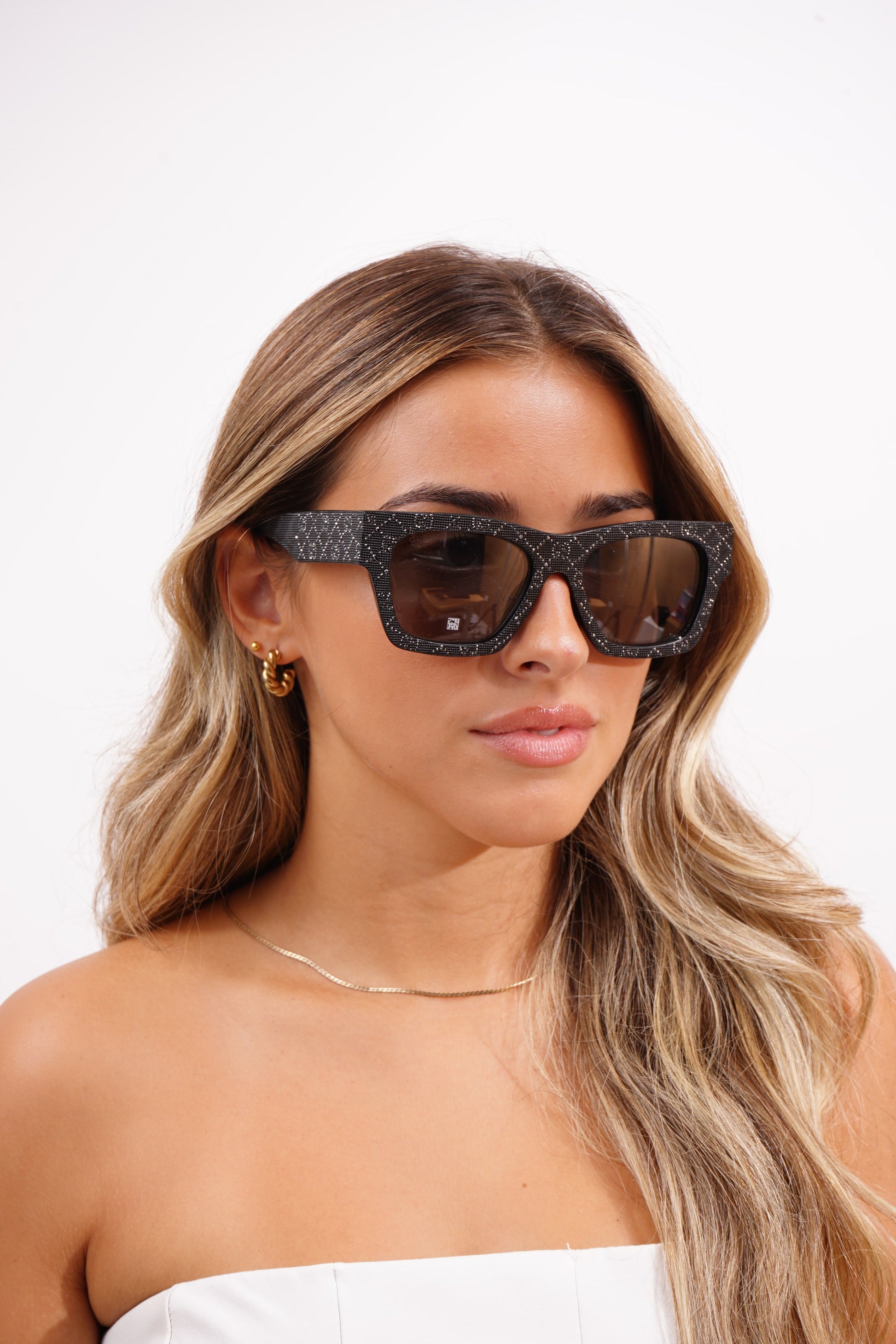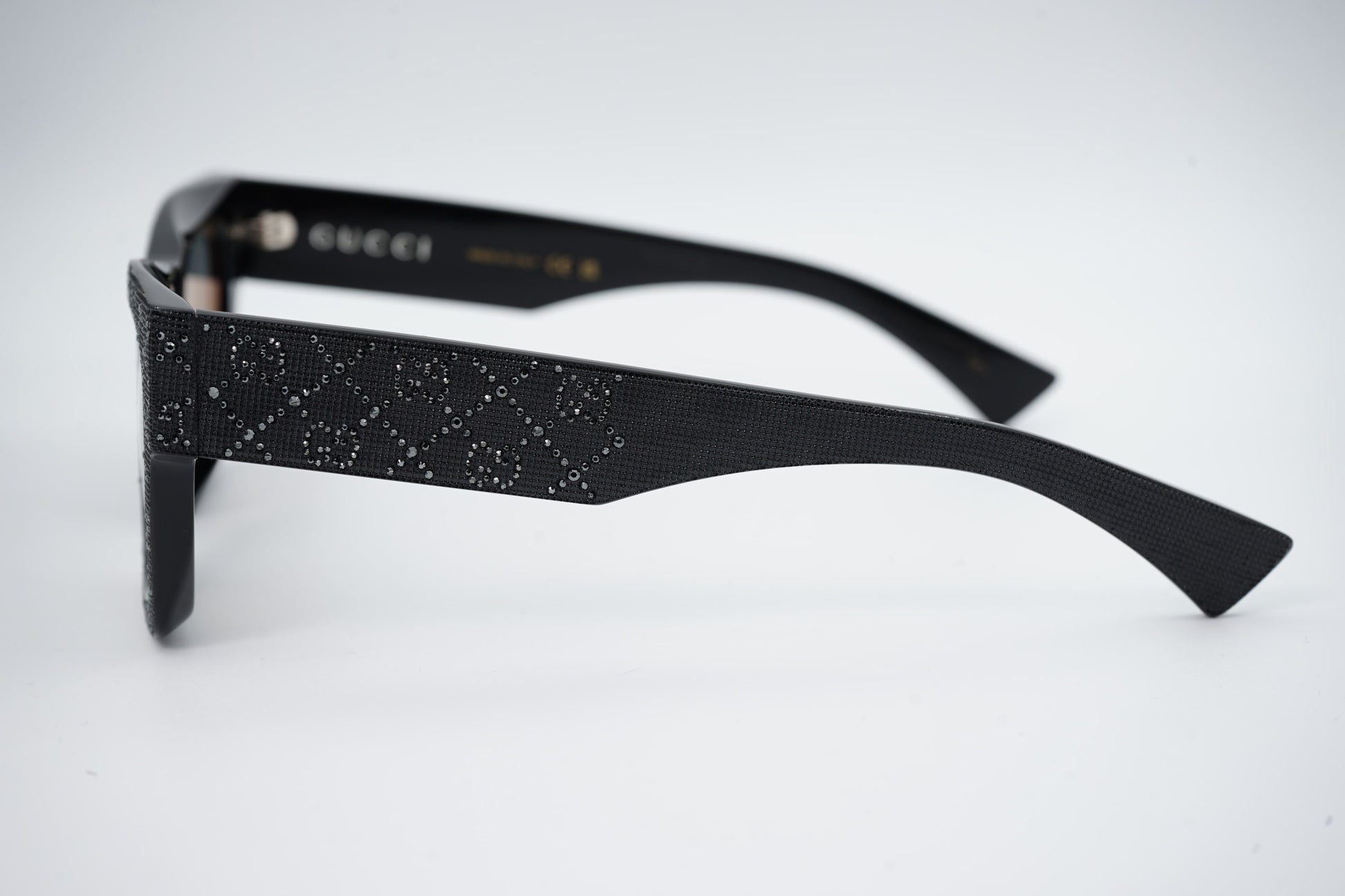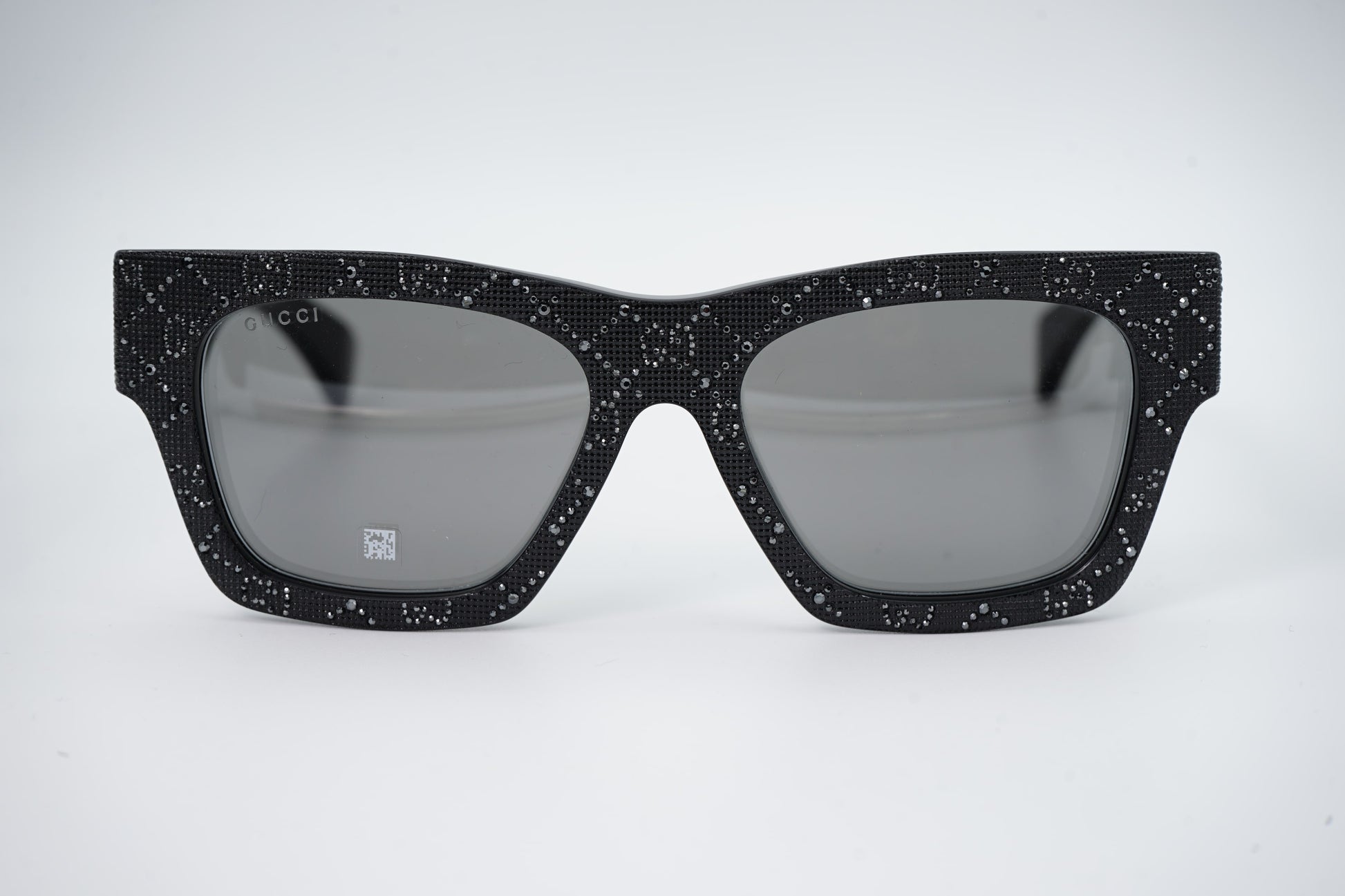 Os Gucci GG1835SA 005 são óculos de sol que elevam a sofisticação a um novo nível. A sua armação retangular em acetato preto apresenta o inconfundível padrão monograma GG em relevo, criando um design exclusivo e luxuoso. As lentes cinza sólidas garantem proteção total contra os raios UV, ao mesmo tempo que proporcionam conforto visual em qualquer ambiente. Este modelo é a escolha perfeita para quem procura um acessório ousado, moderno e fiel ao ADN de luxo da Gucci.
