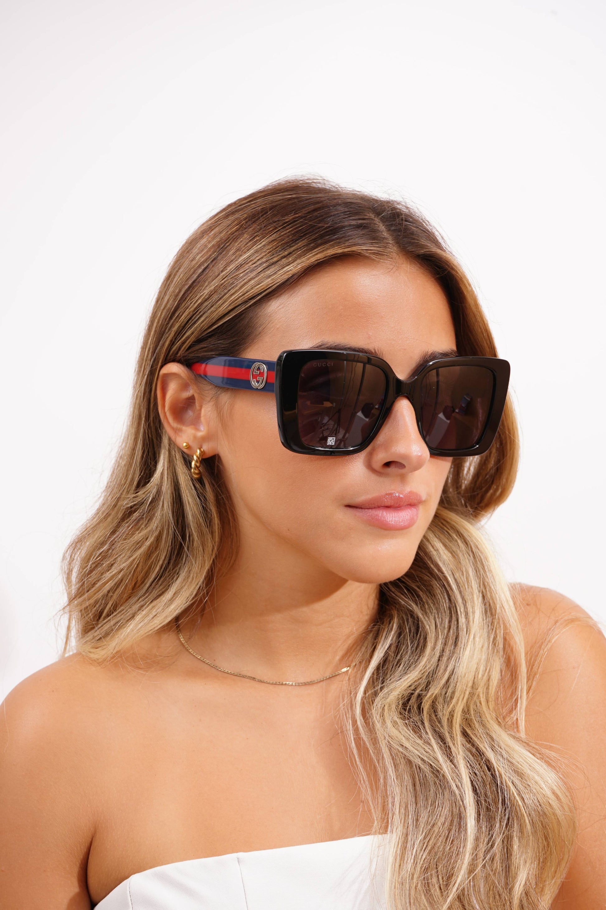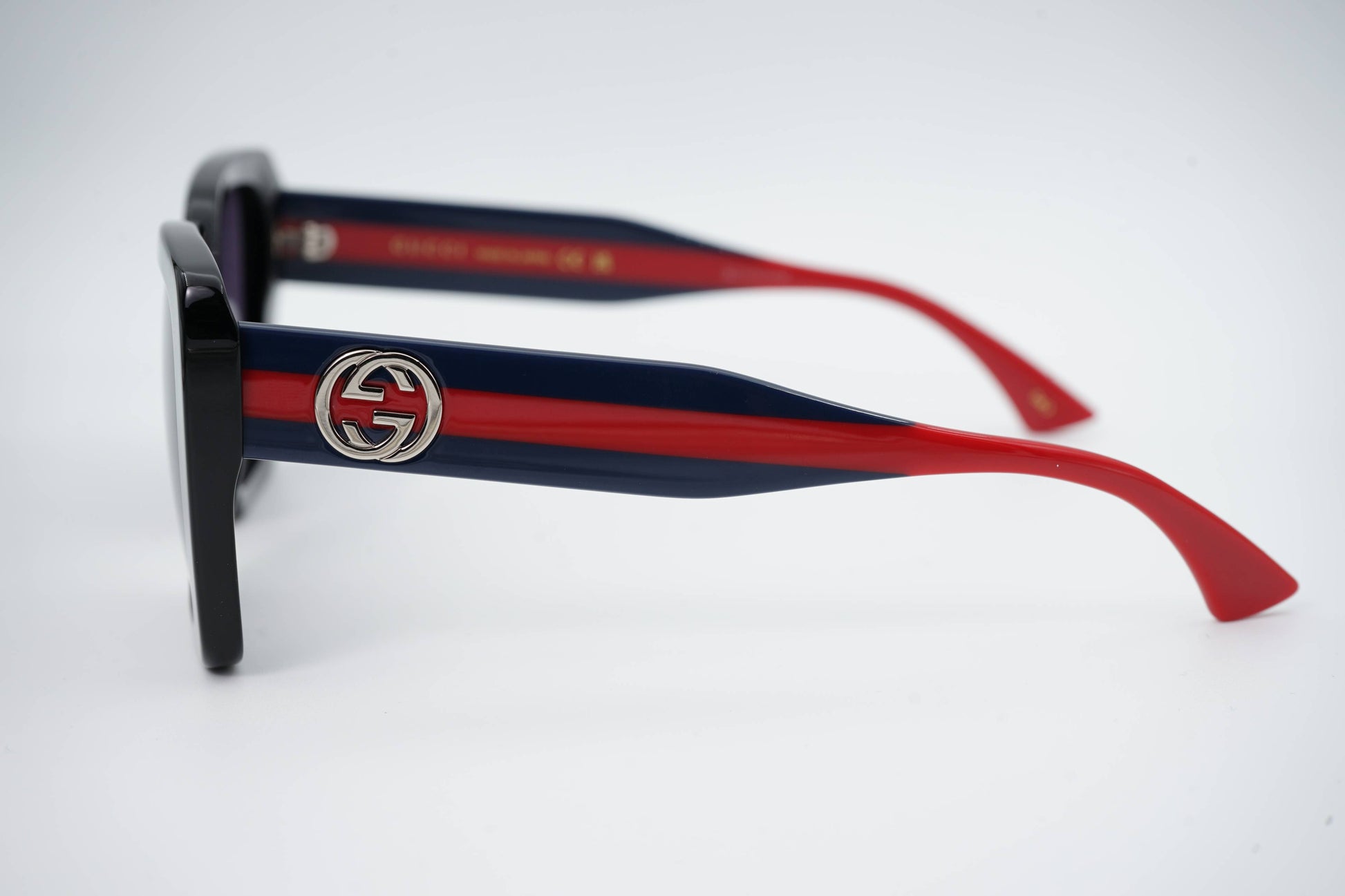 Os Gucci GG1861S 004 são óculos de sol femininos que combinam elegância contemporânea com um toque de sofisticação. Apresentam uma armação quadrada em acetato preto brilhante, complementada por hastes com detalhes em azul e vermelho, criando um contraste harmonioso e moderno. As lentes violeta oferecem proteção UV essencial, ao mesmo tempo que adicionam um estilo ousado e distinto. Este modelo é ideal para mulheres que buscam um acessório de luxo que destaque sua personalidade e estilo único.