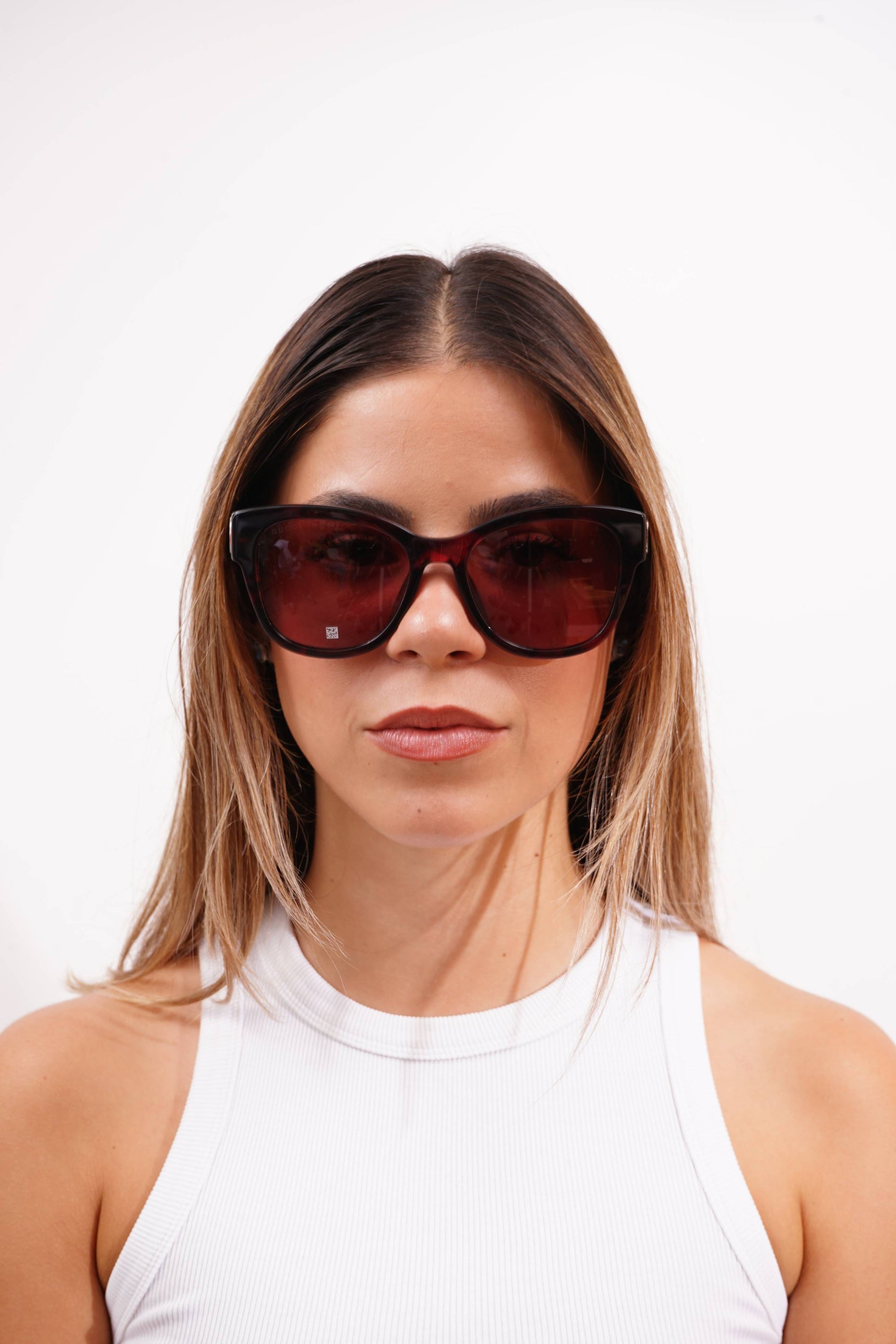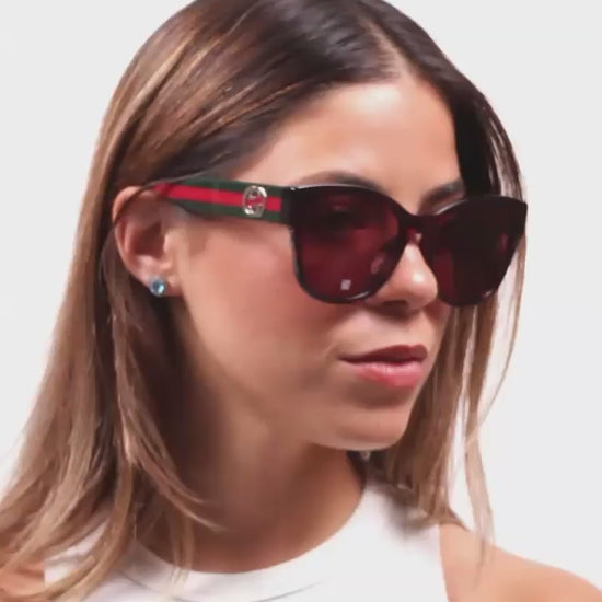 Os Gucci GG1866SK 003 são óculos de sol femininos que combinam elegância contemporânea com um toque de sofisticação. Apresentam uma armação estilo butterfly em acetato havana brilhante, complementada por hastes com o icónico padrão Web verde-vermelho-verde, criando um contraste harmonioso e moderno. As lentes vermelhas oferecem proteção UV essencial, ao mesmo tempo que adicionam um estilo ousado e distinto. Este modelo é ideal para mulheres que procuram um acessório de luxo que destaque a sua personalidade e estilo único.