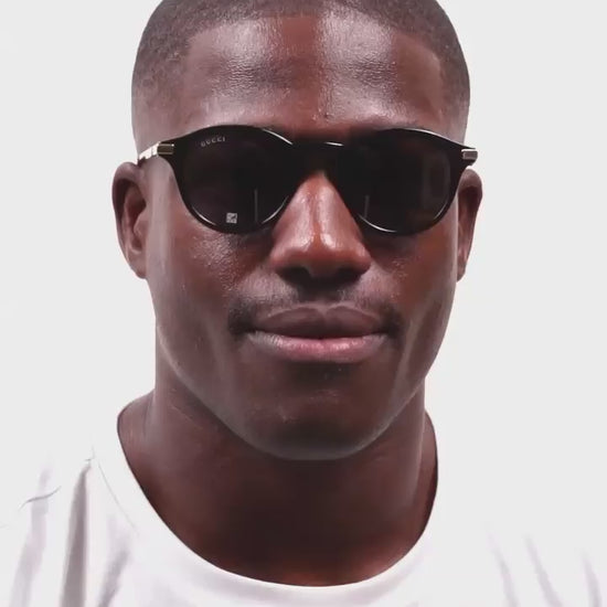 Os óculos de sol Gucci GG1890S 001 combinam um design icónico com materiais sustentáveis. Com uma armação redonda em acetato reciclado preto brilhante e lentes cinza sólidas, oferecem proteção UV 100% (categoria 3). Este modelo unissexo é ideal para rostos de tamanho médio, proporcionando um estilo elegante e contemporâneo. Fabricados em Itália, são perfeitos para complementar qualquer look com um toque de sofisticação.