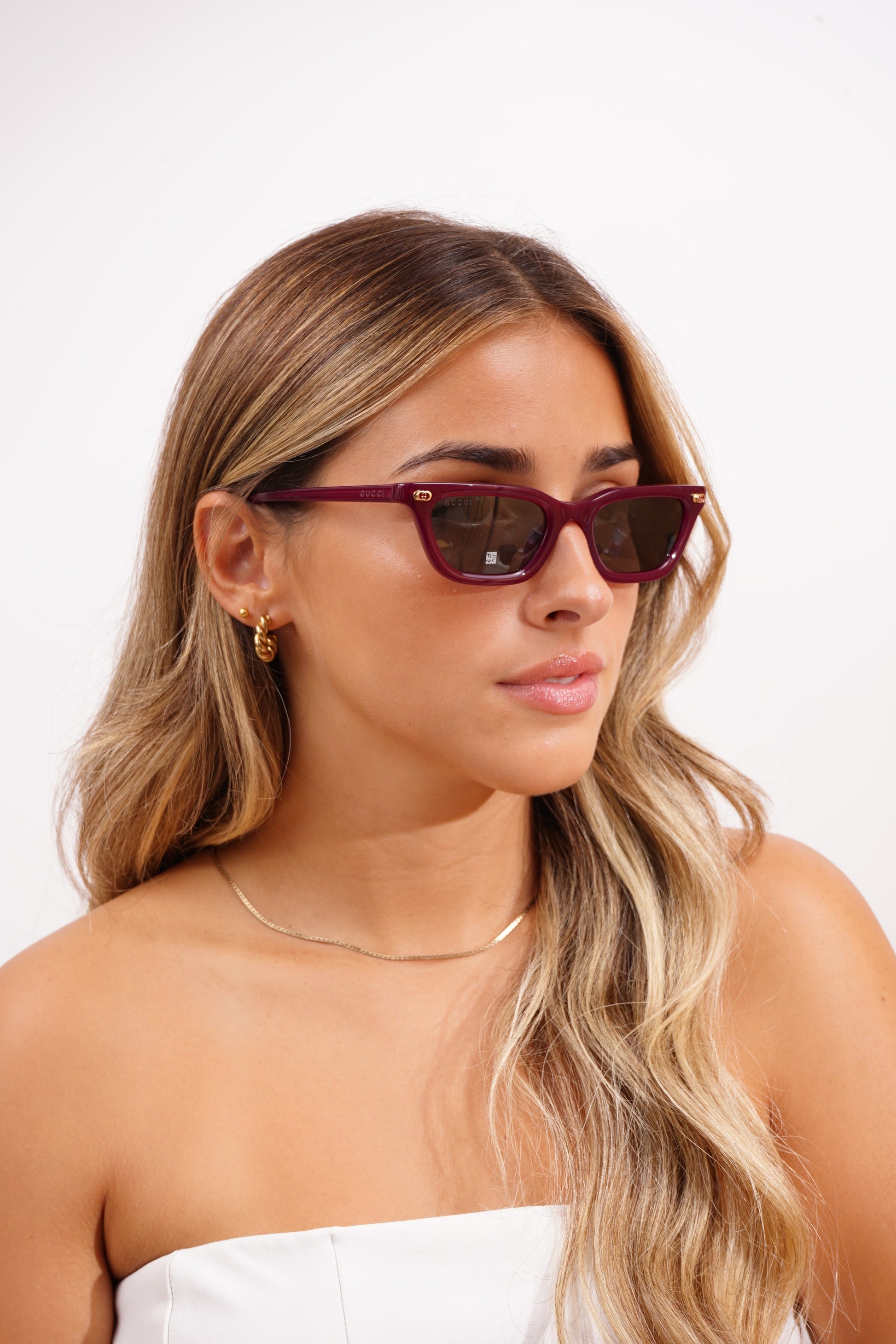 Os óculos de sol Gucci 1944S 003 combinam elegância e sofisticação para mulheres modernas. Com uma armação bordô em formato quadrado e lentes claras, oferecem conforto e proteção UV 100%. Fabricados em Itália, adicionando um toque exclusivo e luxuoso a qualquer look.
