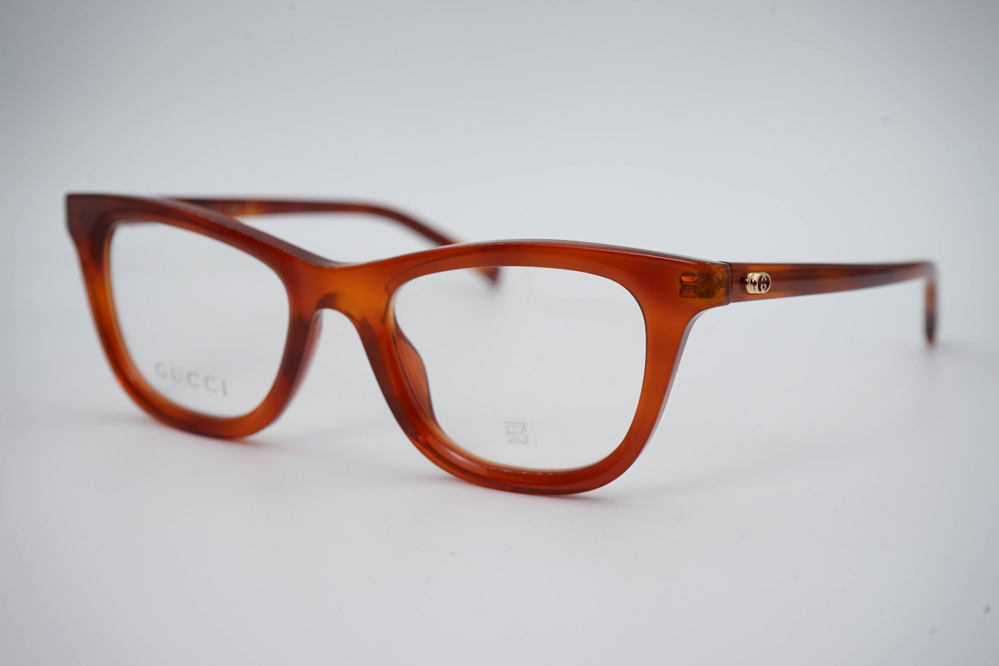 As hastes apresentam o logótipo Gucci em detalhe metálico, adicionando um toque distintivo e exclusivo ao visual.