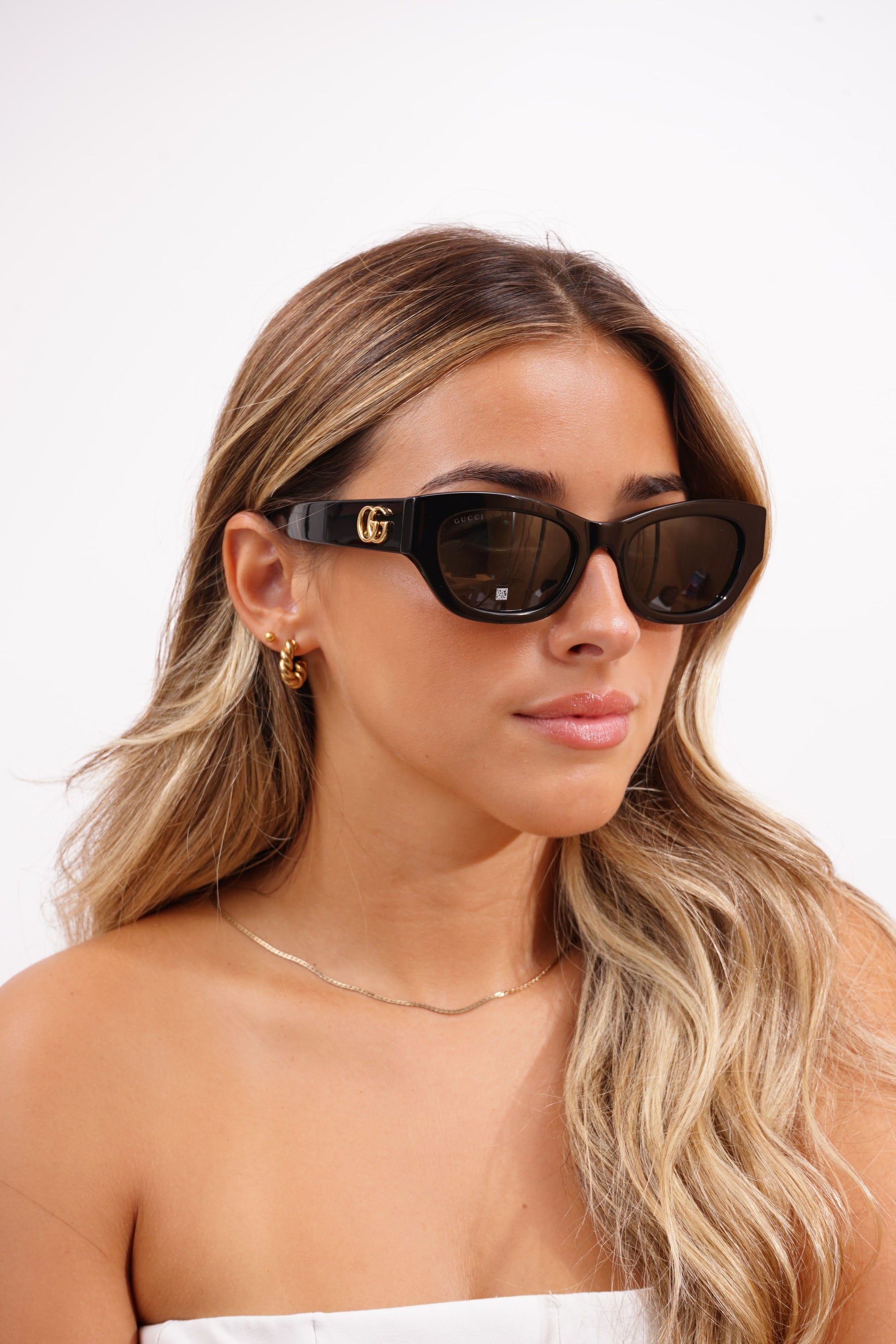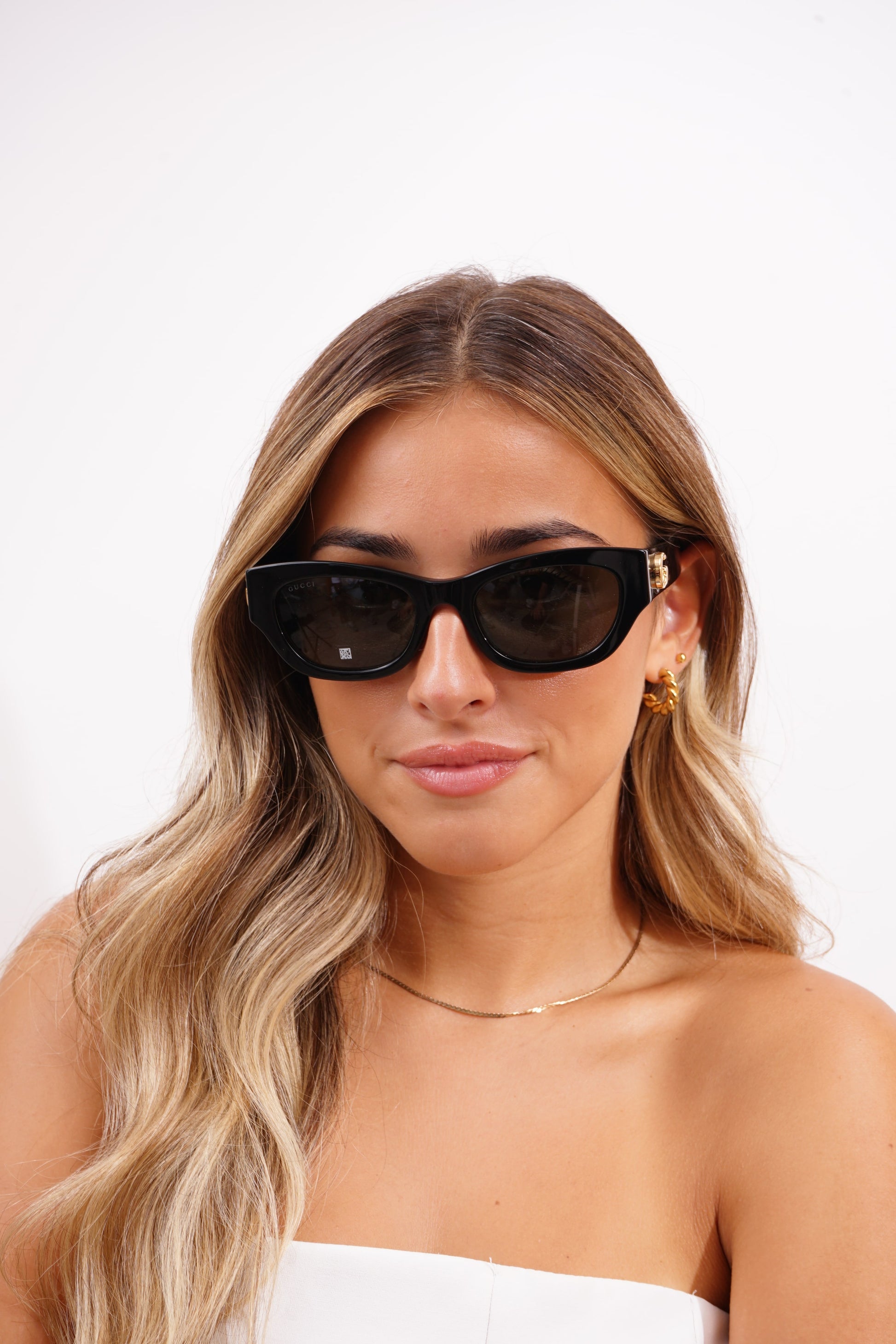 Os Gucci GG1954SA 001 são óculos de sol femininos que combinam um design arrojado com materiais sustentáveis. Apresentam uma armação em acetato na tonalidade preta brilhante, com lentes cinzentas sólidas em bio-nylon que oferecem 100% de proteção UVA/UVB. O formato "olho de gato" confere um visual moderno e sofisticado, perfeito para diversas ocasiões. Fabricados em Itália, estes óculos são um verdadeiro símbolo de luxo e estilo.