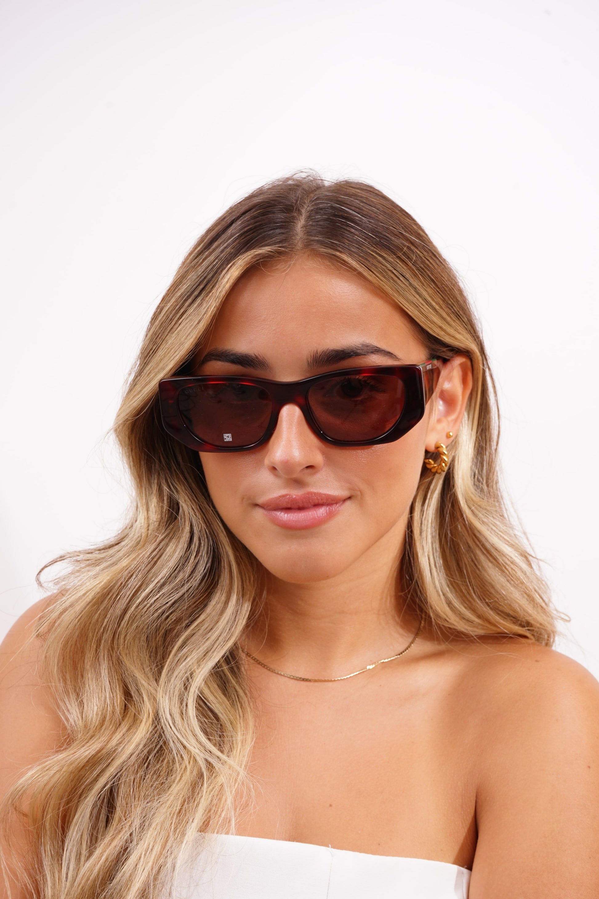 Os Gucci GG1959S 003 são óculos de sol femininos que combinam um design arrojado com materiais sustentáveis. Apresentam uma armação em acetato na tonalidade Havana escuro brilhante, com lentes castanhas sólidas em bio-nylon que oferecem 100% de proteção UV. O formato "olho de gato" confere um visual moderno e sofisticado, perfeito para diversas ocasiões. Fabricados em Itália, estes óculos são um verdadeiro símbolo de luxo e estilo.
