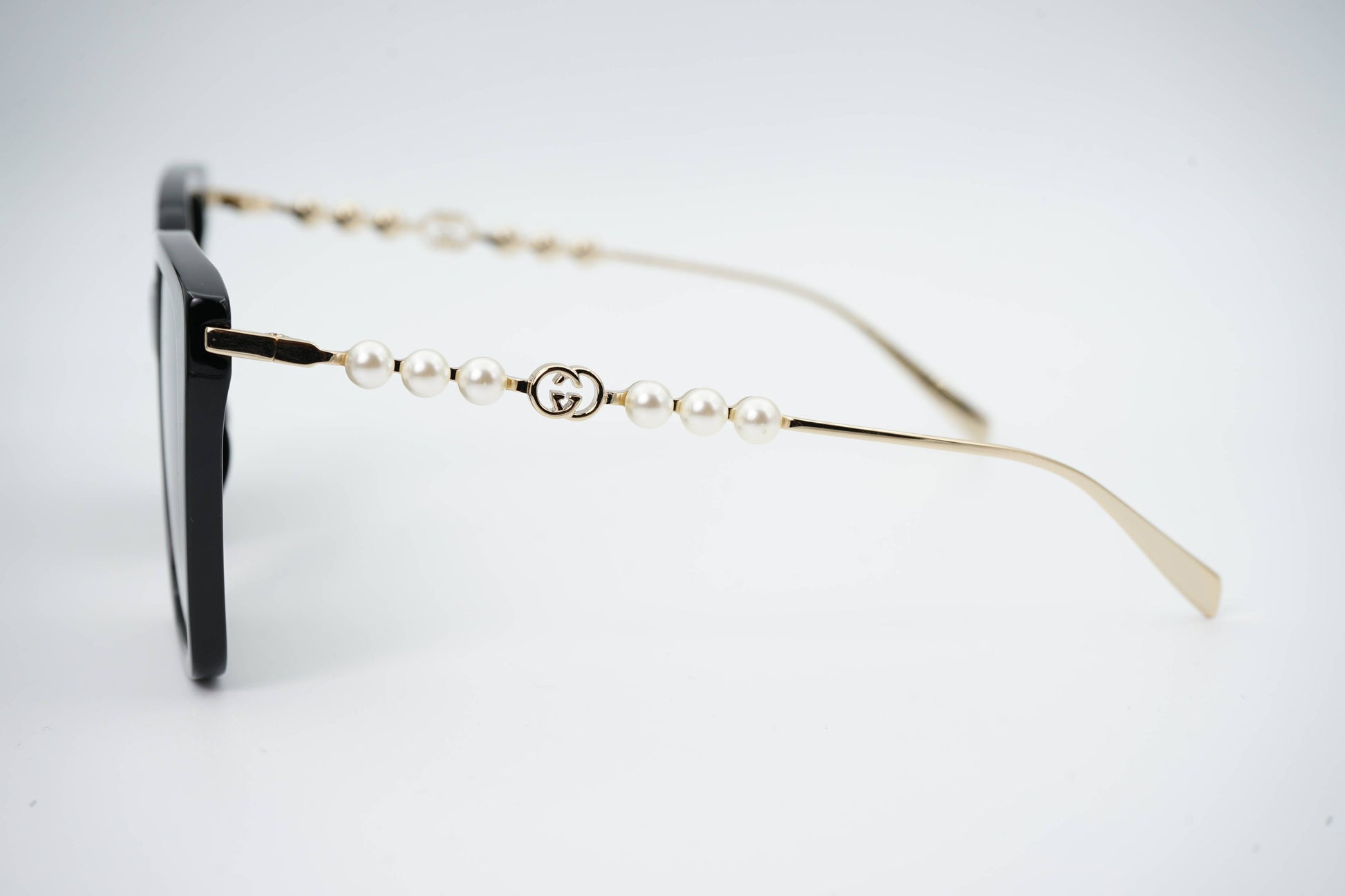 Os Gucci GG1967S 001 são óculos de sol femininos que combinam elegância contemporânea com um toque de sofisticação. Apresentam uma armação estilo quadrados em acetato preto brilhante adornada por pérolas nas hastes, complementada por lentes cinza em bio-nylon, oferecendo proteção UV essencial. Este modelo é ideal para mulheres que procuram um acessório de luxo que realce a sua personalidade e estilo único.