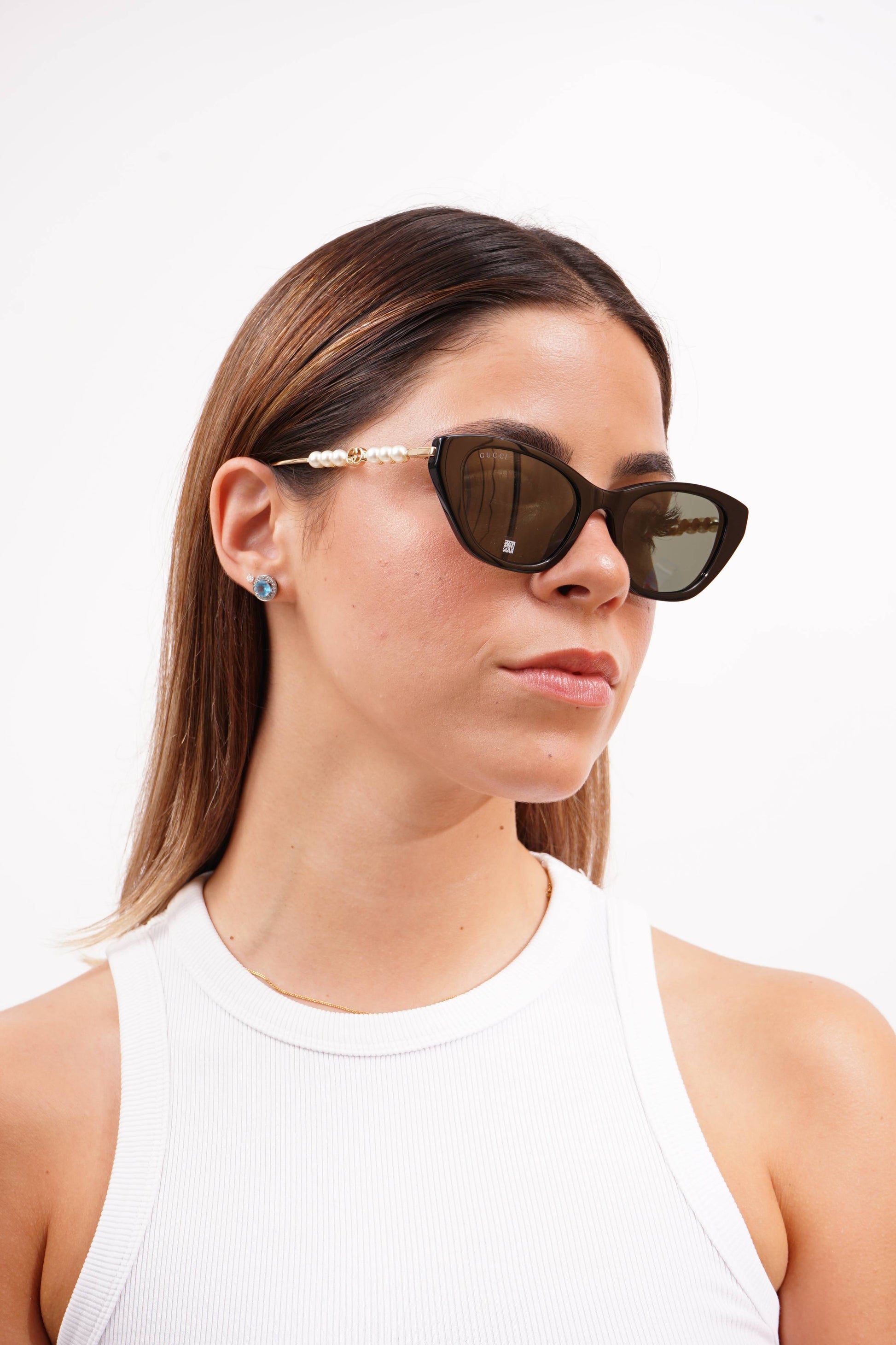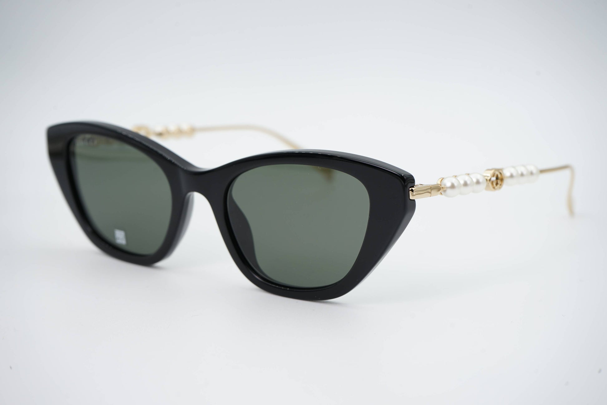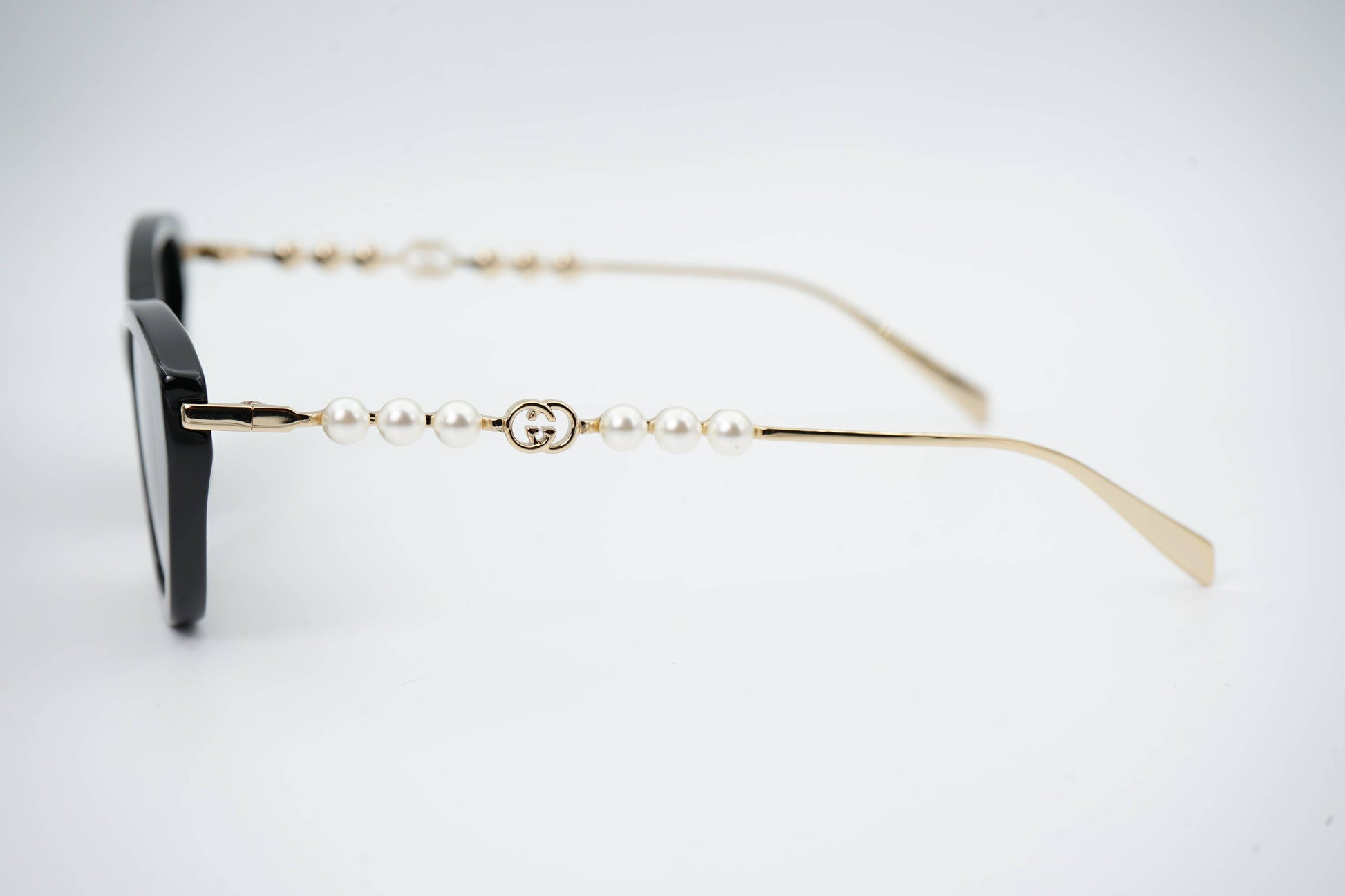 Os Gucci GG1968S 001 são óculos de sol femininos que combinam elegância contemporânea com um toque de sofisticação. Apresentam uma armação estilo cat-eye em acetato preto brilhante adornado com pérolas nas hastes, complementada por lentes cinza sólidas em bio-nylon, oferecendo proteção UV essencial. Este modelo é ideal para mulheres que procuram um acessório de luxo que realce a sua personalidade e estilo único.
