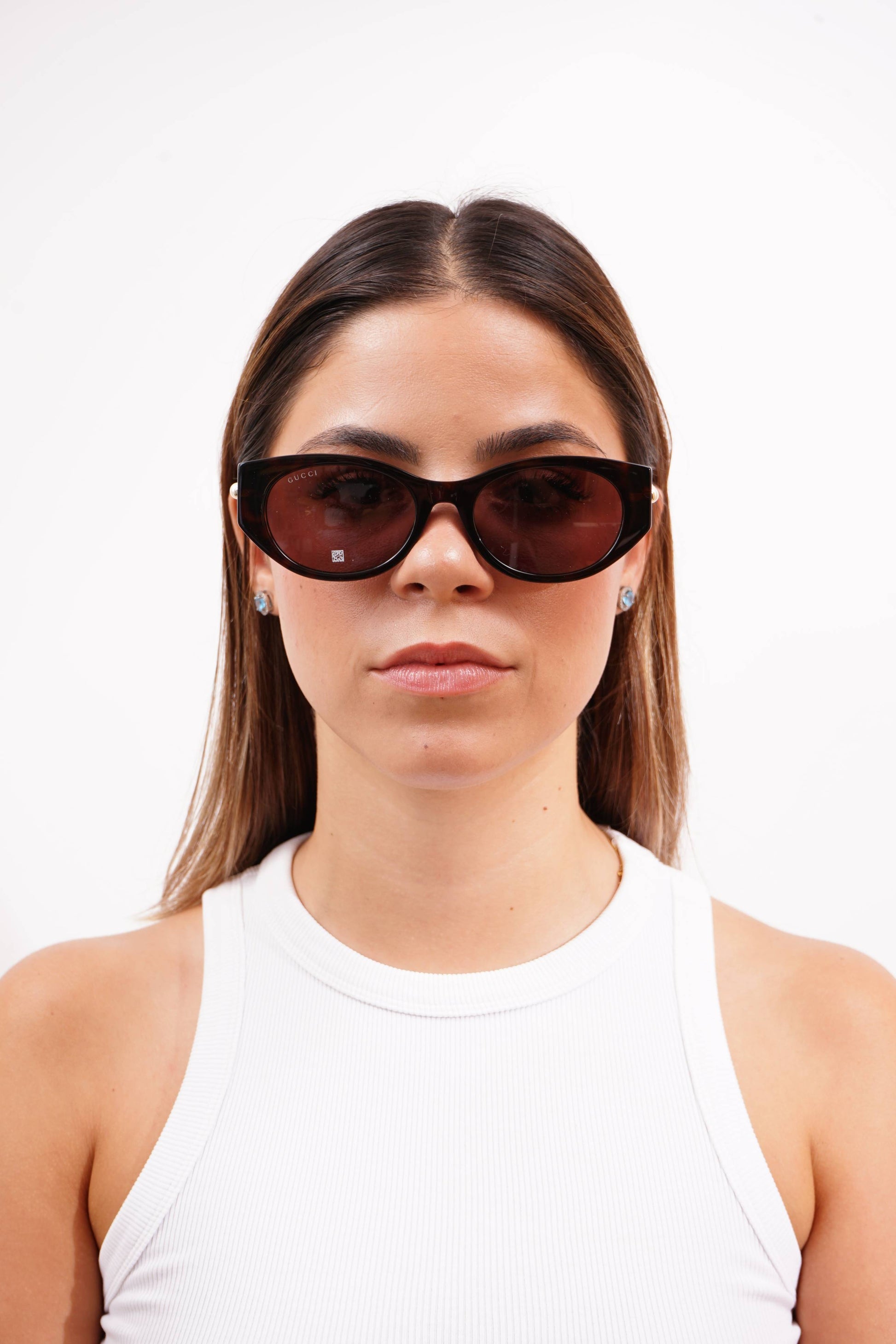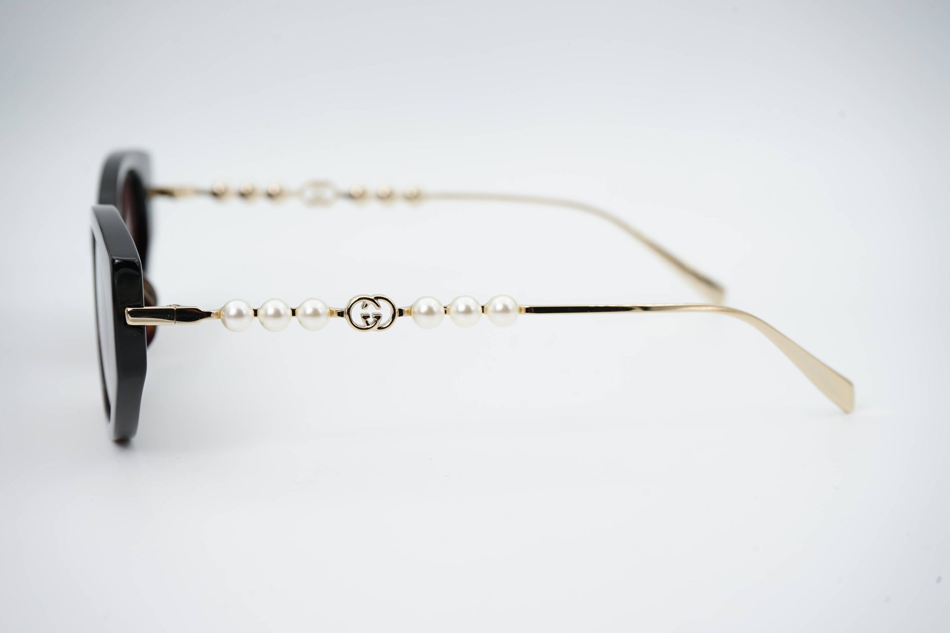 Os Gucci GG1970SA 003 são óculos de sol femininos que combinam elegância contemporânea com um toque de sofisticação. Apresentam uma armação estilo cat-eye em acetato havana escuro brilhante adornado por pérolas nas hastes, complementada por lentes castanhas sólidas em bio-nylon, oferecendo proteção UV essencial. Este modelo é ideal para mulheres que procuram um acessório de luxo que realce a sua personalidade e estilo único.