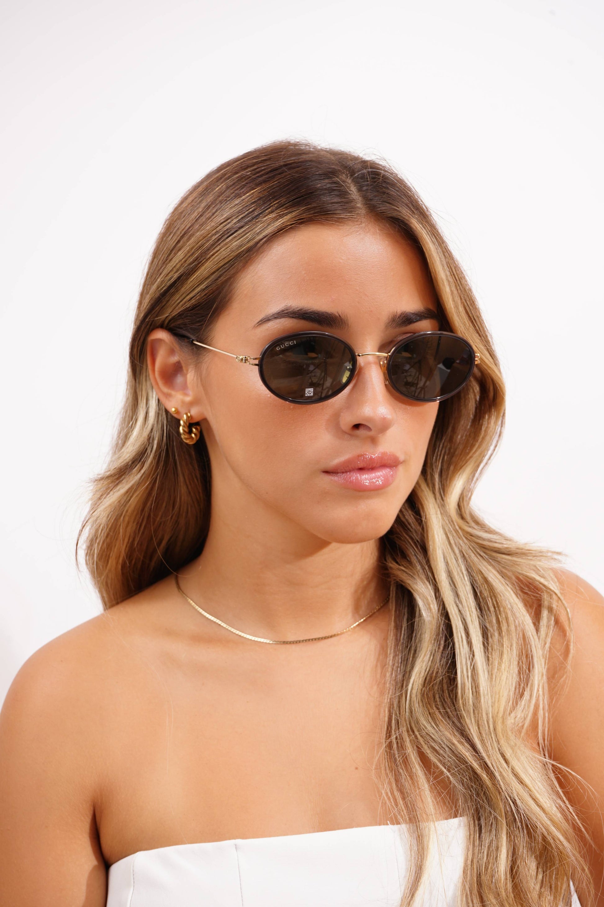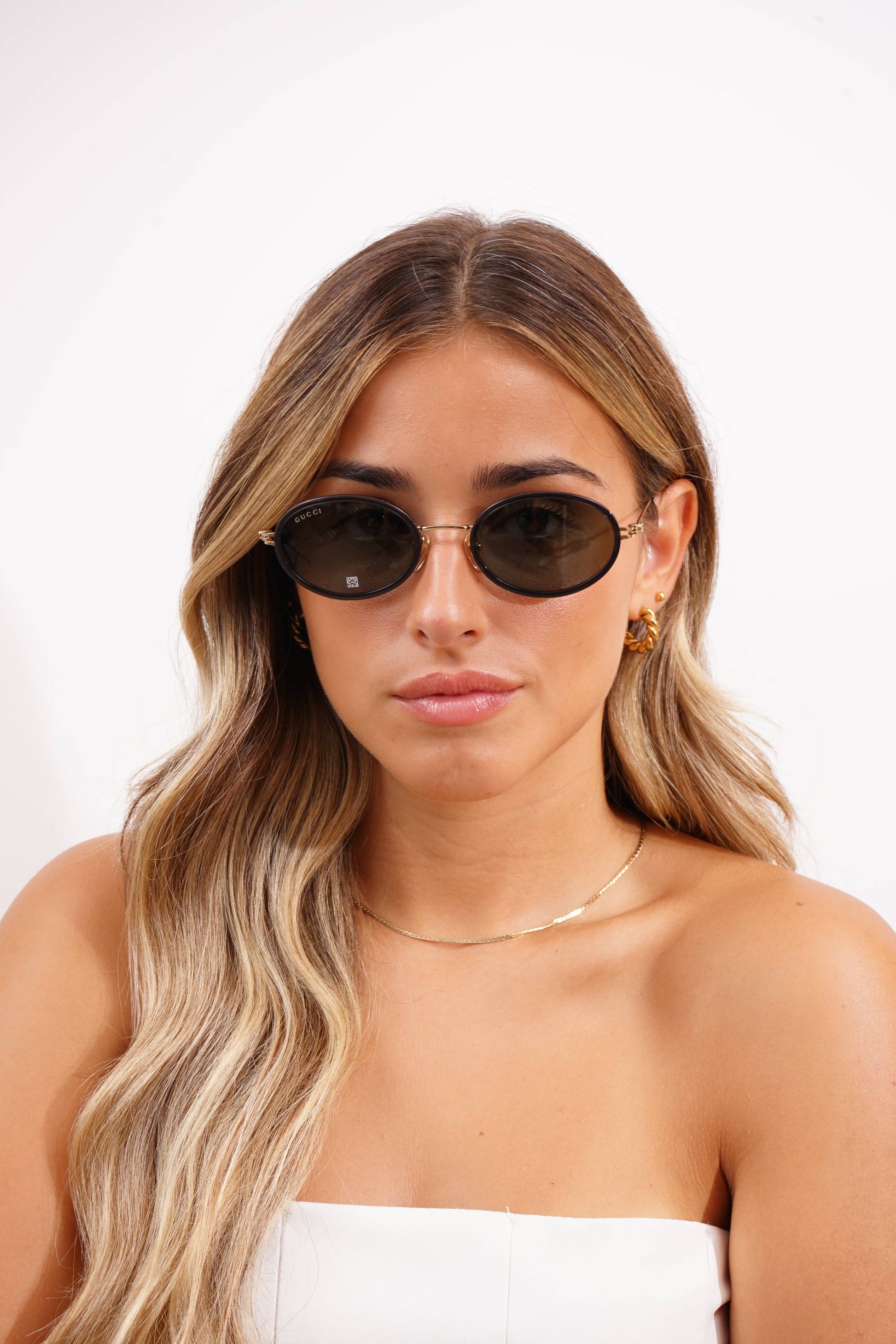Os óculos de sol Gucci GG1980S 001 são um modelo sofisticado de inspiração retro com um toque contemporâneo. A armação oval em preto e dourado proporciona um acabamento elegante e versátil, enquanto as lentes cinzentas de bio-nylon oferecem conforto visual e proteção adequada contra os raios solares.